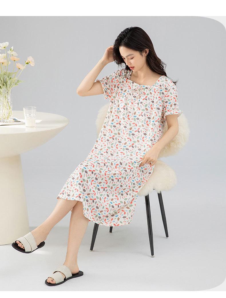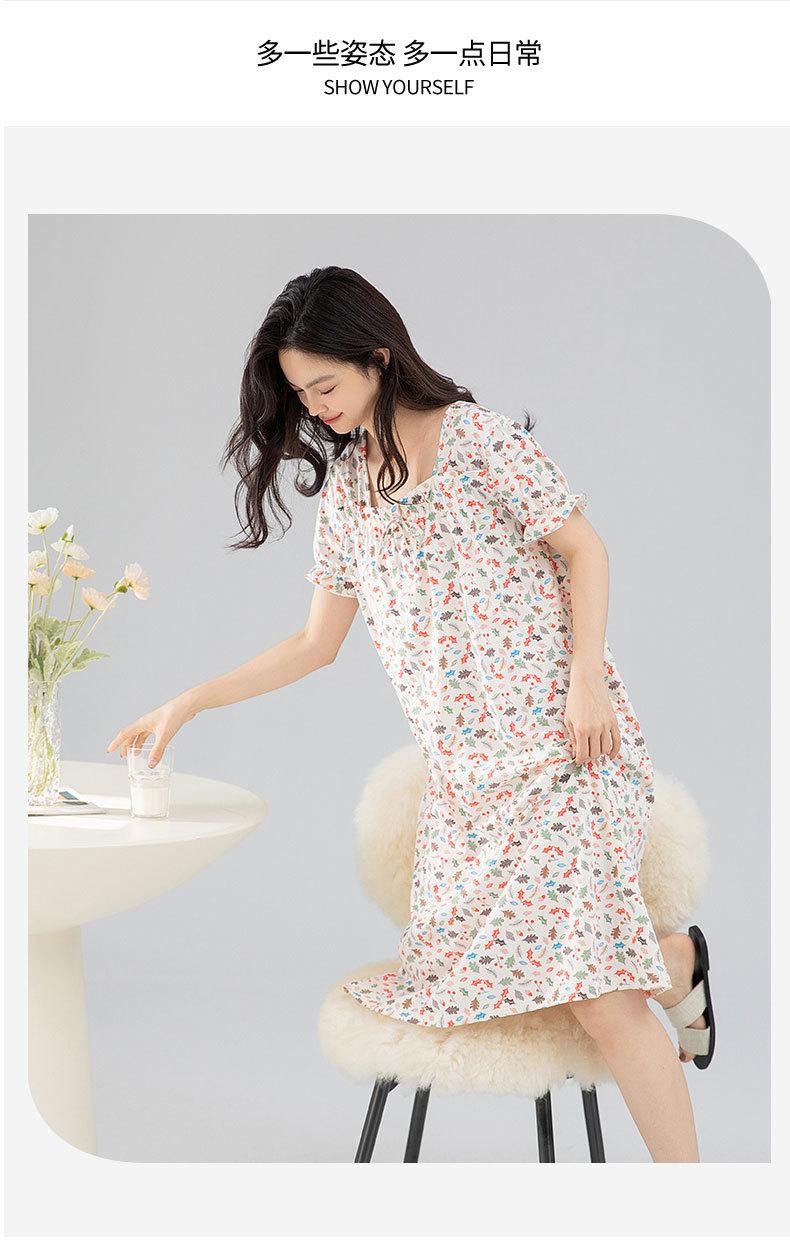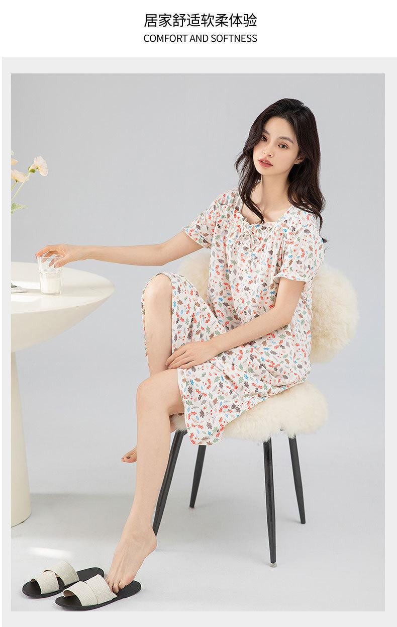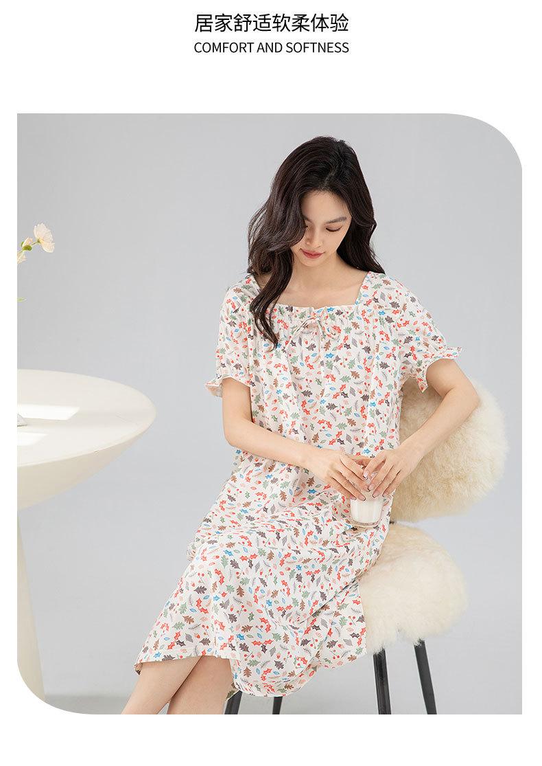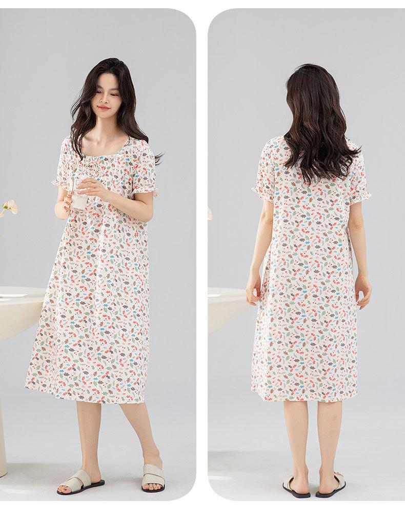 Compra Camisón de verano de manga corta para niña, de algodón puro, con dibujos animados, para el hogar, pijama de algodón fresco, camisón fino de longitud media, 2025 al por mayor en Joom.pro