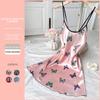 Satin two-piece set (nightgown + robe) - light green trumpet flower