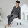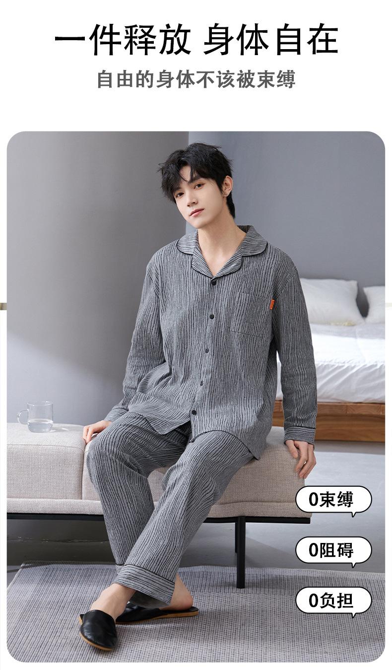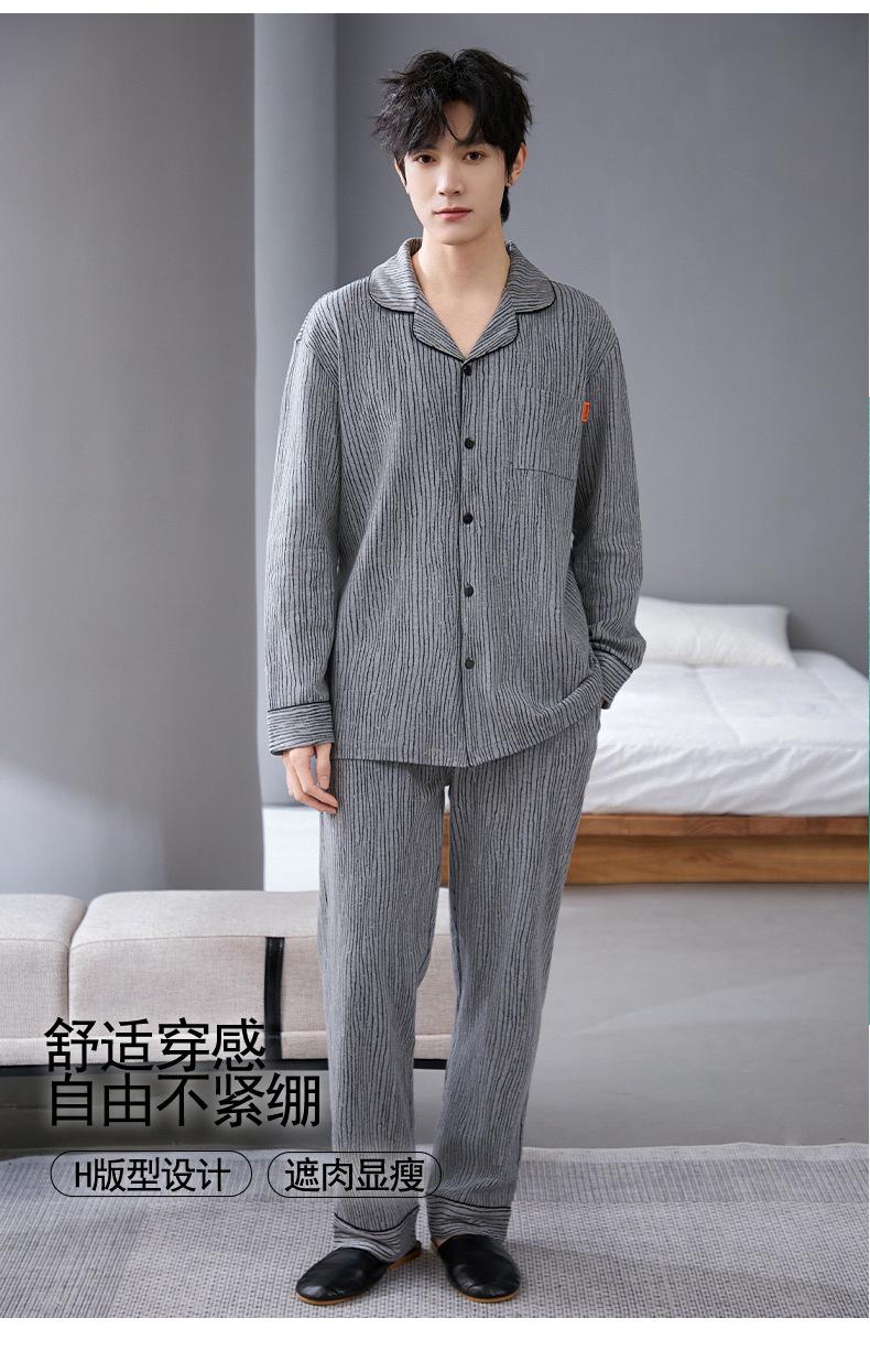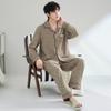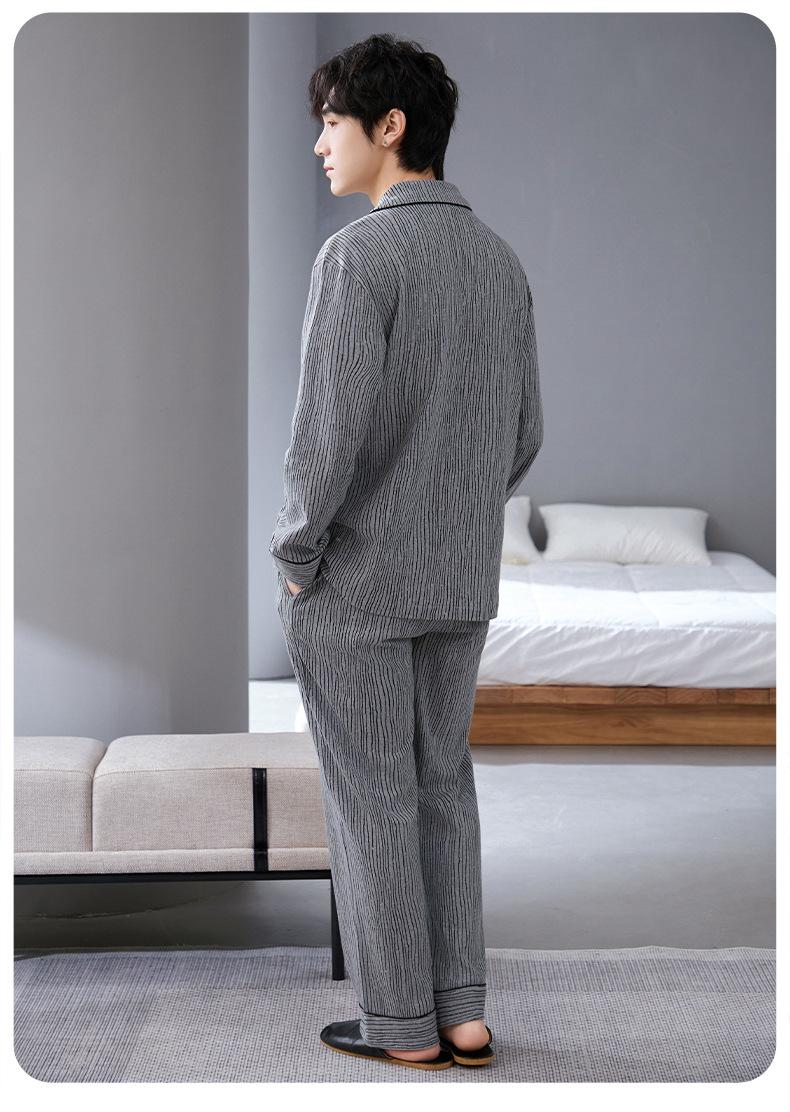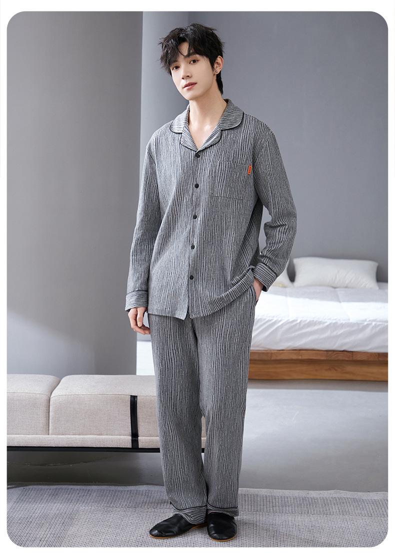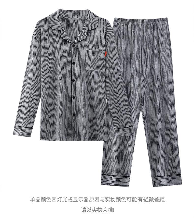 Pijamas para hombre, primavera y otoño, manga larga, algodón, para adolescentes, holgados, talla grande, cárdigan a rayas, solapa, traje de casa