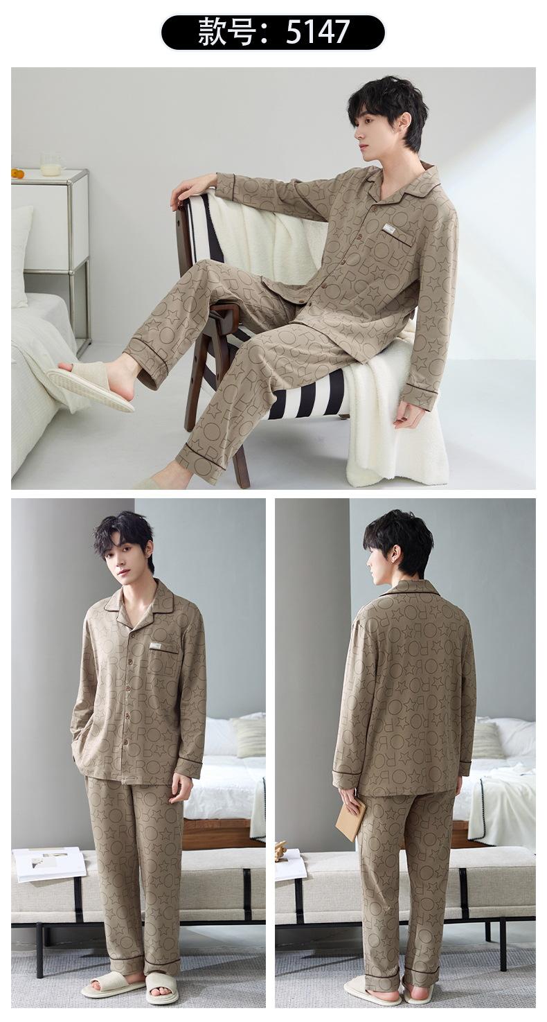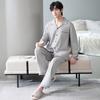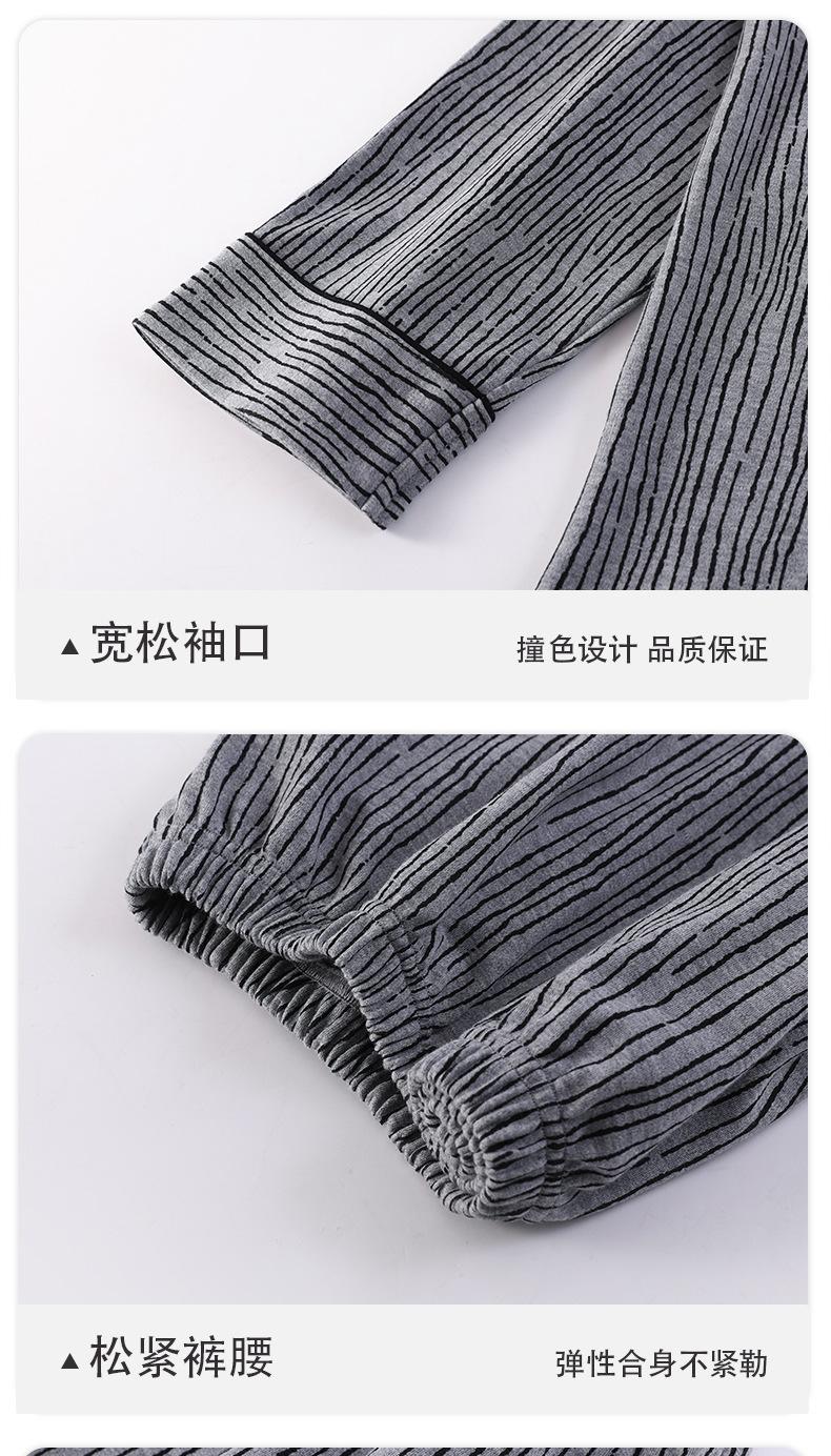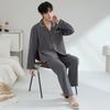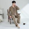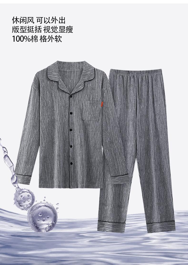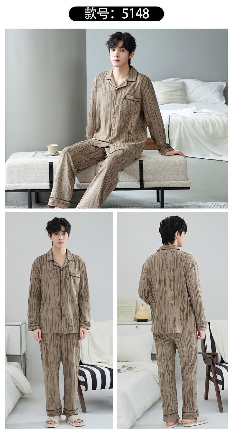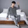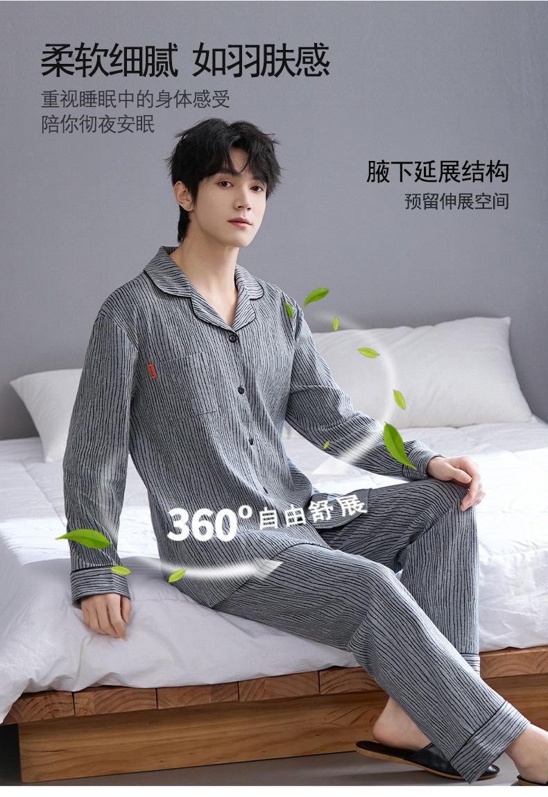 Pijamas para hombre, primavera y otoño, manga larga, algodón, para adolescentes, holgados, talla grande, cárdigan a rayas, solapa, traje de casa