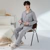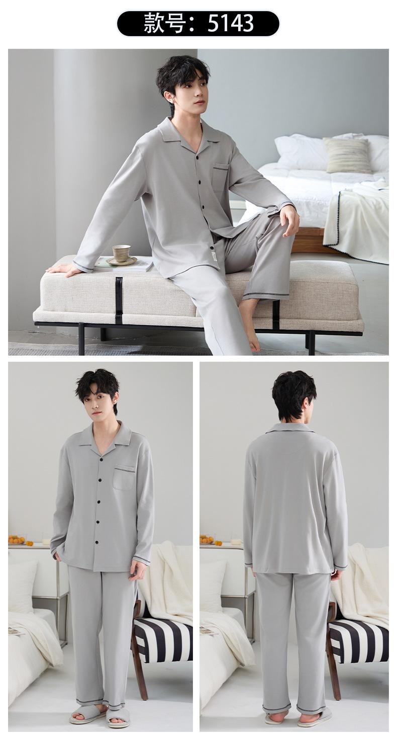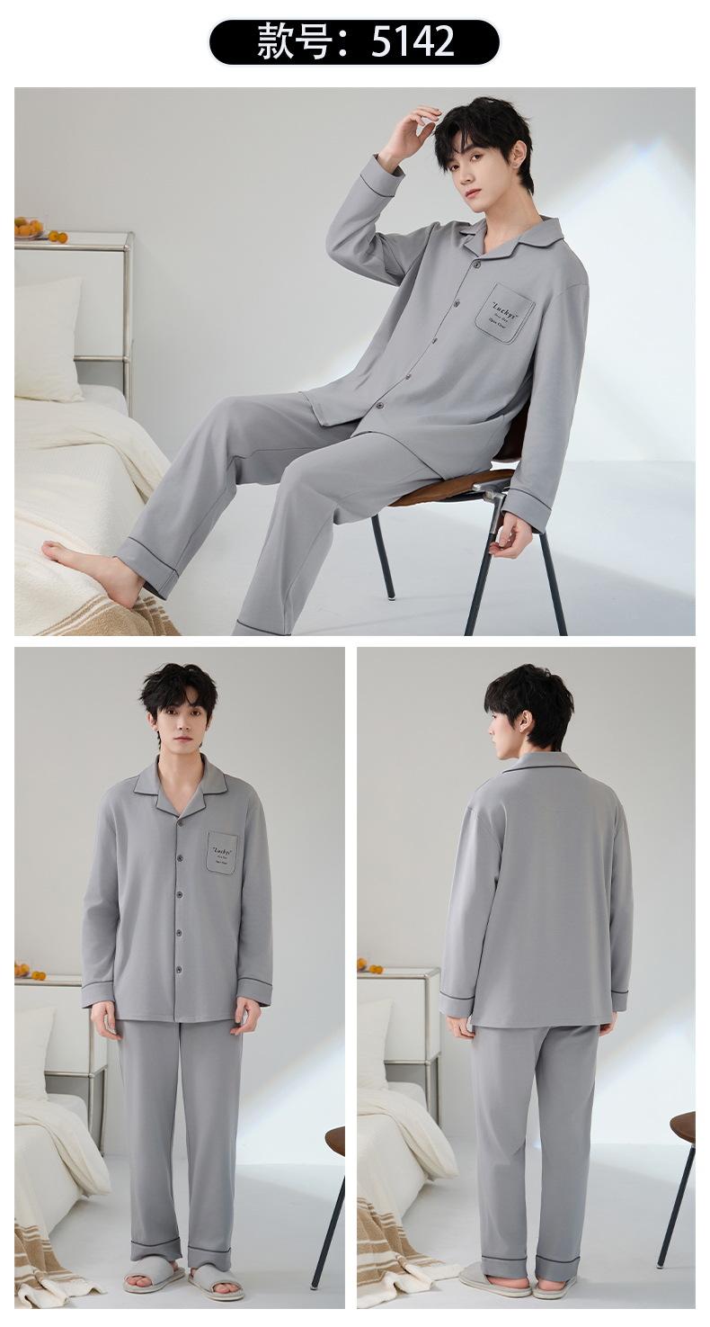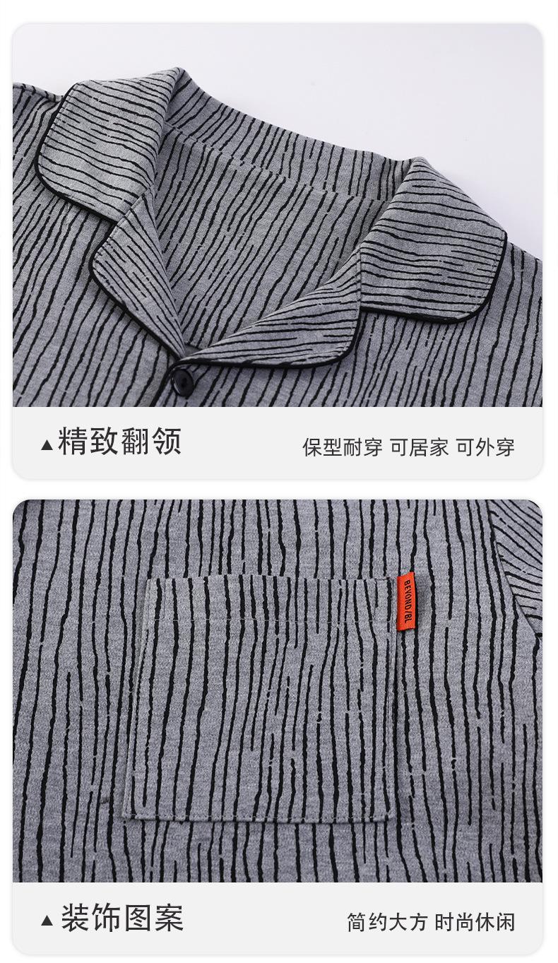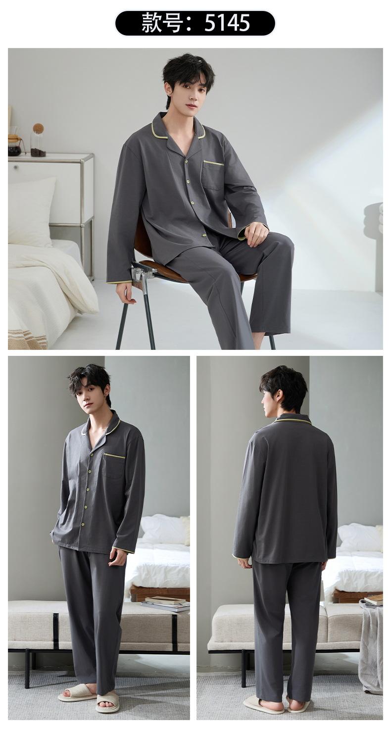 Pijamas para hombre, primavera y otoño, manga larga, algodón, para adolescentes, holgados, talla grande, cárdigan a rayas, solapa, traje de casa