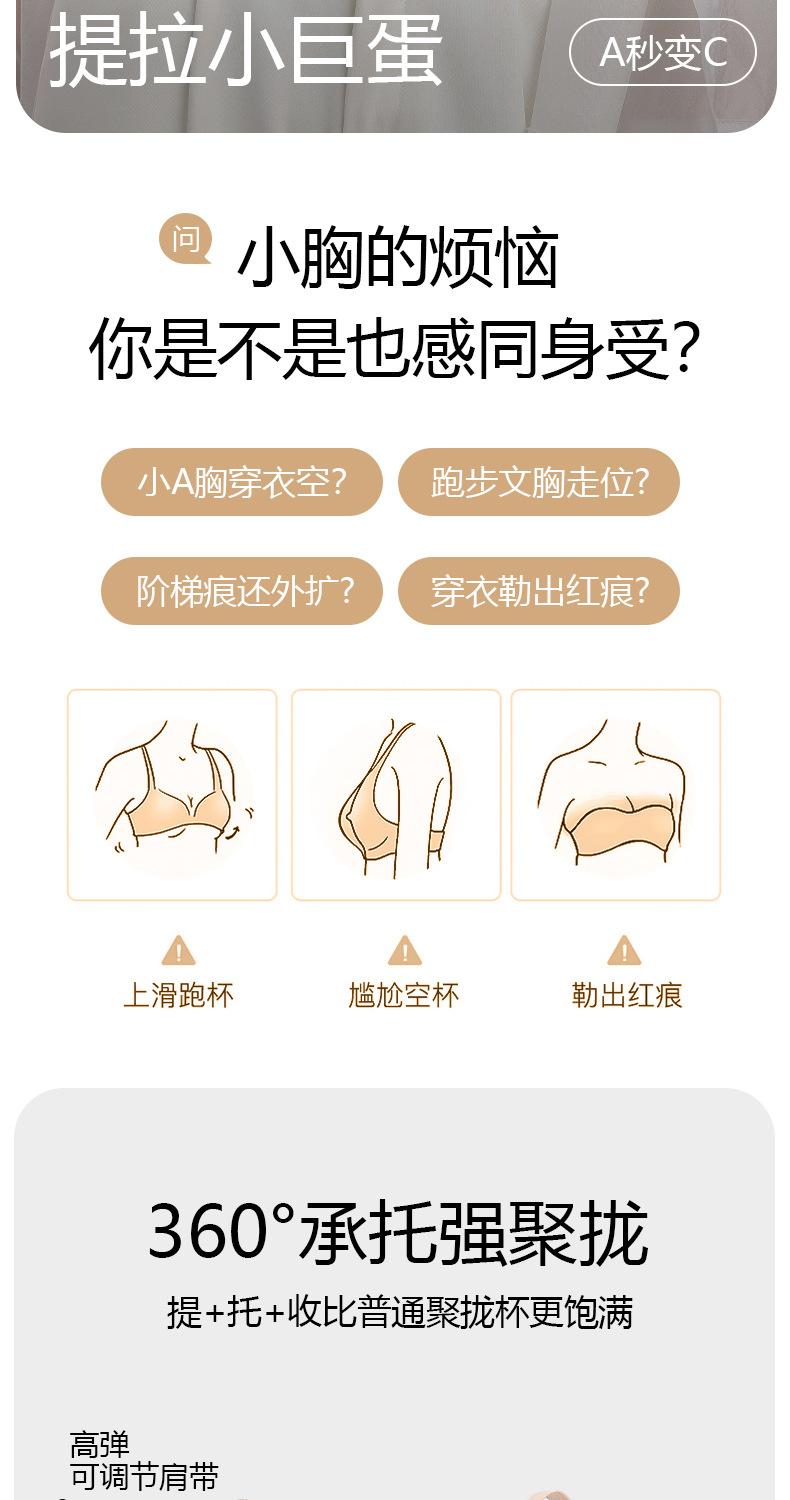 Gather, Traceless, Breathable, Push up, Beautiful back, Comfortable, Side collection, Breast reinforcement