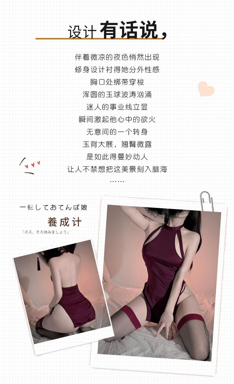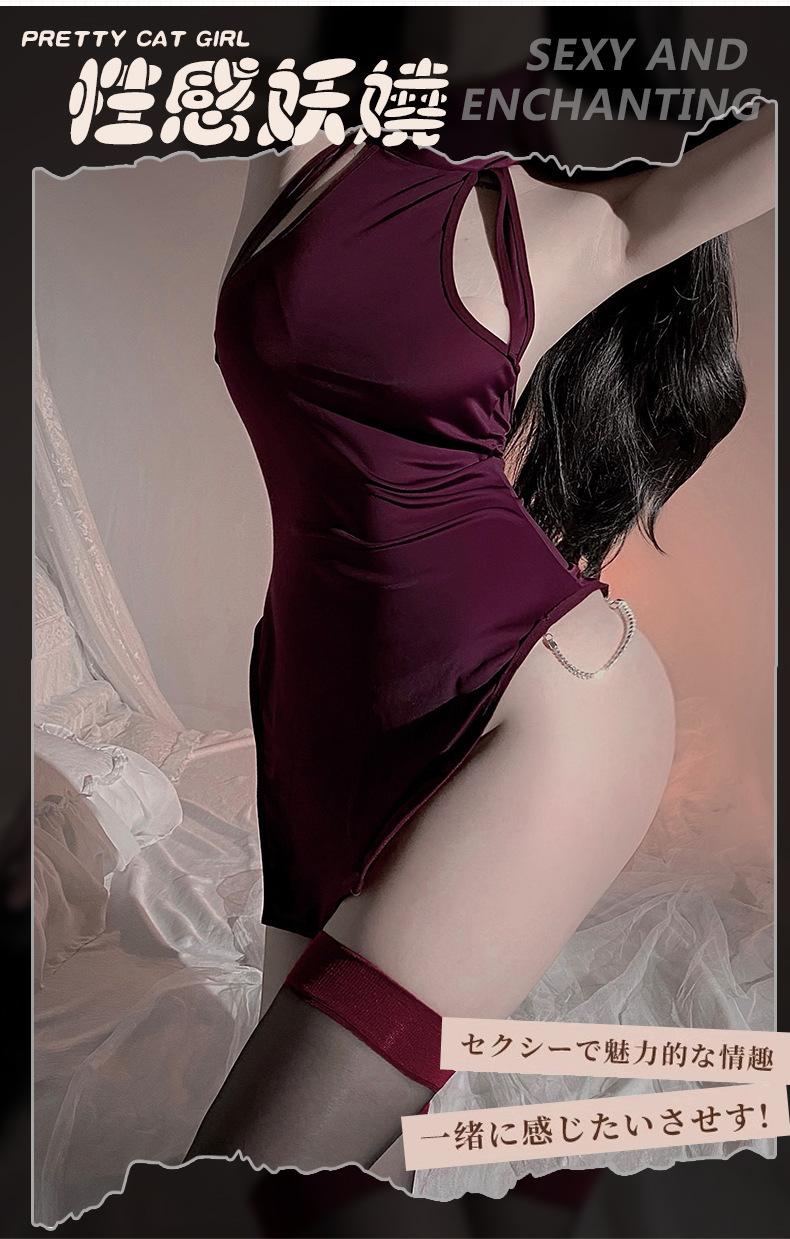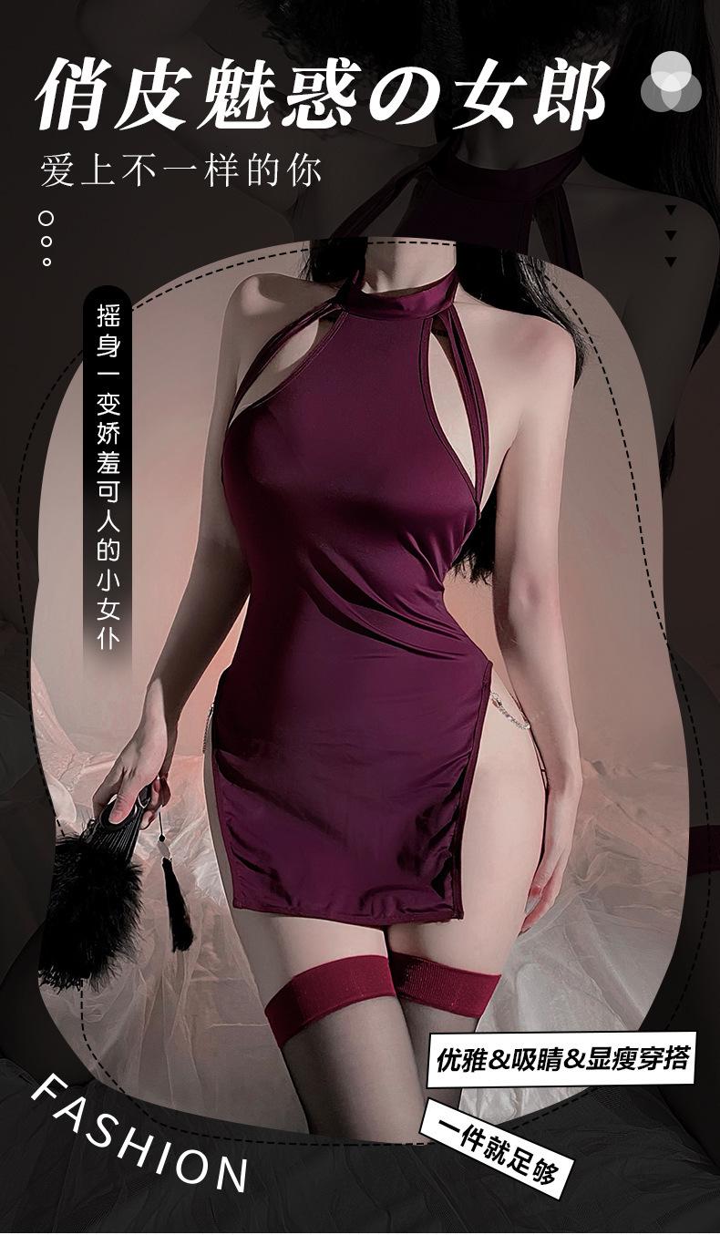 Ropa Interior Sexy Sexy Púrpura Retro Uniforme Cheongsam Deseo Puro Estilo Hermana Real Calado Ajustado Falda con Cadera Traje