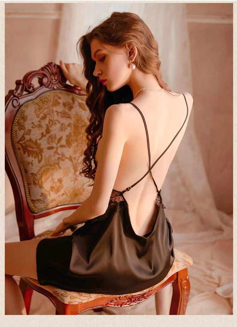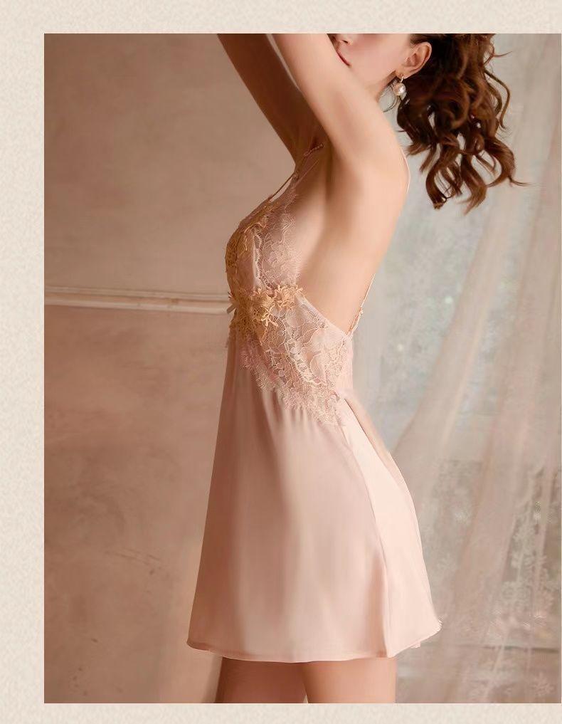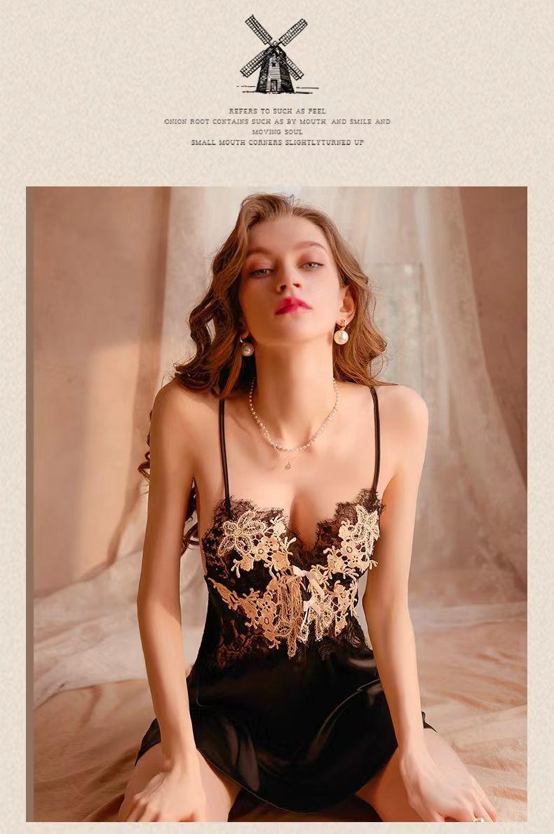 Pijama sexy para mujer, camisón con tirantes y almohadilla para el pecho, encaje, Pure Desire, verano 2025, novedad, seda de hielo, falda fina para el hogar
