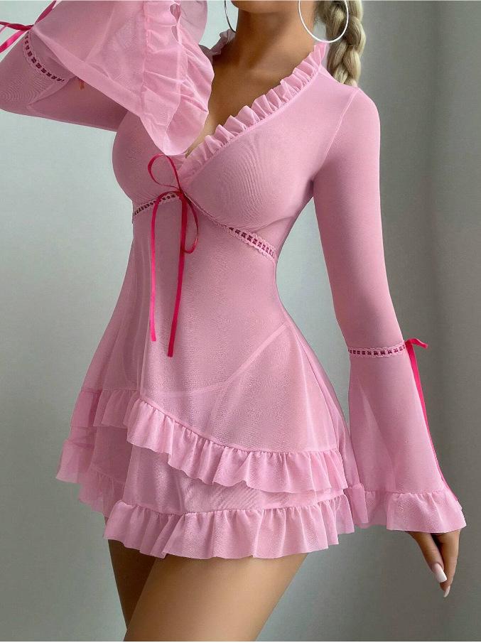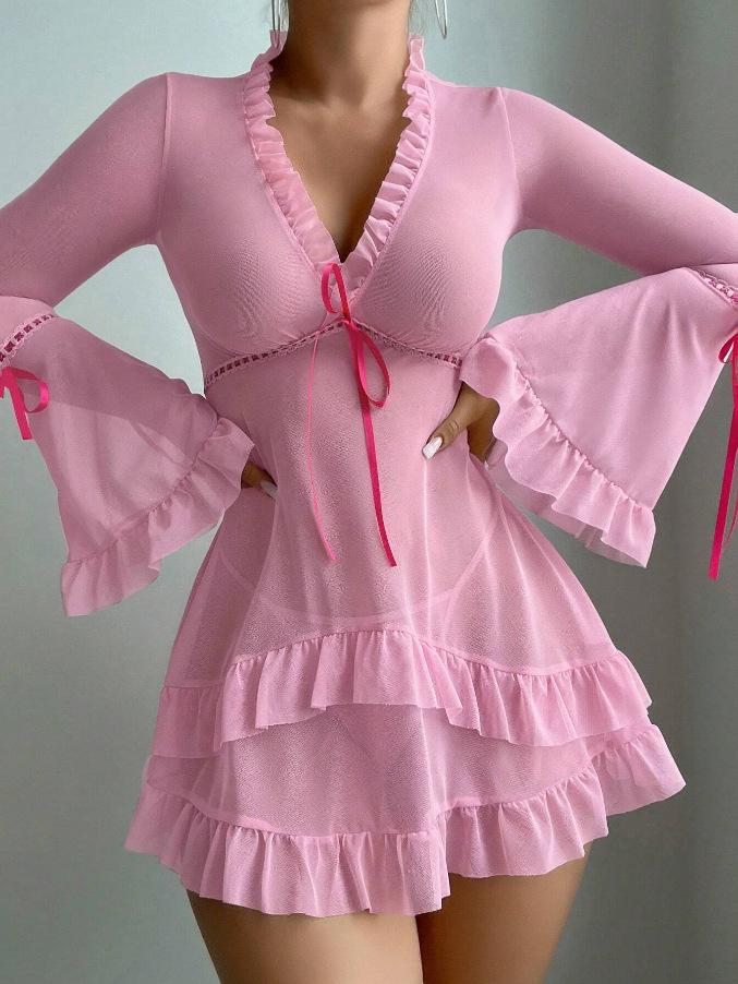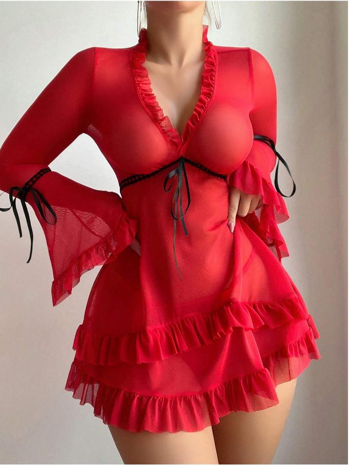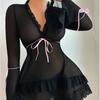 Ropa interior sexy de manga larga para chica, con perspectiva de malla sexy, de origen europeo y americano, al por mayor.