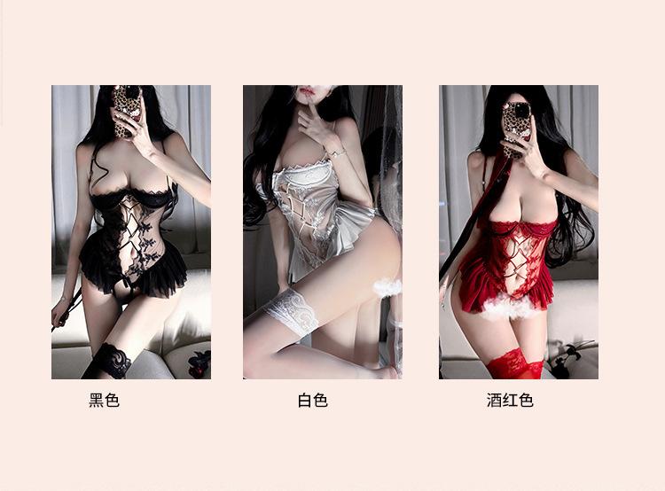 Ropa interior sexy Sexy Anillo de acero Costuras en el pecho Tirante de tul Traje de tirantes de una pieza sin entrepierna Puro Querer