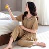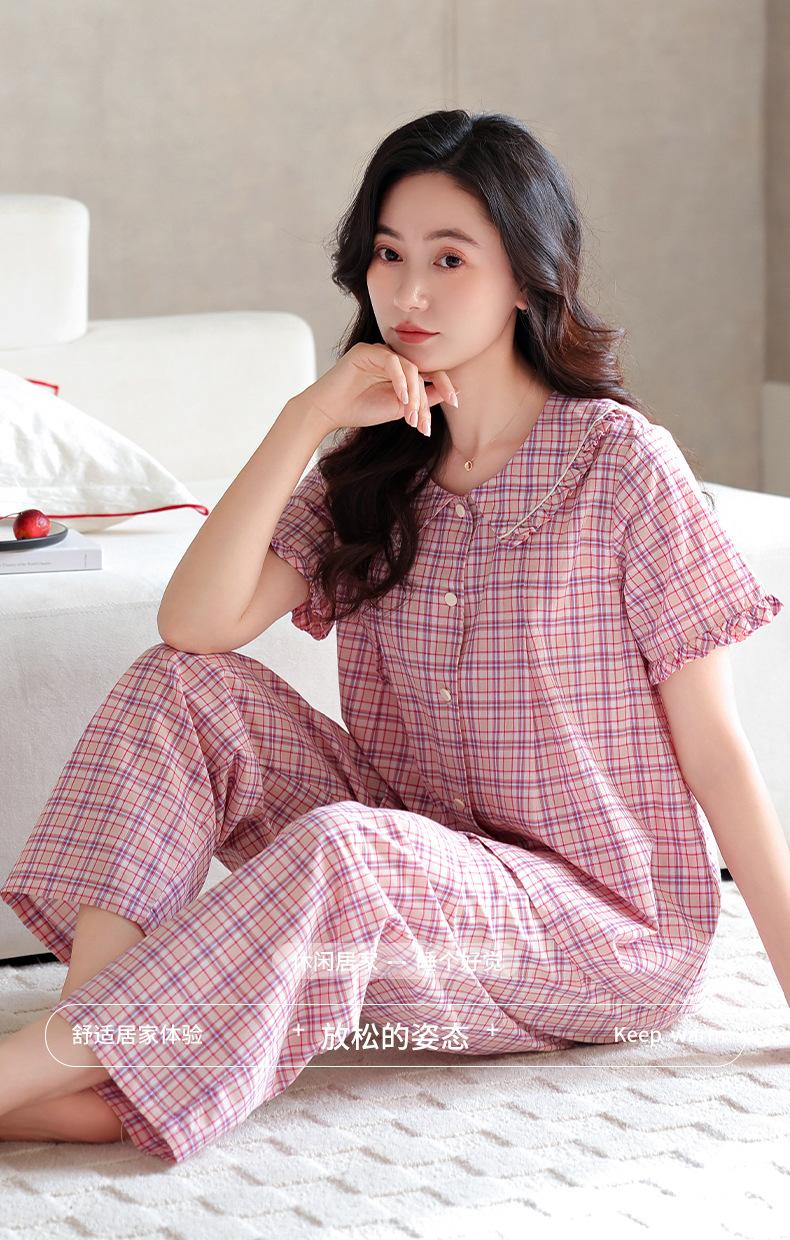 Pijamas de verano para mujer Explosiones 2025 Nuevo tejido de algodón de manga corta Traje exterior fino Talla grande Ropa para el hogar