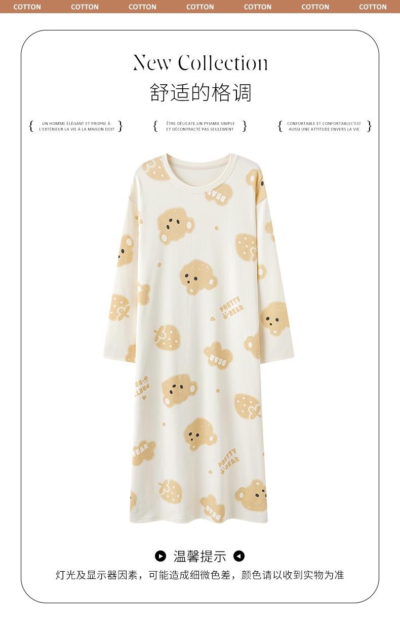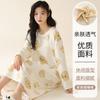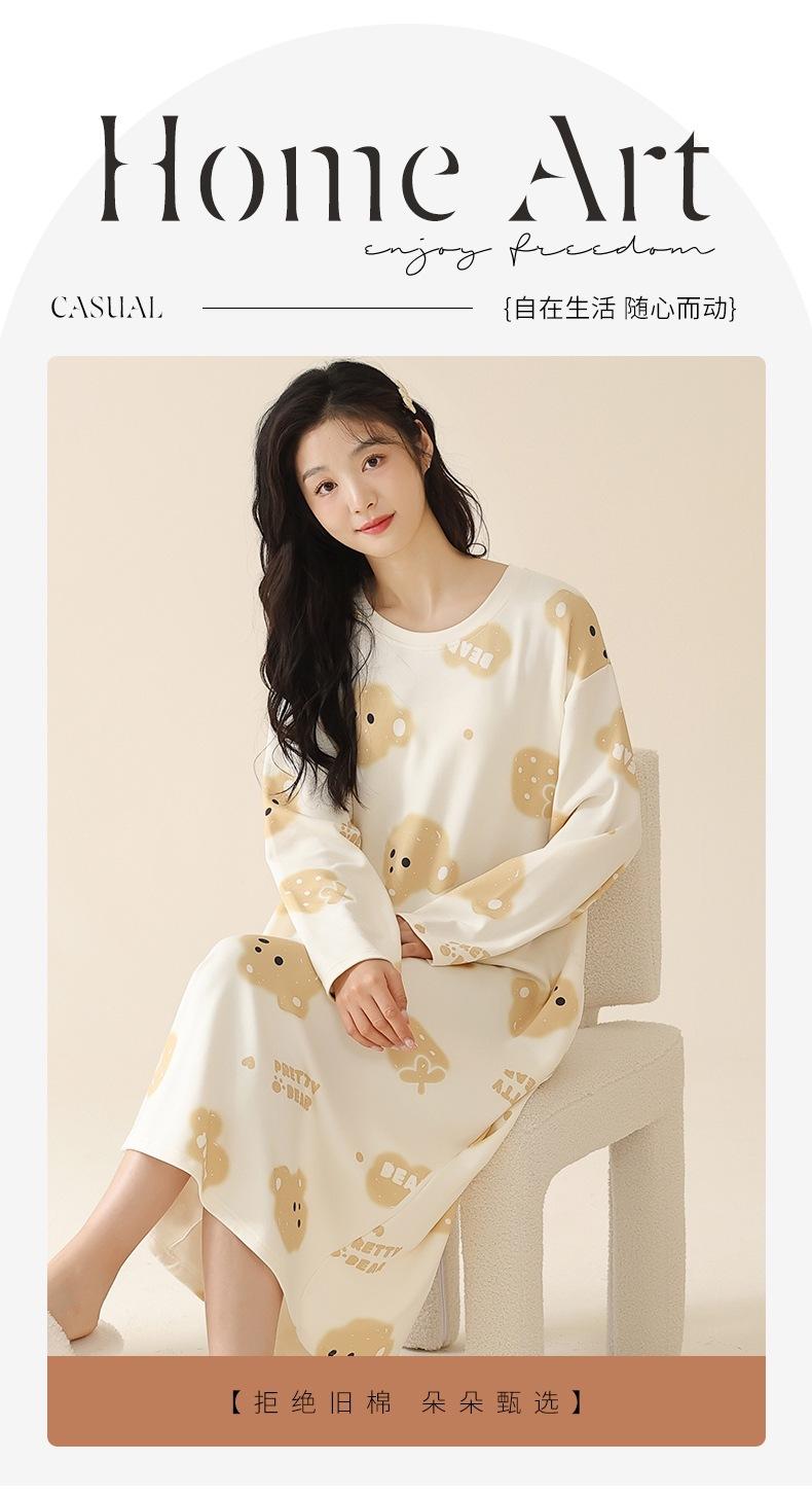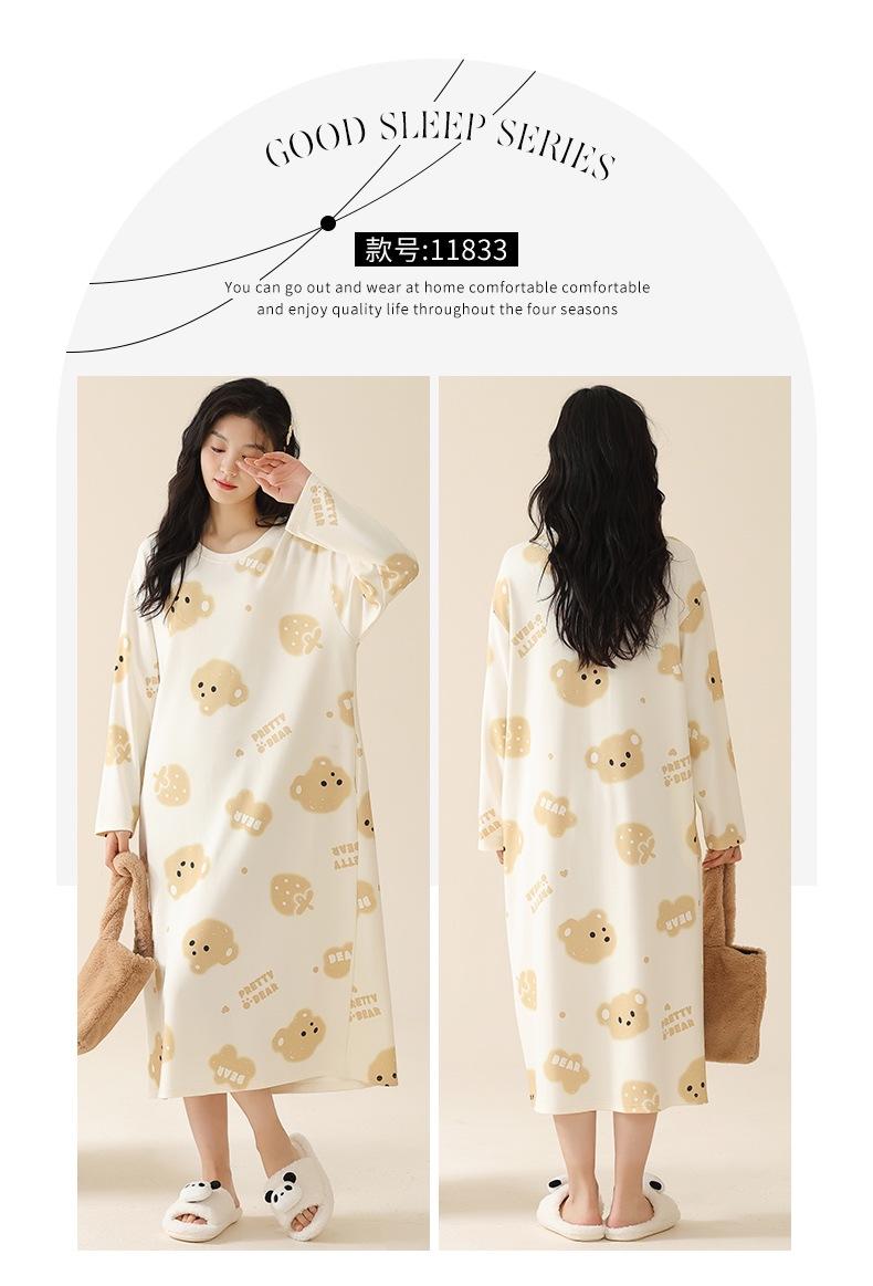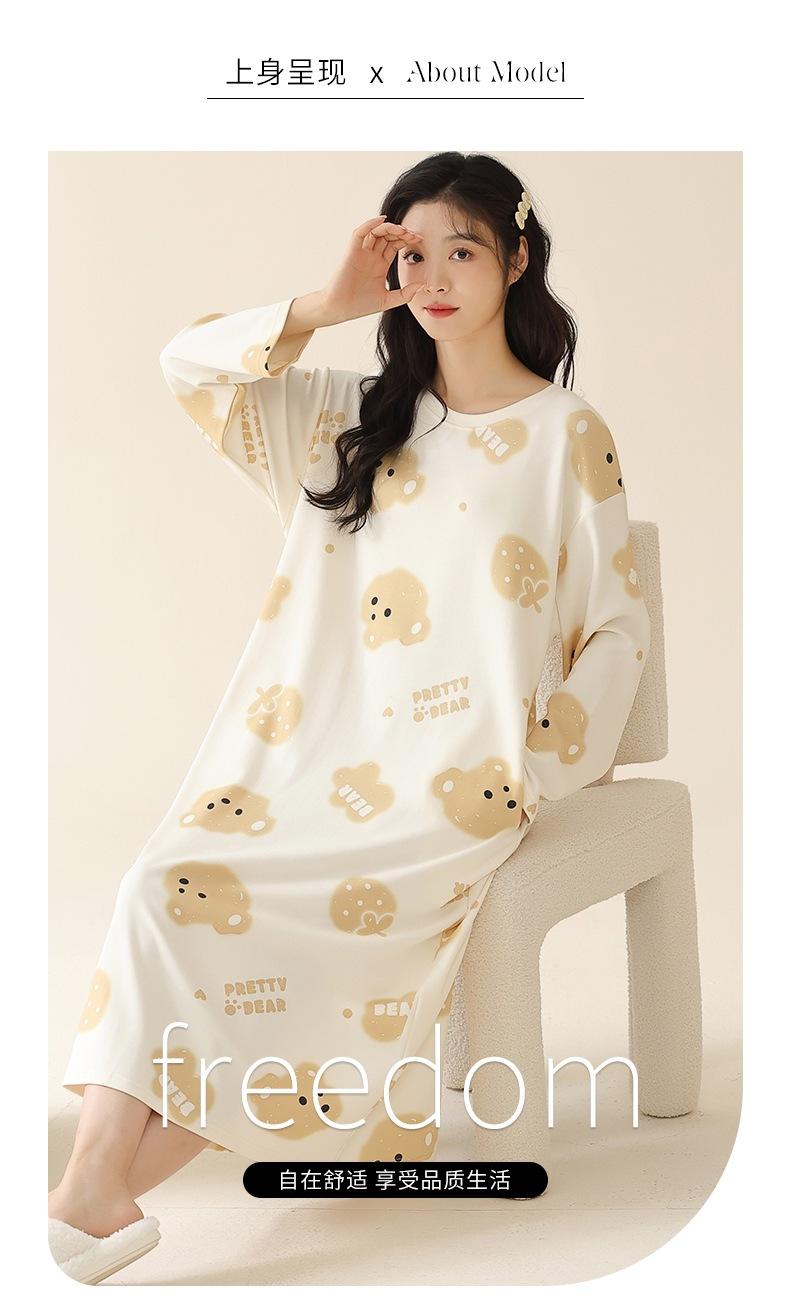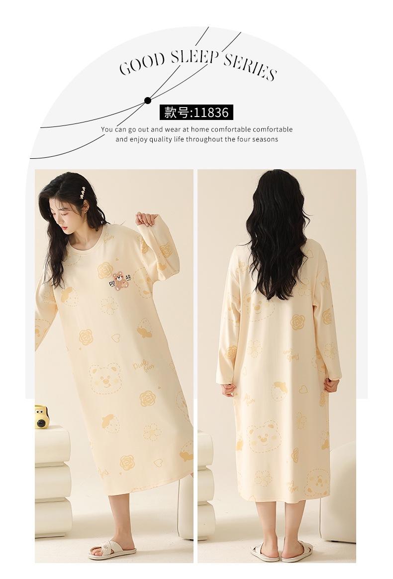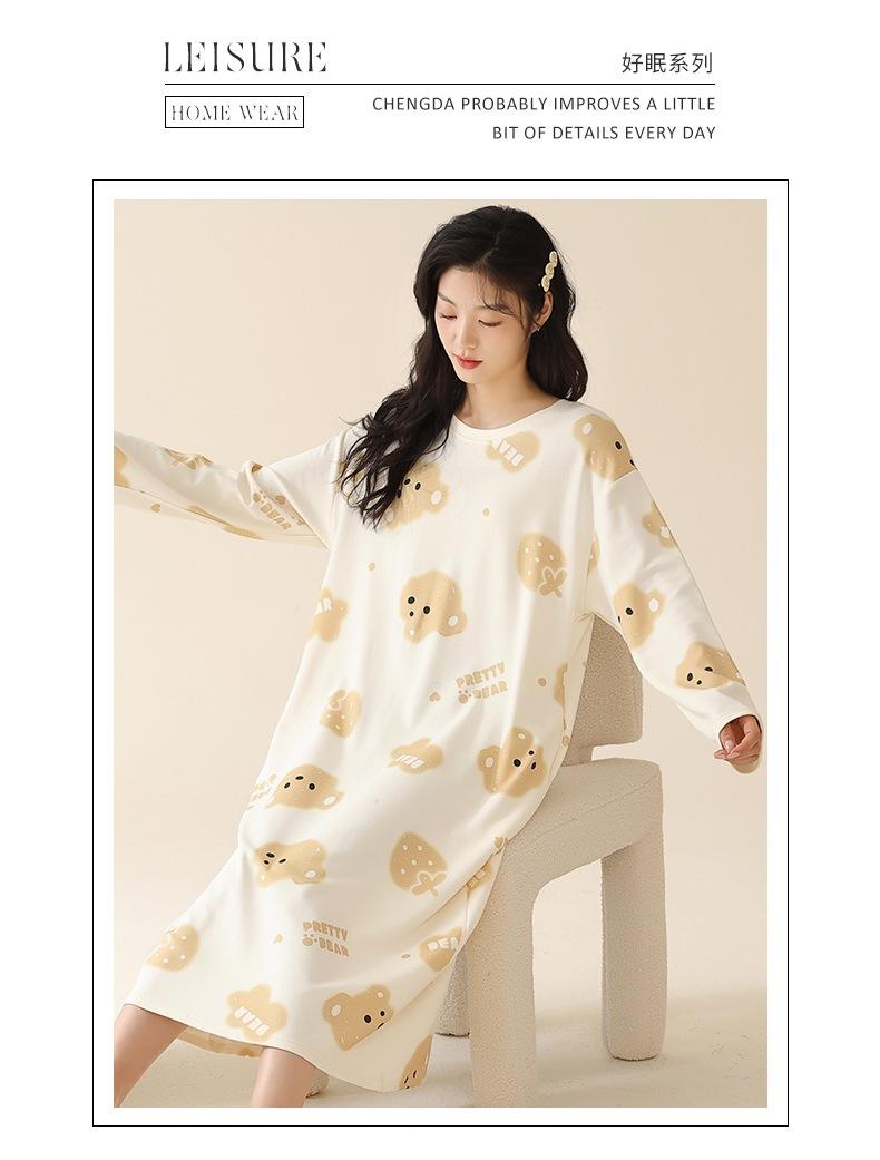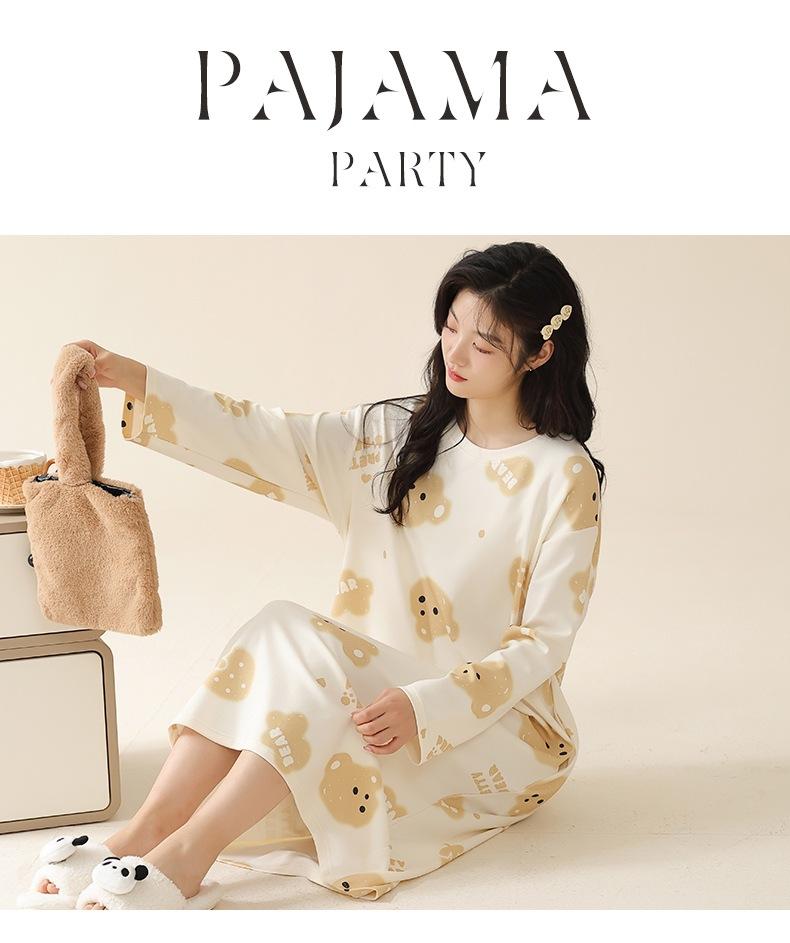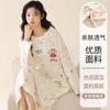 Pijama de manga larga de algodón de imitación para mujer, jersey de cuello redondo con dibujos animados, ropa de casa, camisón, primavera y otoño