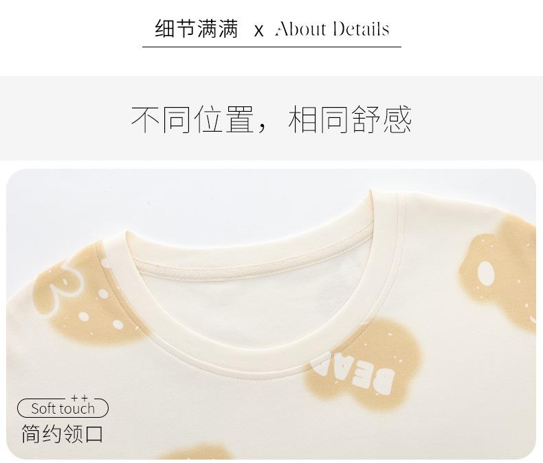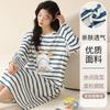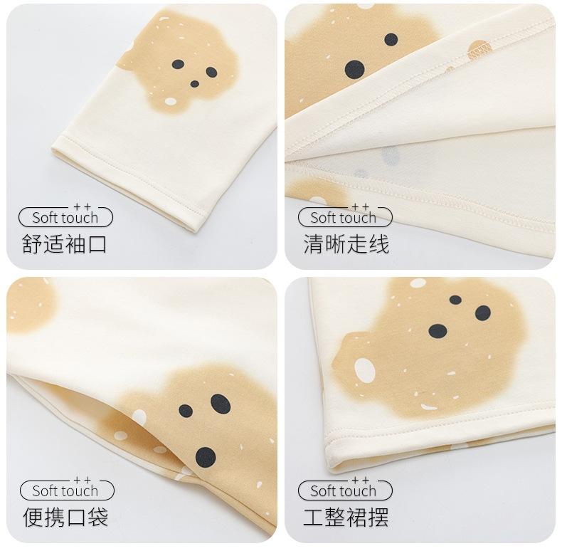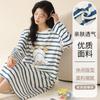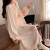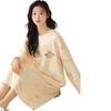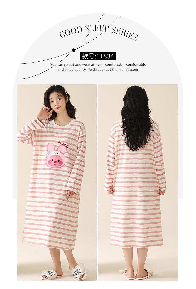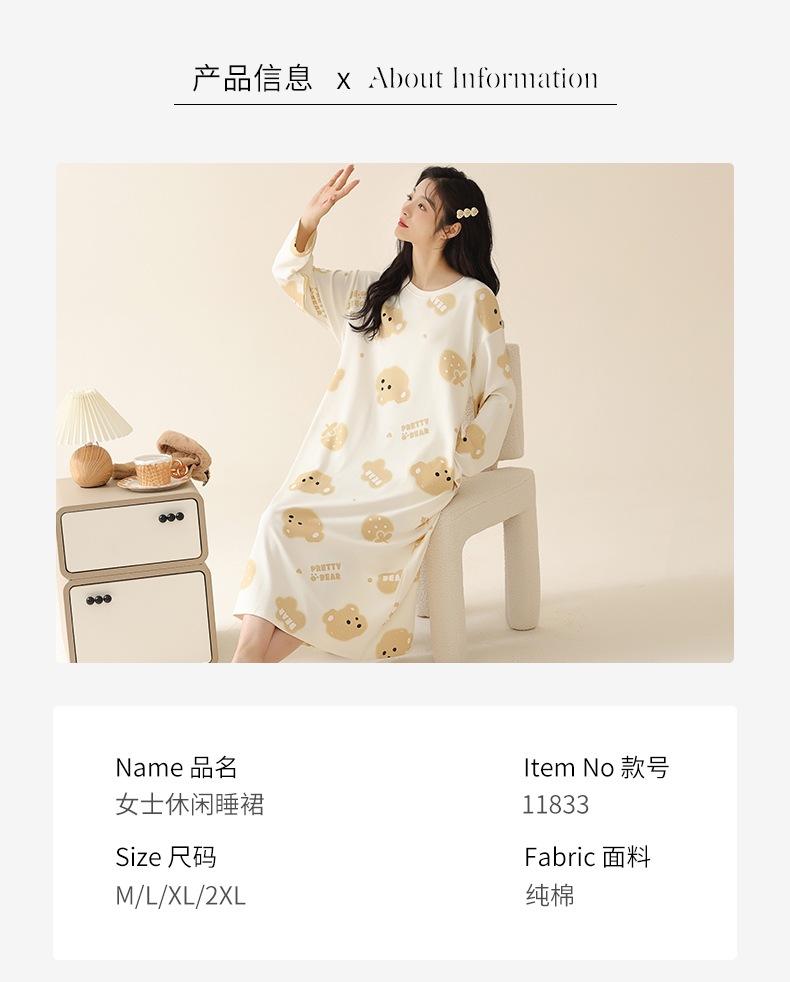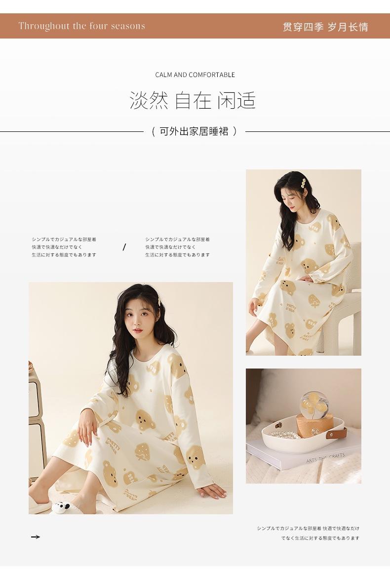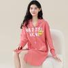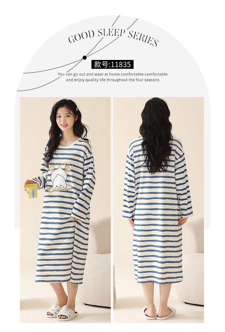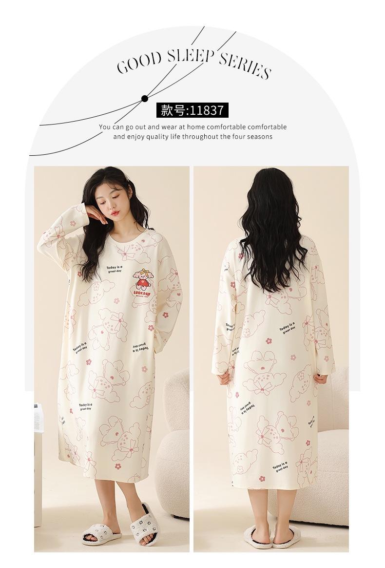 Pijama de manga larga de algodón de imitación para mujer, jersey de cuello redondo con dibujos animados, ropa de casa, camisón, primavera y otoño