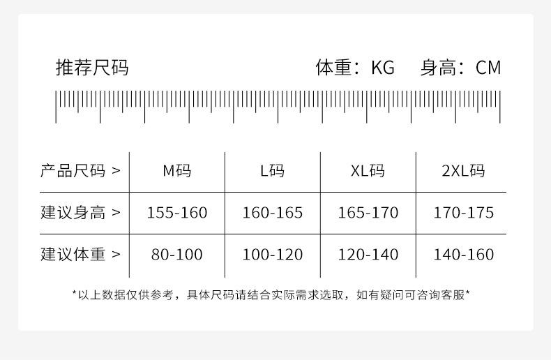 160(M), 165(L), 170(XL), 175(XXL)