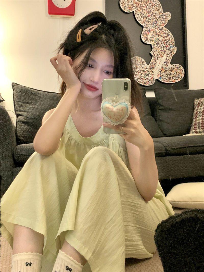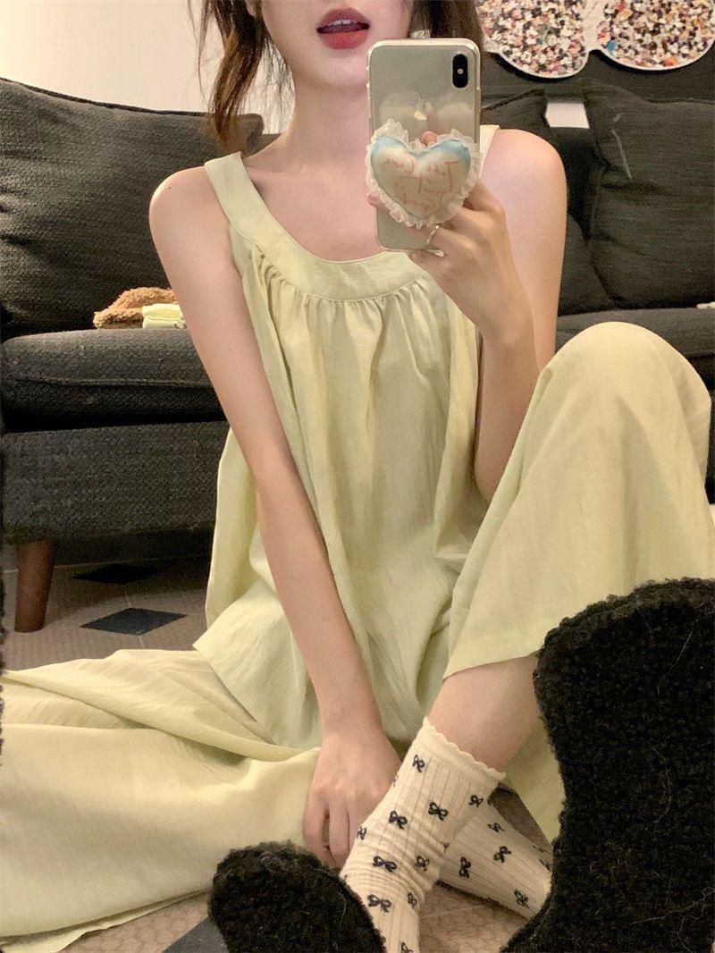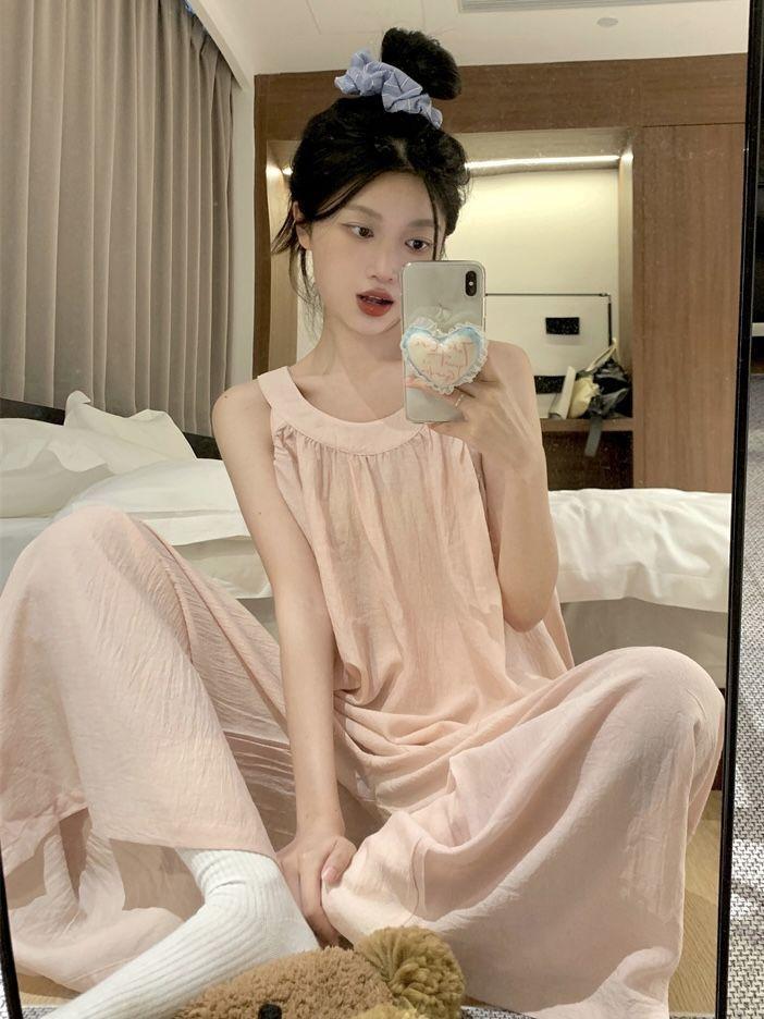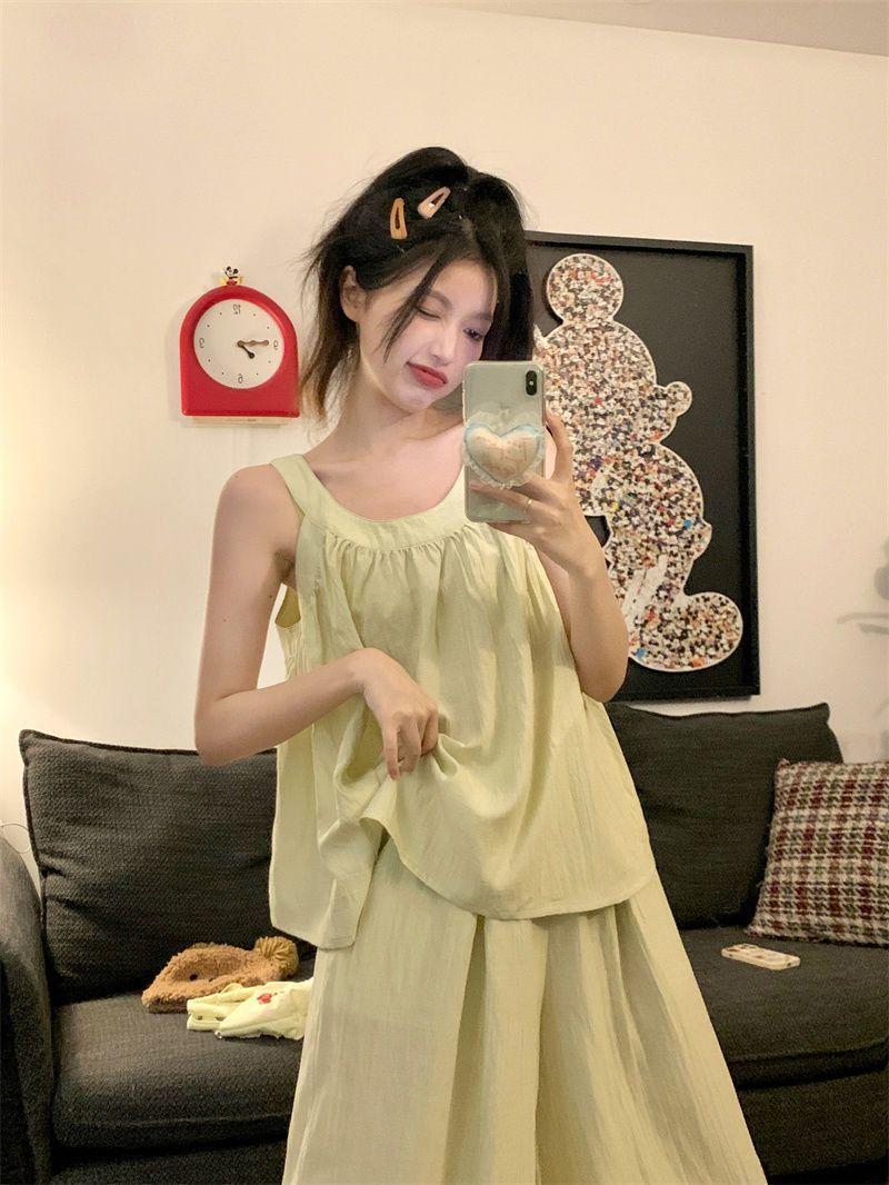 Pijama francés dulce con cuello colgante sin mangas para mujer, verano 2025, nuevo, holgado, para uso exterior, pantalones, ropa para el hogar, traje