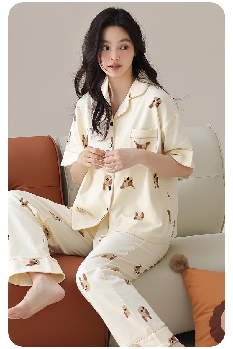 Pijamas de mujer de verano 2025, nuevos pantalones de algodón puro de manga corta, ropa exterior fina, estilo coreano, ropa de casa.