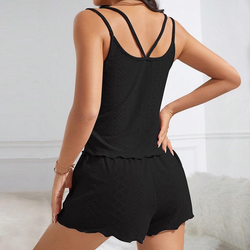 Pijama de dos piezas para mujer con tirantes y shorts, jacquard soluble en agua transpirable y cómodo, comercio exterior transfronterizo europeo y americano, ropa sexy para el hogar.