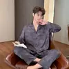 Pijamas de seda de hielo para hombre, primavera y otoño, finos, de manga larga, ropa informal para el hogar, traje fresco de seda de verano para hombre