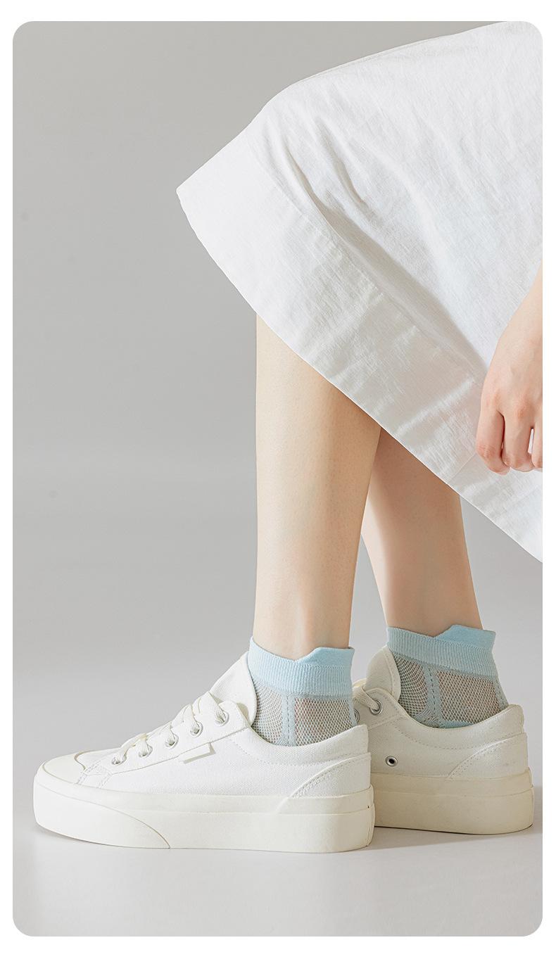 Calcetines de Malla Ultradelgados para Mujer Verano Calcetines Transpirables Elevación de Orejas y Antiolor Absorbentes de Sudor Calcetines de Algodón Verano Blancos Cortos
