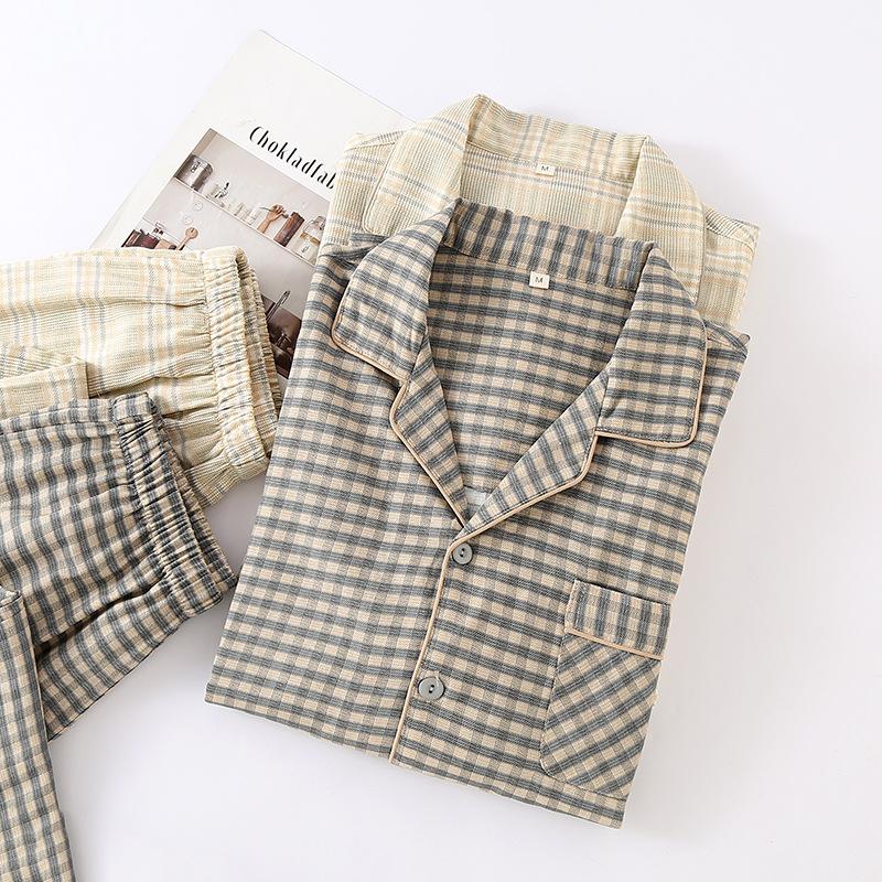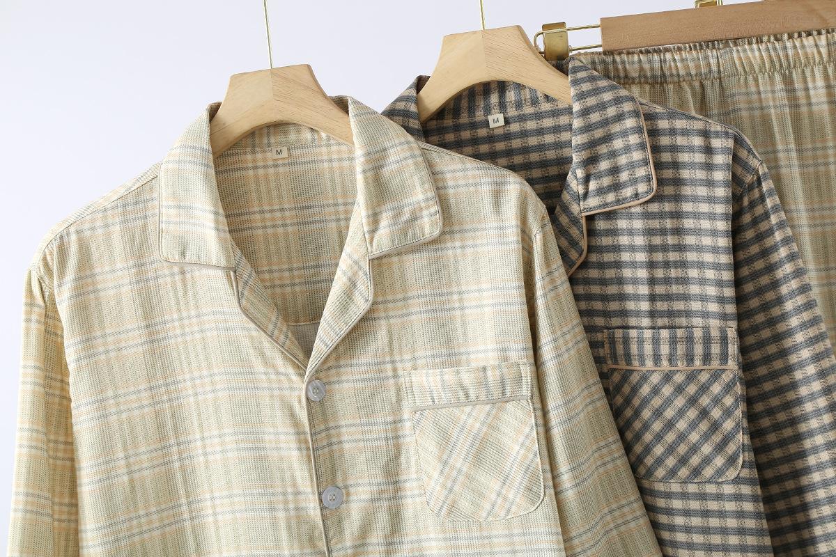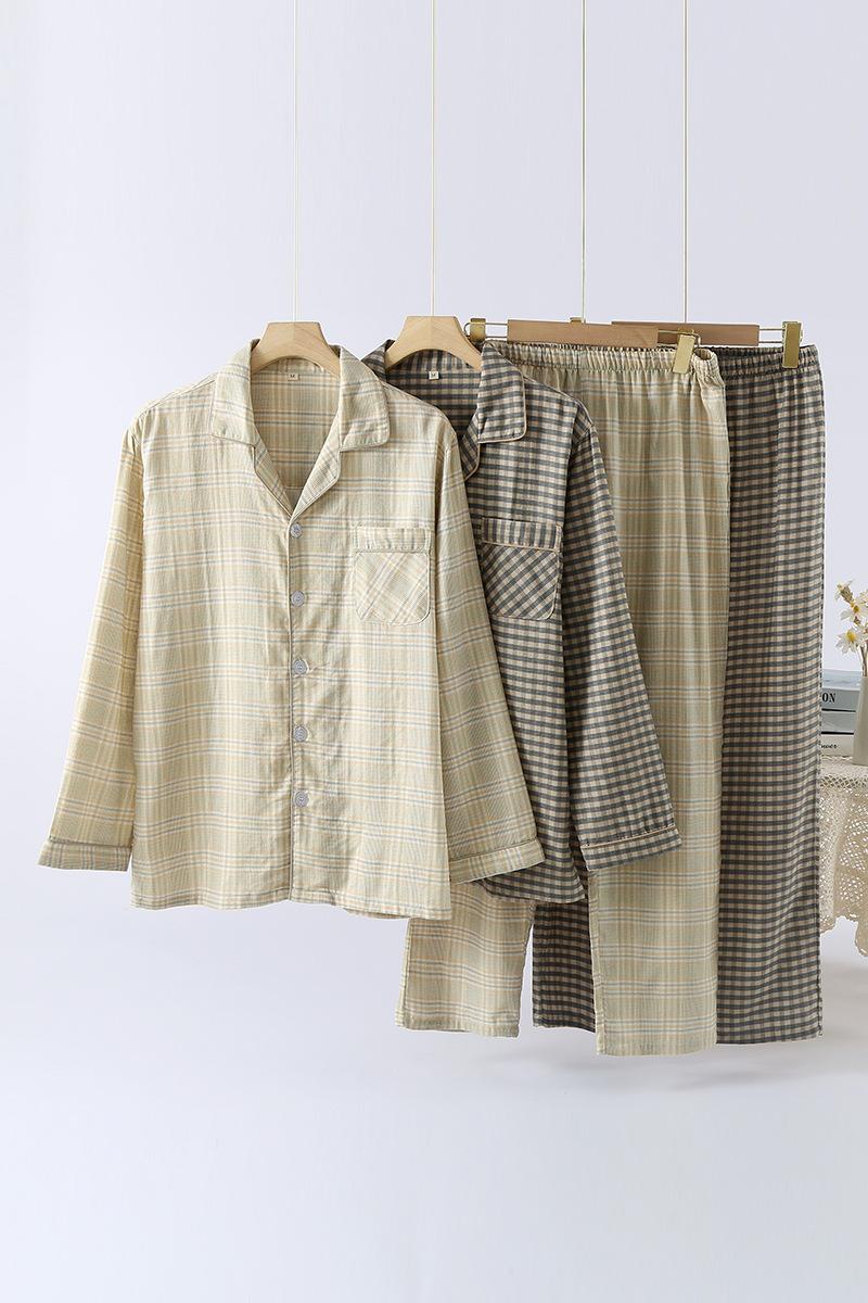 Compra Pijama para Hombre Teñido en Hilo Doble Capa Algodón Puro Sin Estampado Estilo Japonés Cuadros Ropa para el Hogar Pantalones de Manga Larga Primavera Verano Otoño Delgada Ropa para el Hogar al por mayor en Joom.pro