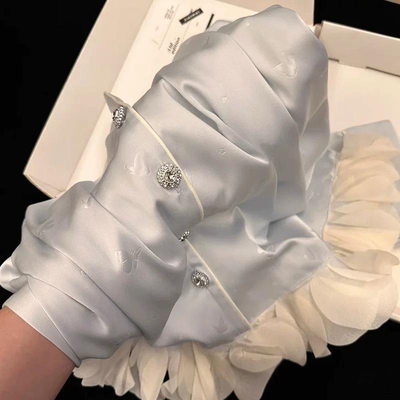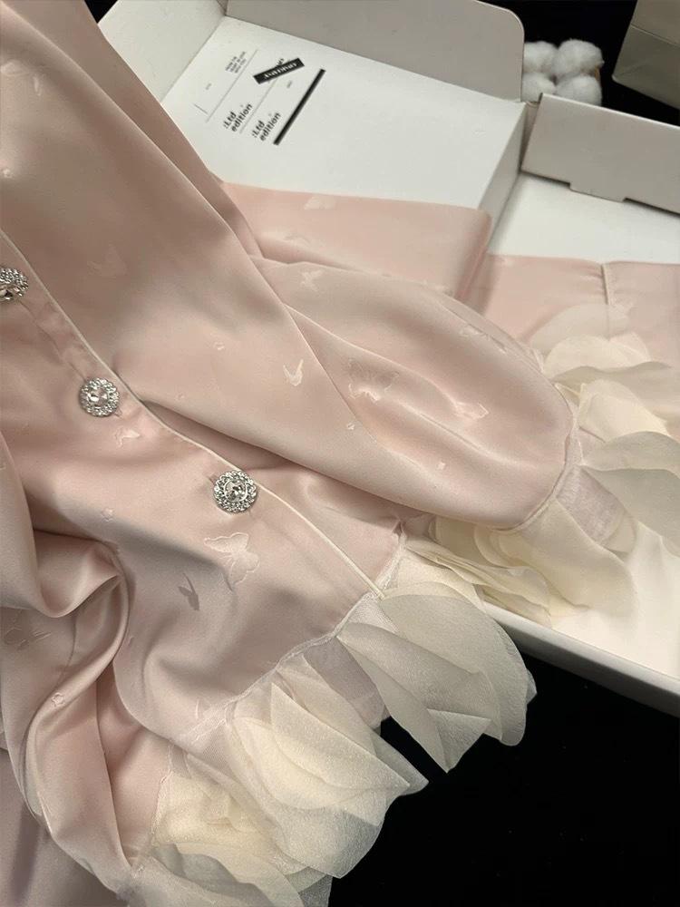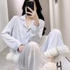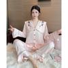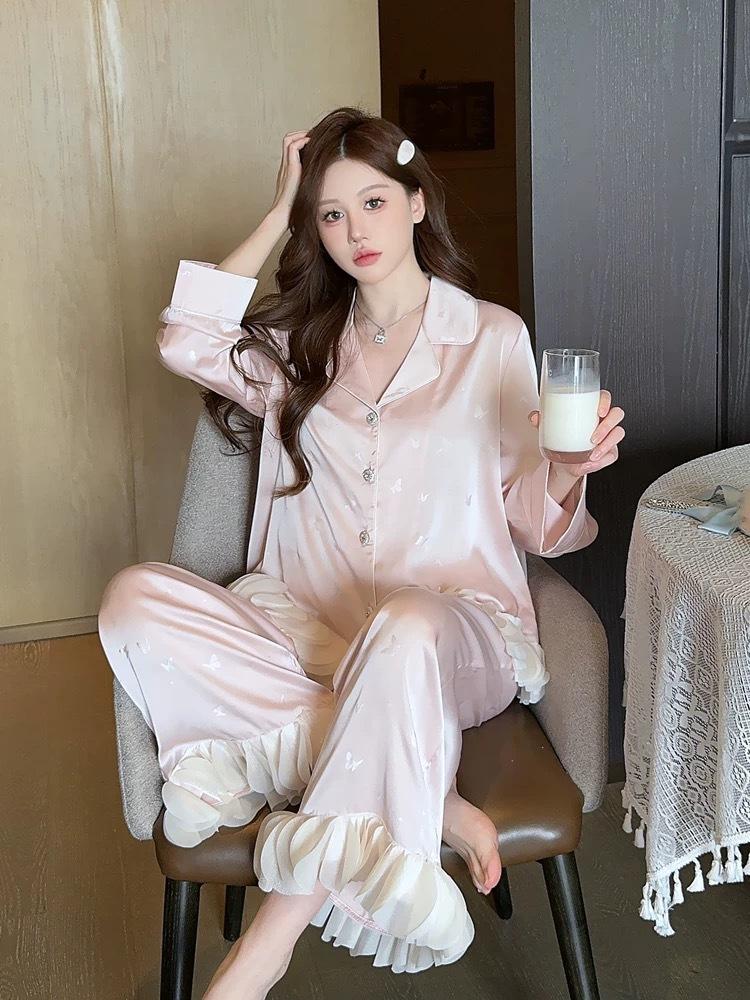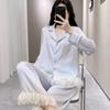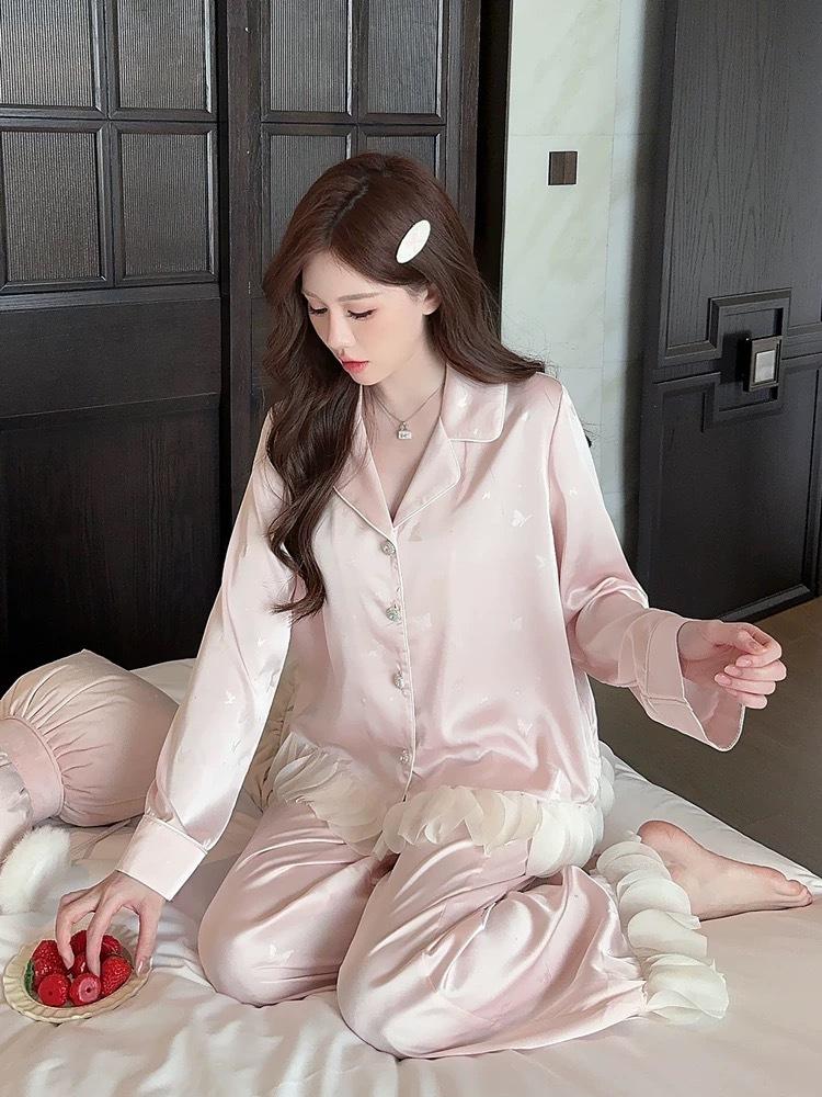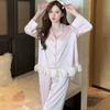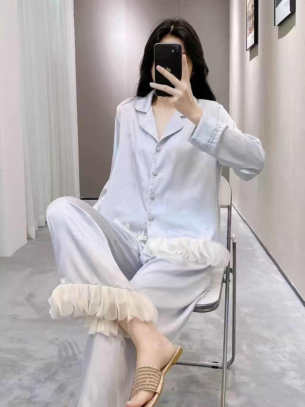 Pijama Francés Recién Llegado Primavera Seda de Hielo Estilo Princesa Dulce Manga Larga Pantalones Traje Delgado Conjunto para Mujer