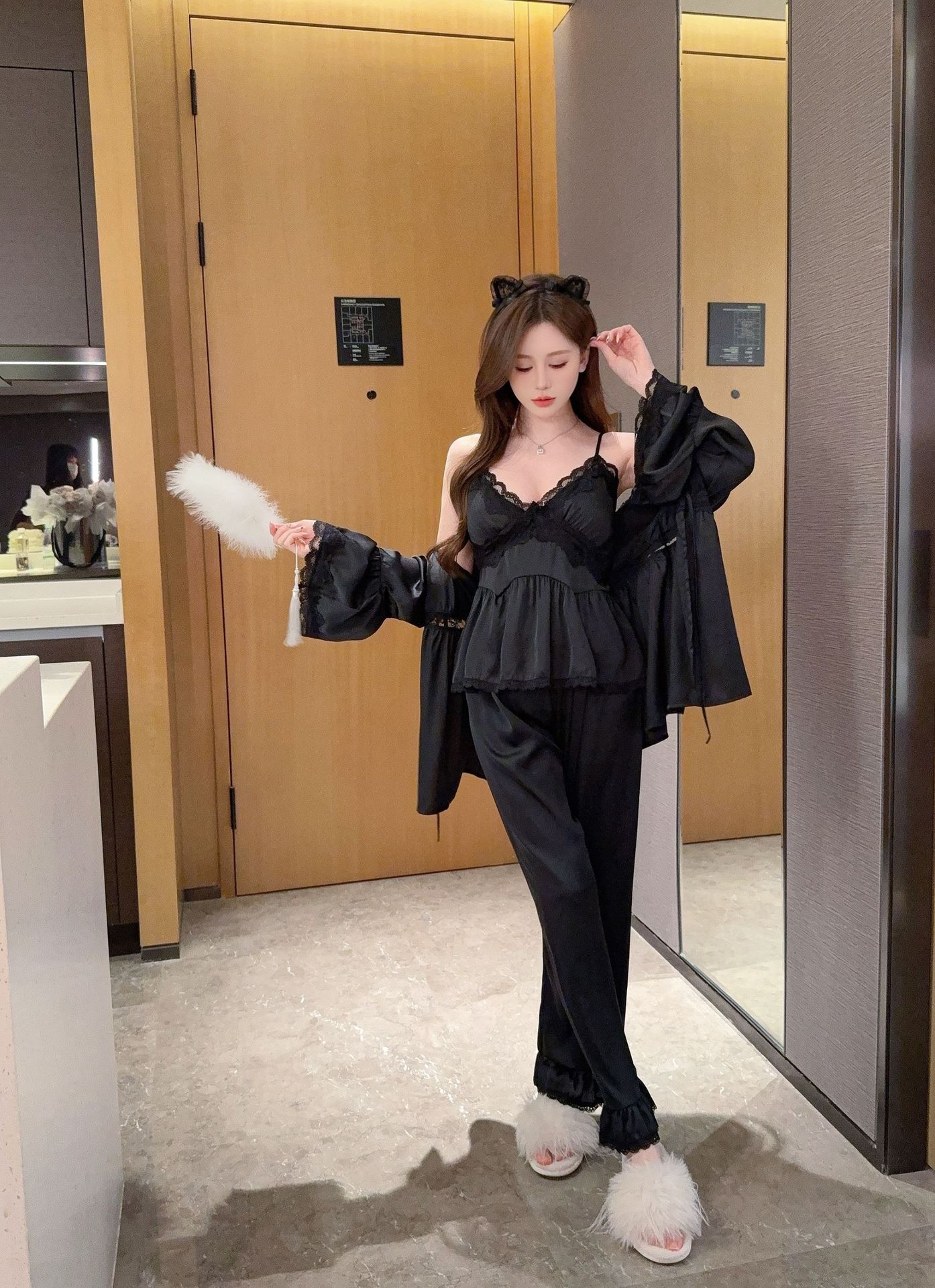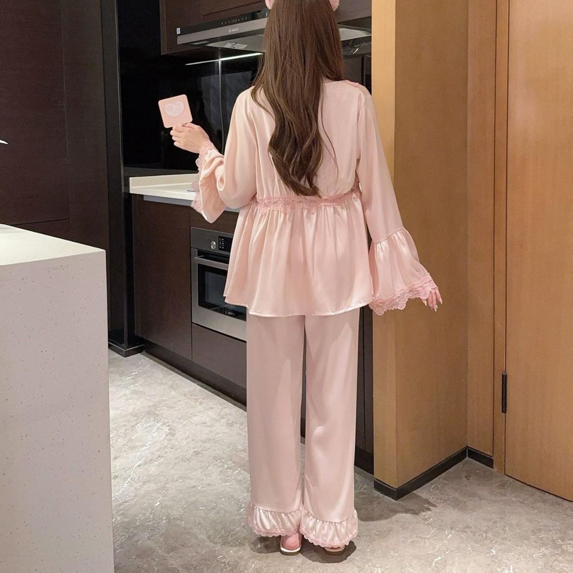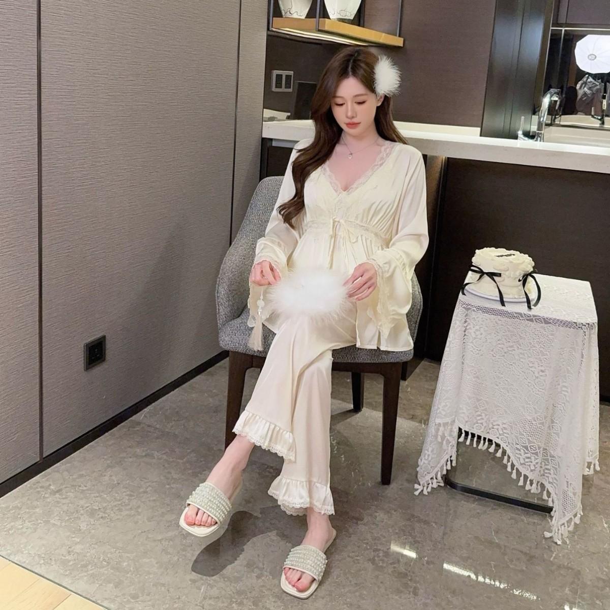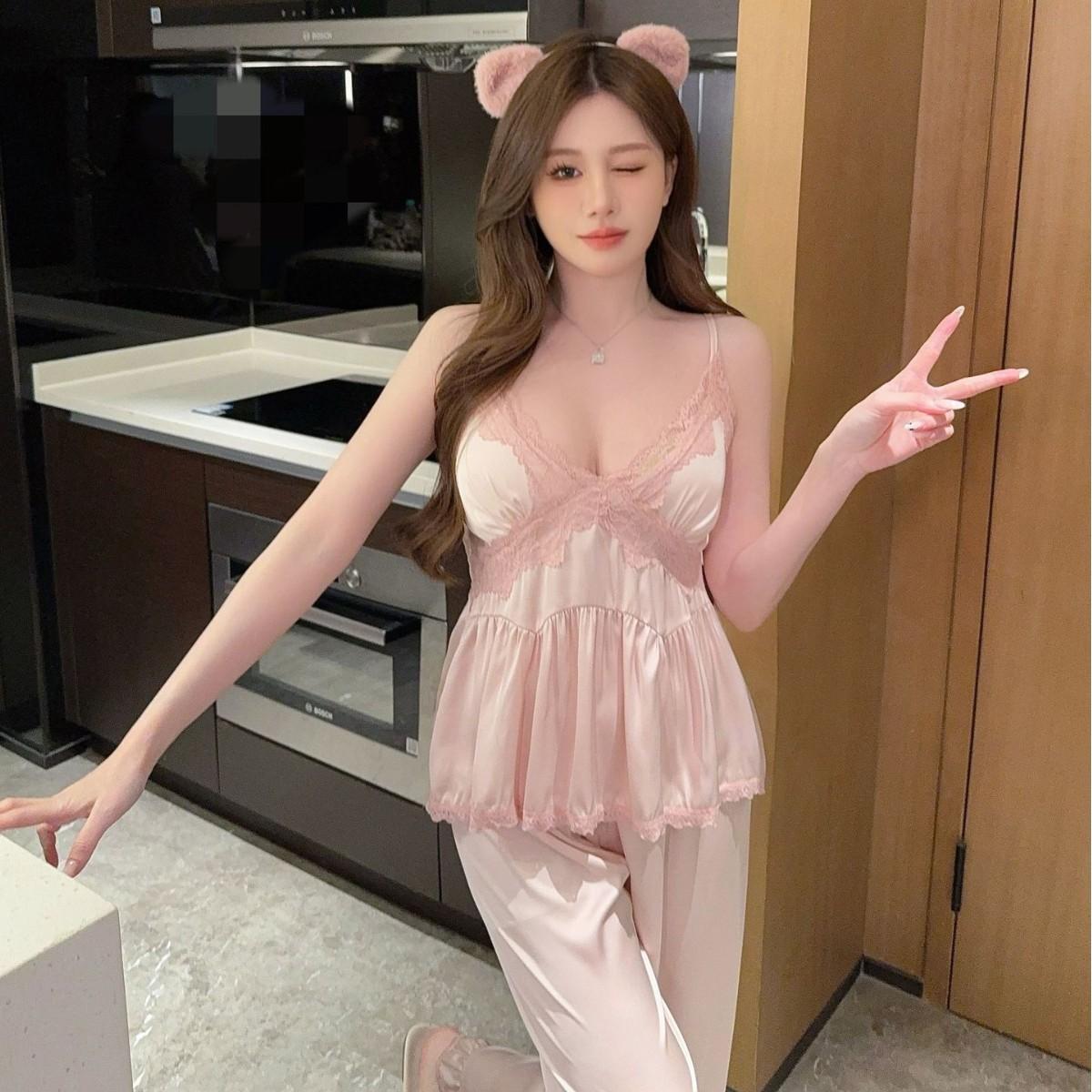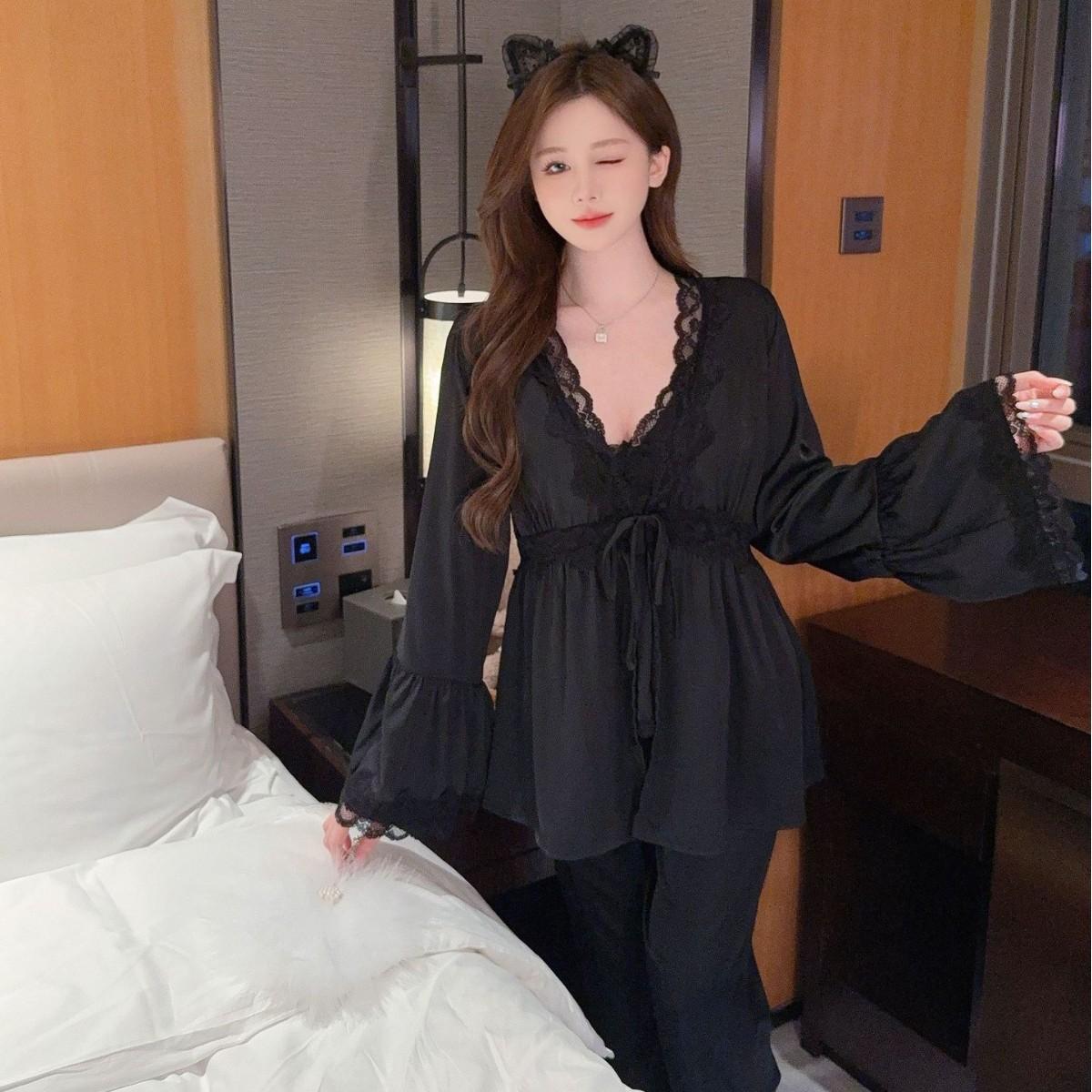 Pijama sexy de estilo francés para mujer, primavera y verano 2025, de alta gama, informal, sencillo, de tres piezas, para el hogar.