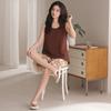Pijama de mujer de primavera y otoño, modal, fresco y transpirable, con lazo redondo y almohadilla en el pecho, ropa informal cómoda para el hogar.