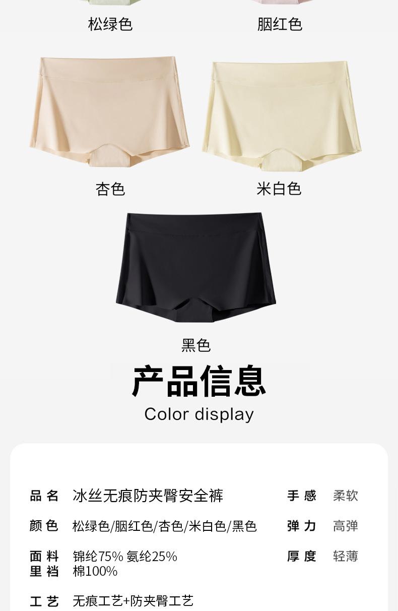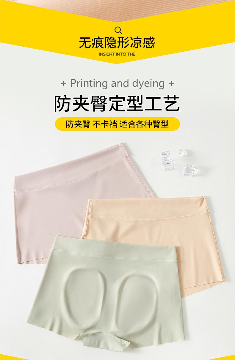 Pantalones de seguridad de seda de hielo sin marcas para mujer, calzoncillos tipo bóxer antideslumbrantes, ropa interior antibacteriana de alta elasticidad color melocotón para mujer