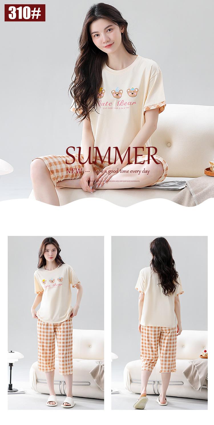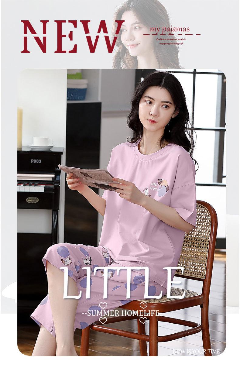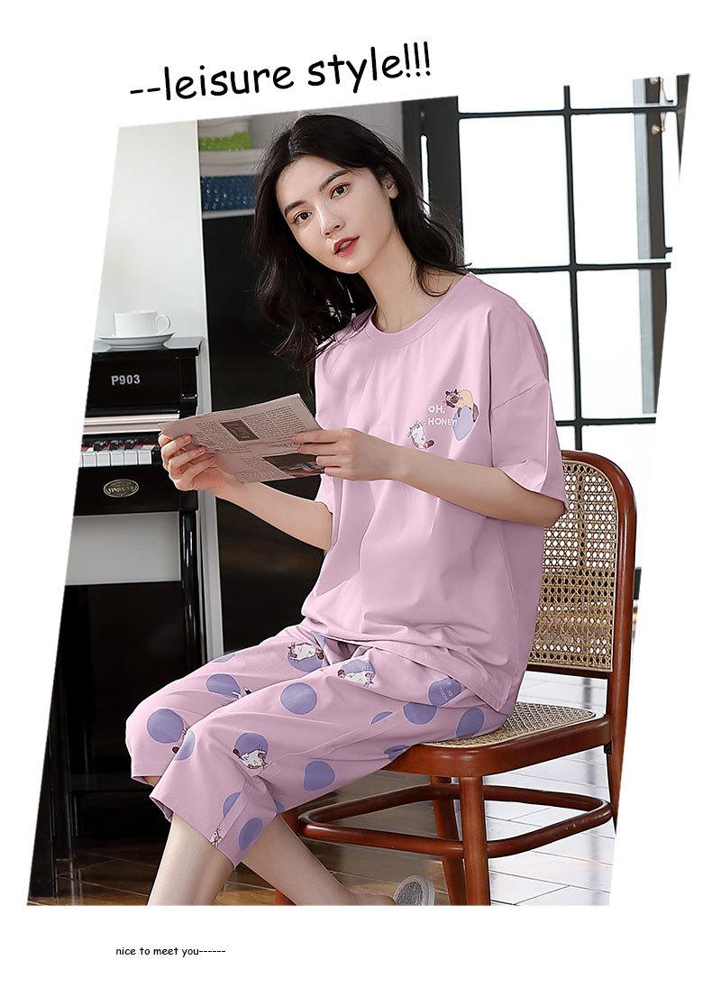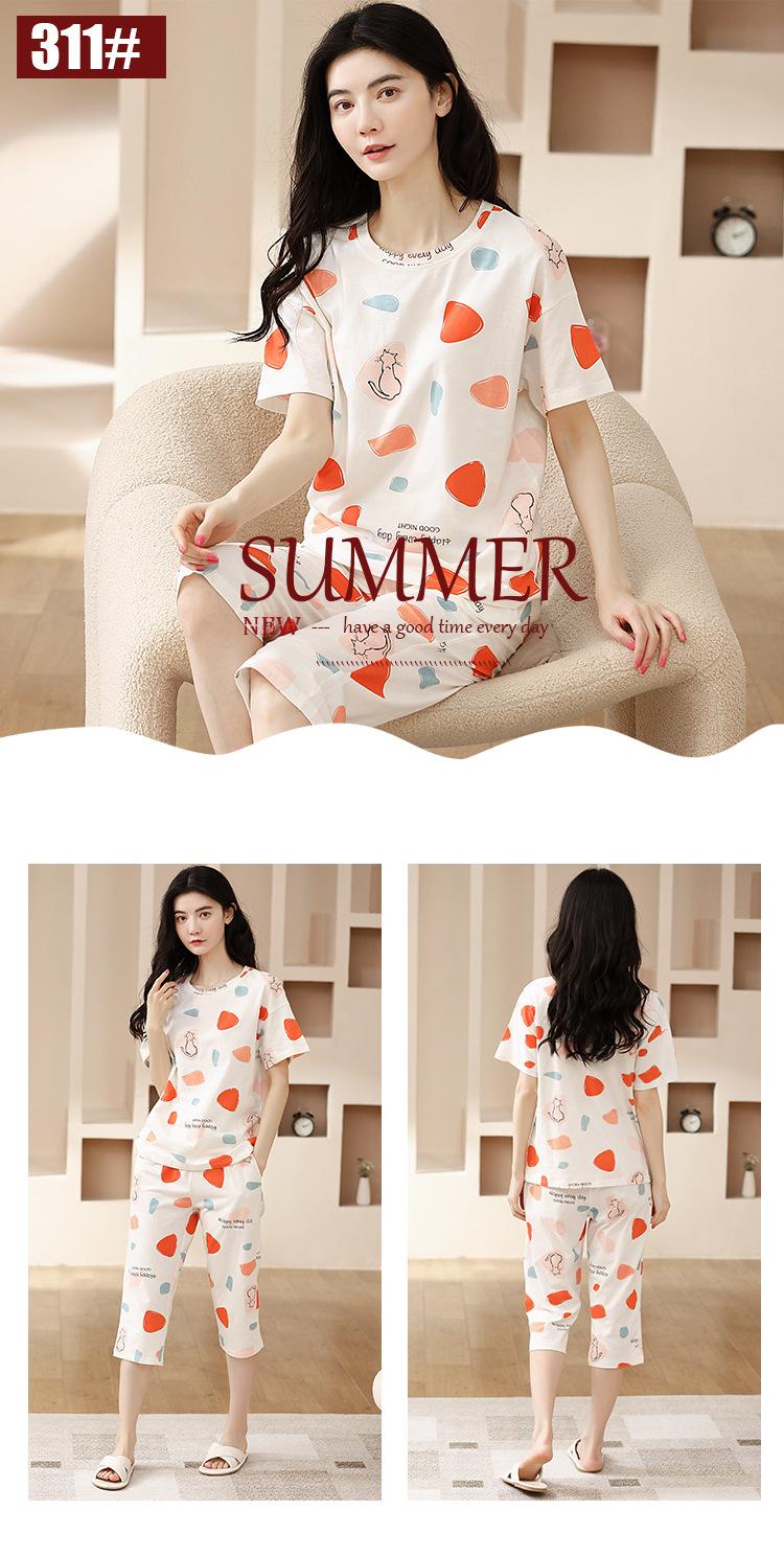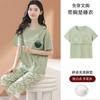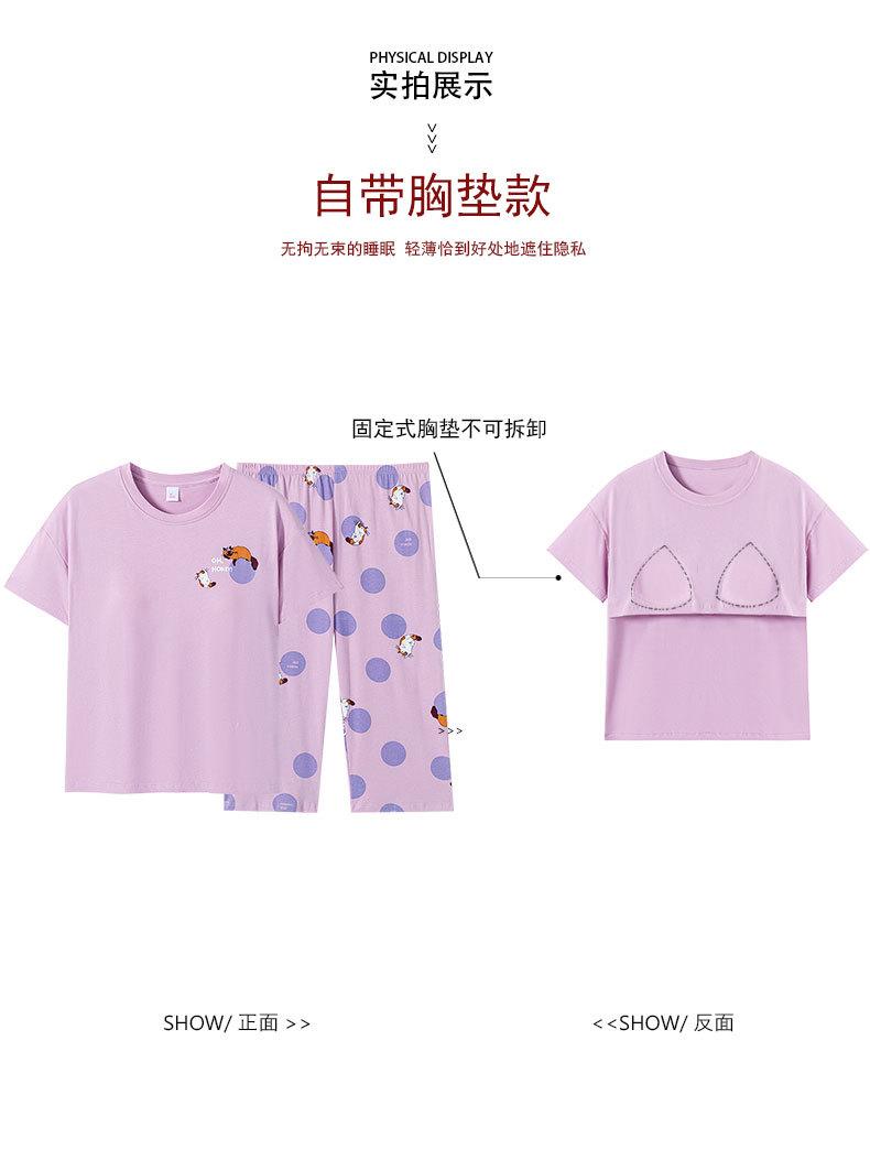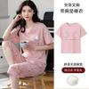 Pijama de algodón puro de verano para mujer, pantalones capri finos de manga corta con almohadilla para el pecho, ropa para el hogar, traje informal, dulce y sencillo.
