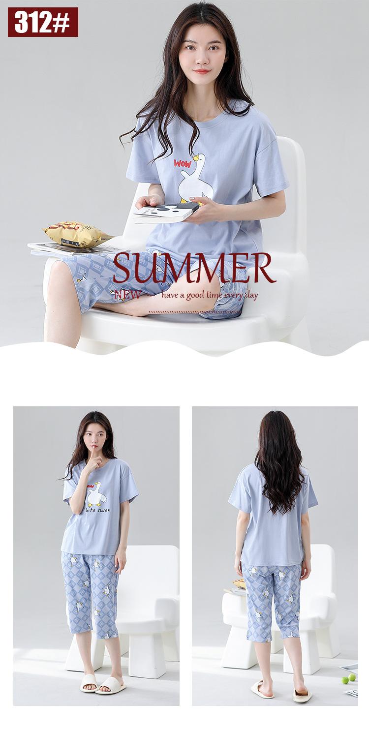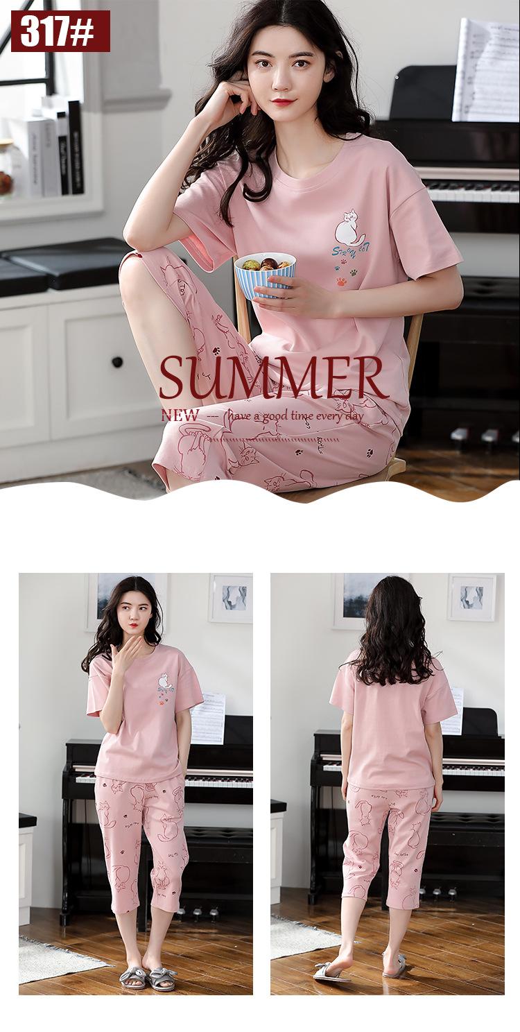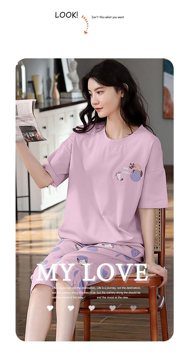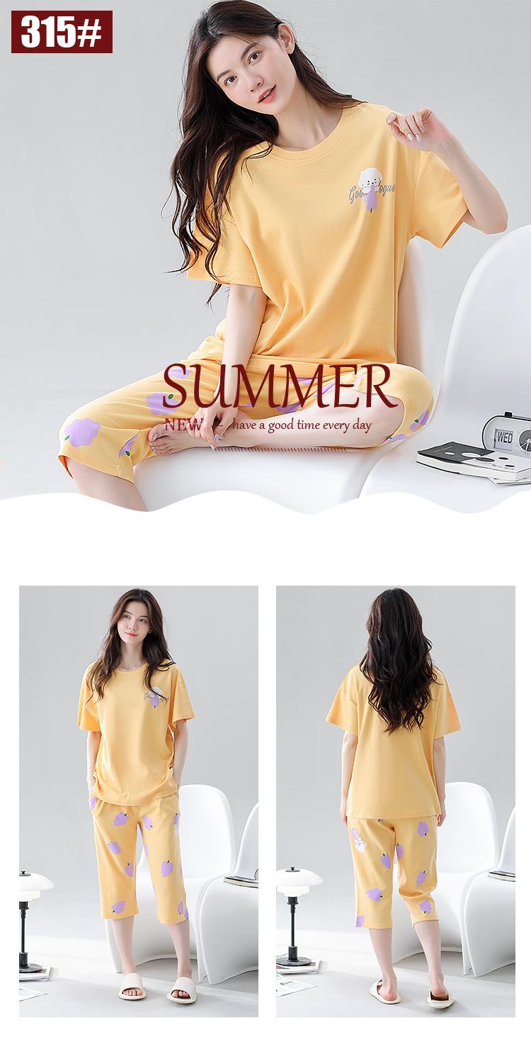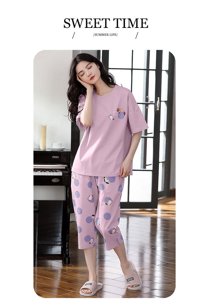 Pijama de algodón puro de verano para mujer, pantalones capri finos de manga corta con almohadilla para el pecho, ropa para el hogar, traje informal, dulce y sencillo.