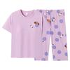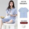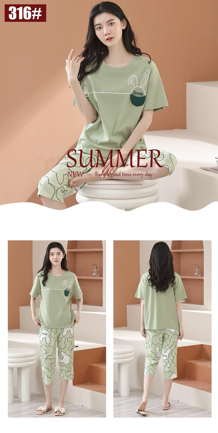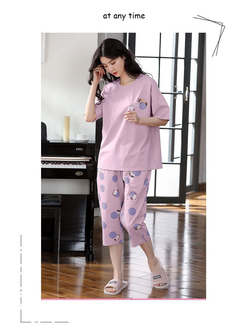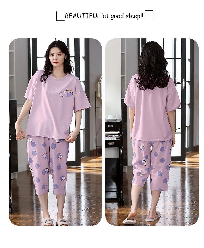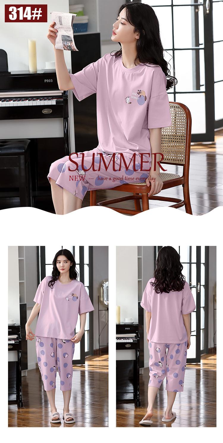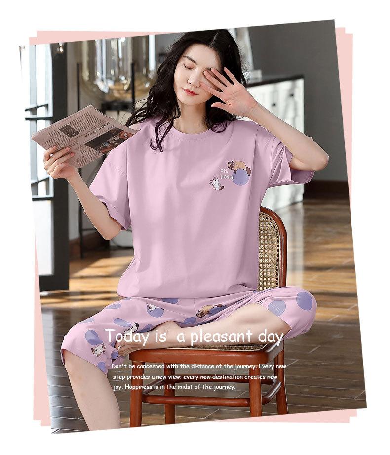 Pijama de algodón puro de verano para mujer, pantalones capri finos de manga corta con almohadilla para el pecho, ropa para el hogar, traje informal, dulce y sencillo.