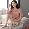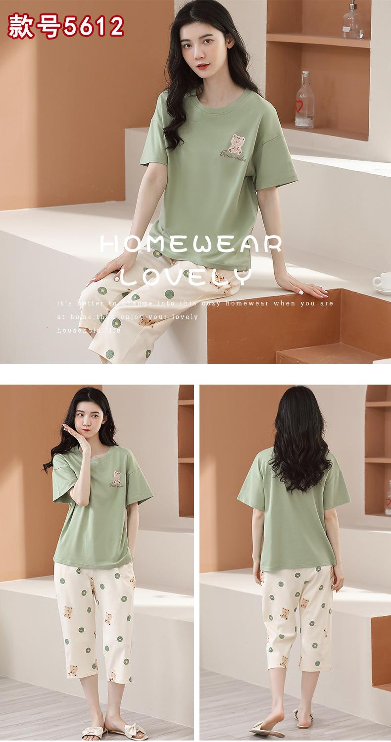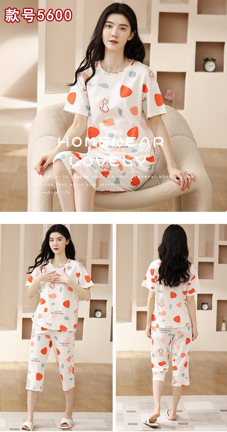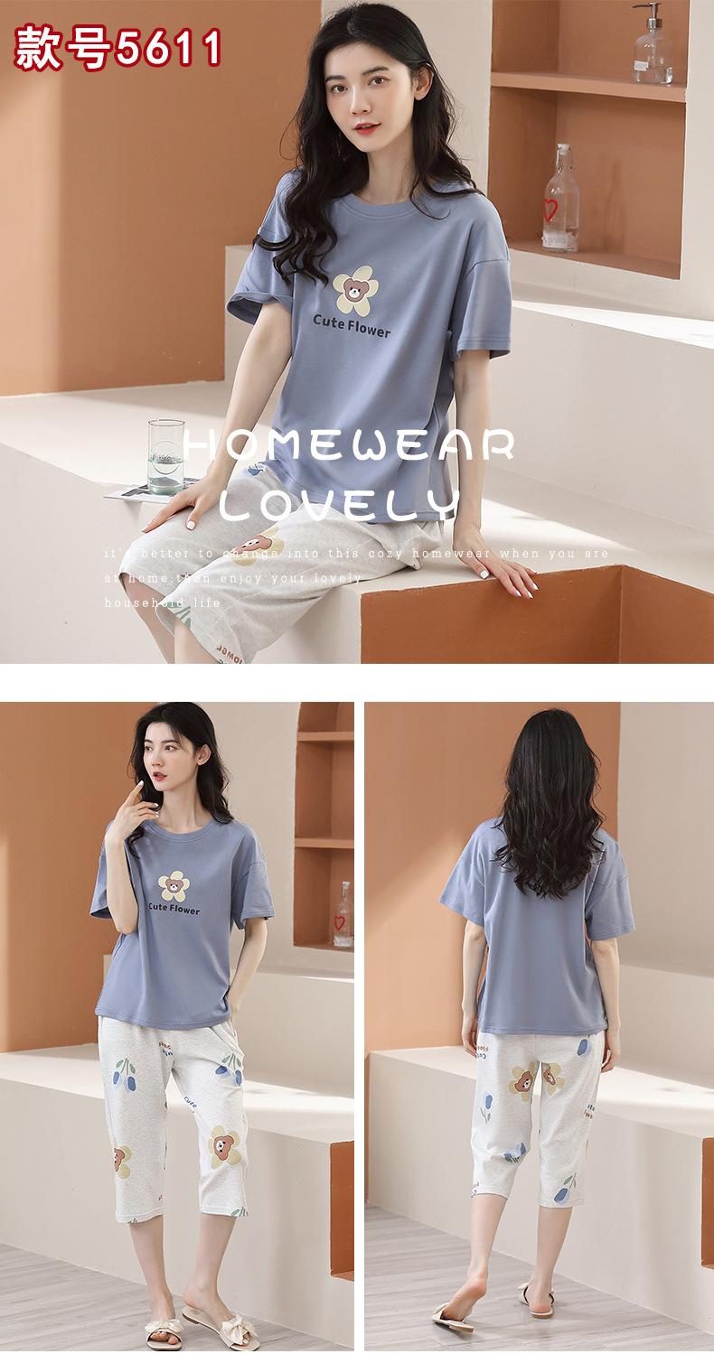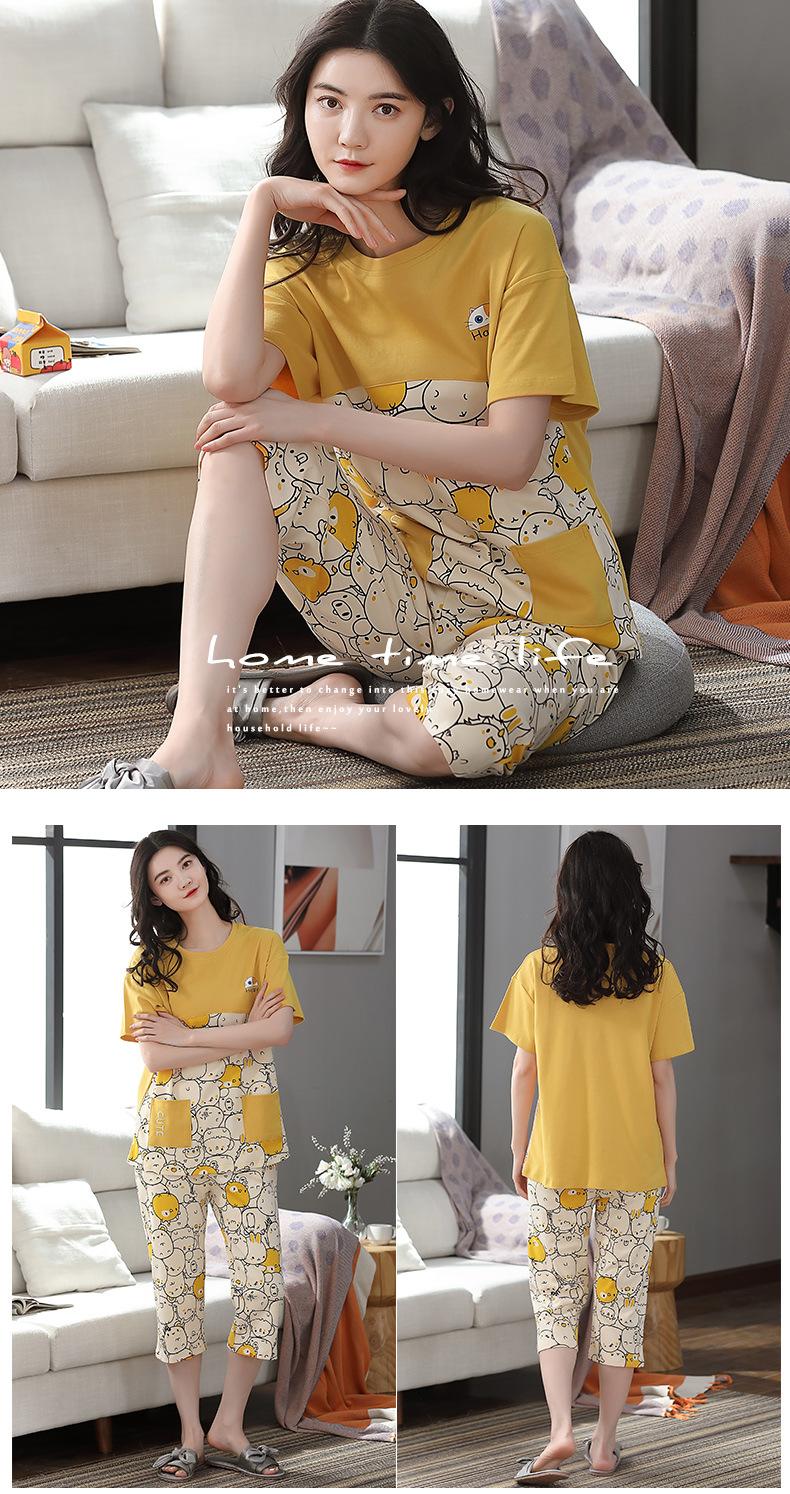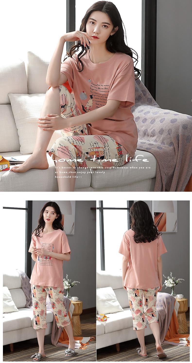 Pijamas de verano para mujer, de manga corta, con pantalones cortos de algodón, cómodos y transpirables, ropa de abrigo sencilla e informal para el hogar.