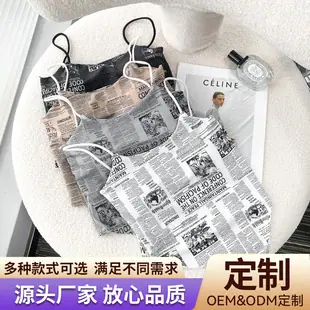 Camisola de Seda de Hielo con Estampado Irregular de Periódico Camisola Chaleco para Mujer Capa Interior Estilo Delgado Se Puede Usar Afuera Ropa Interior Básica Anti-Exposición