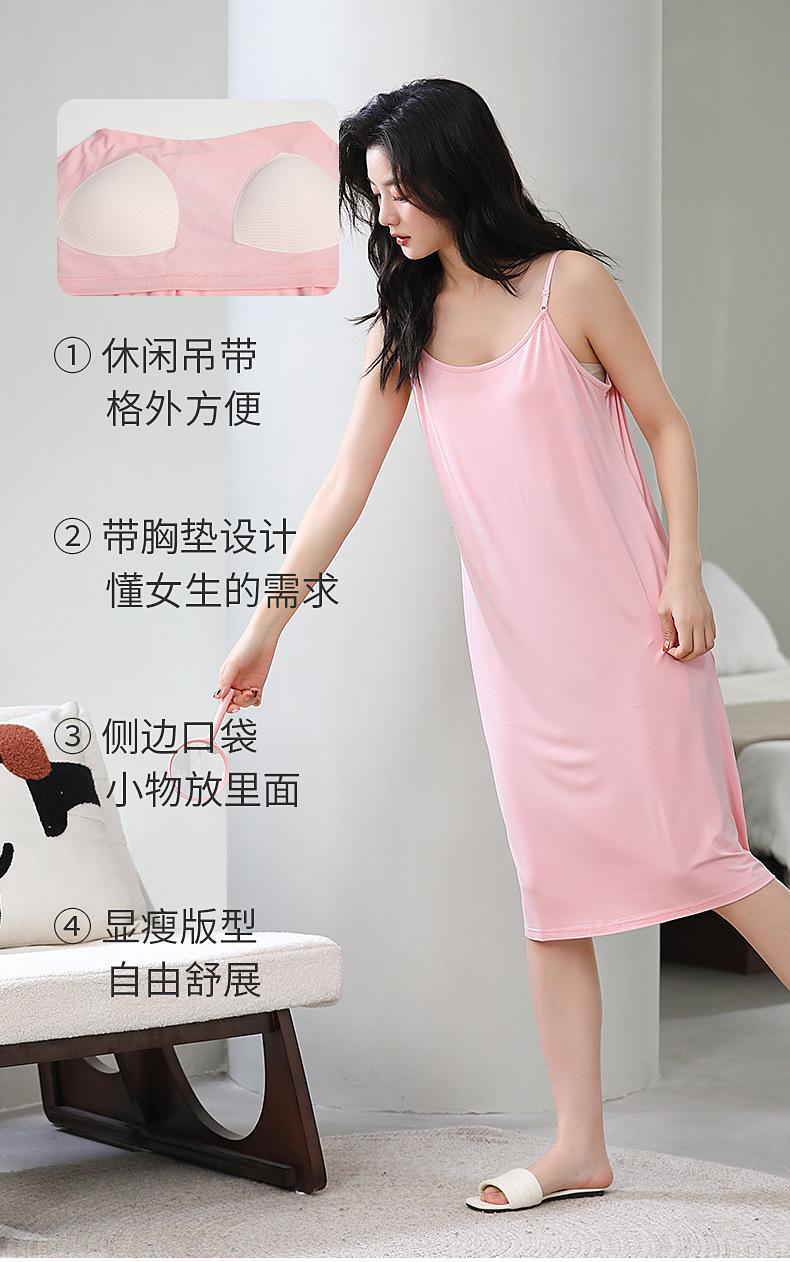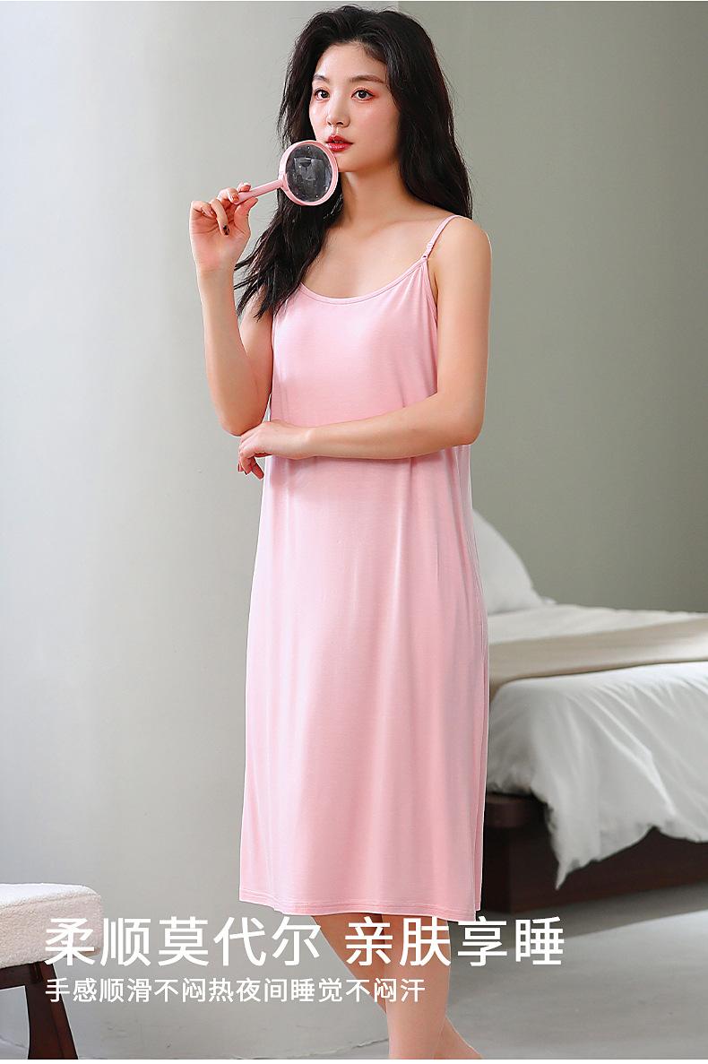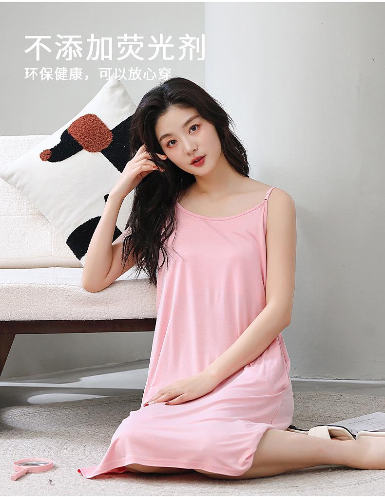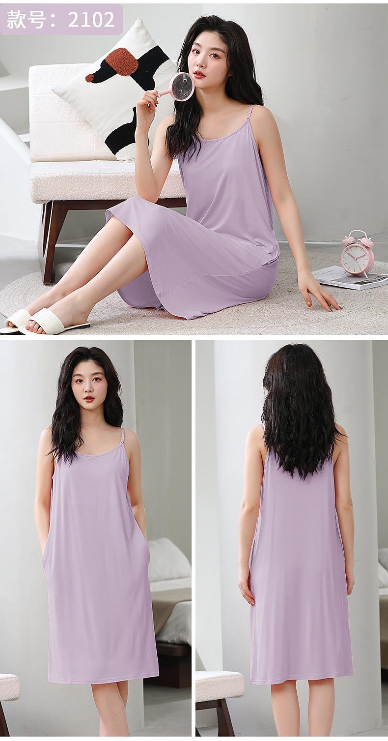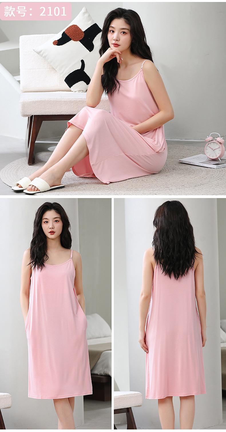 Camisón de verano para mujer, de modal, color liso, informal, holgado, de longitud media, con almohadilla para el pecho, ropa juvenil para el hogar.