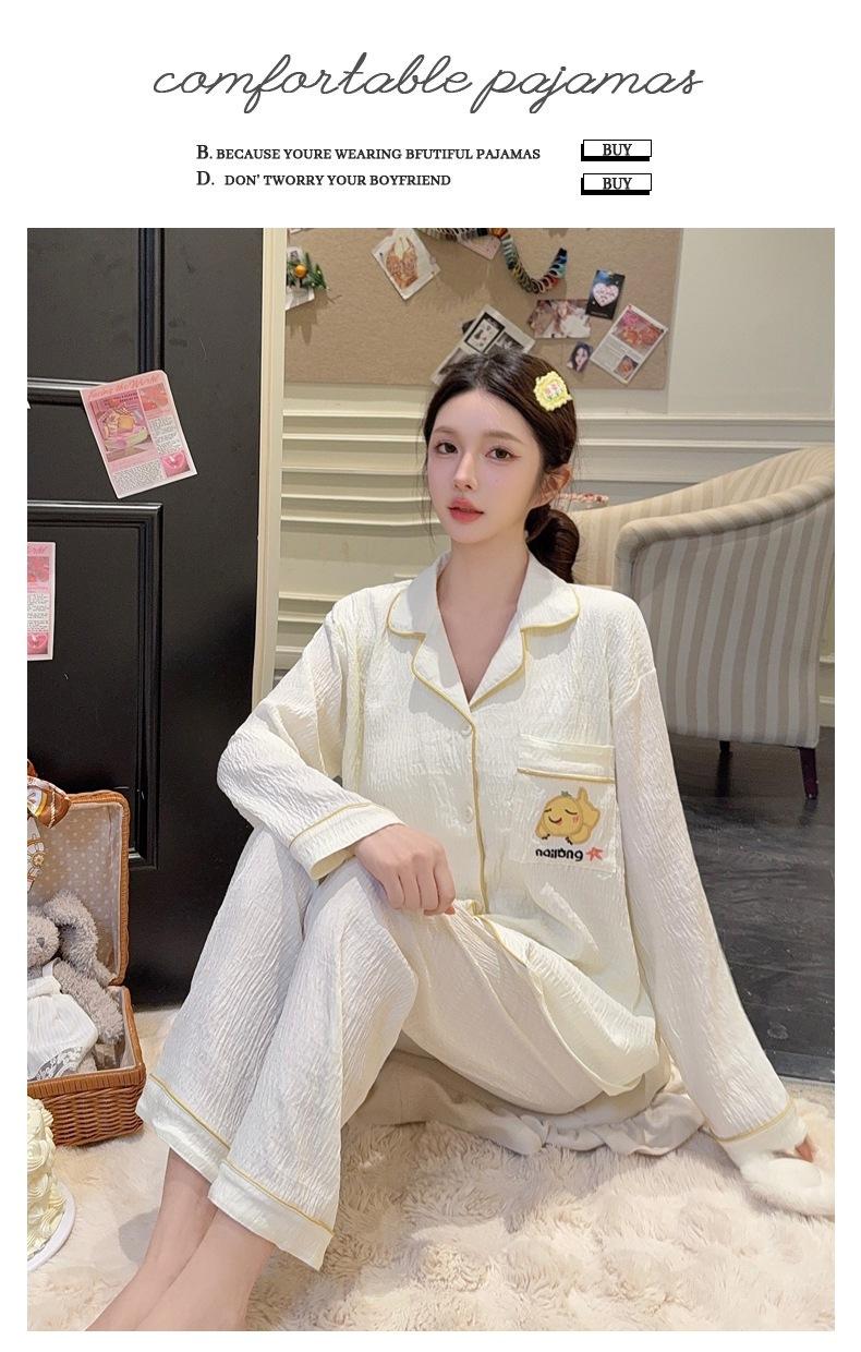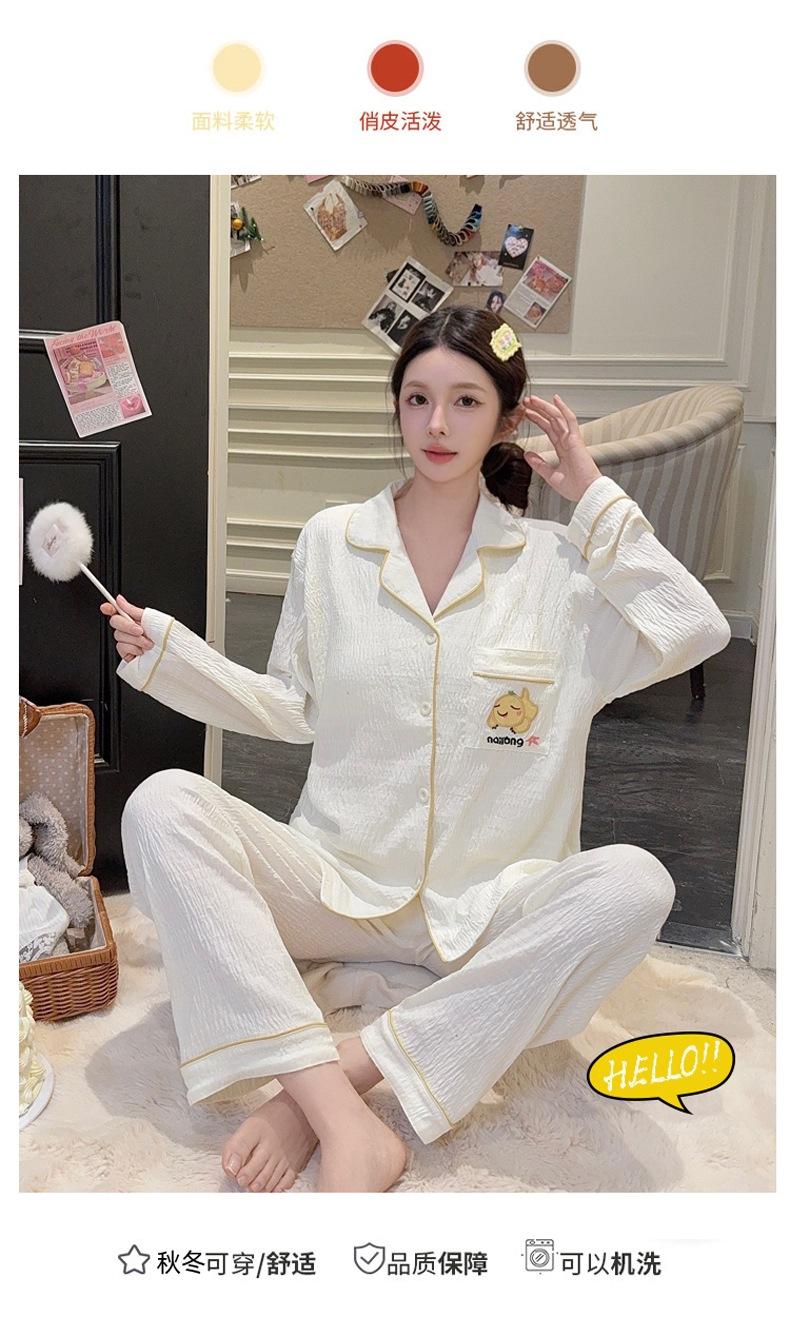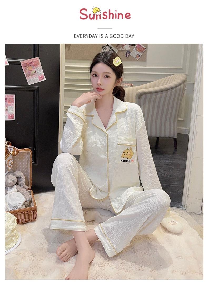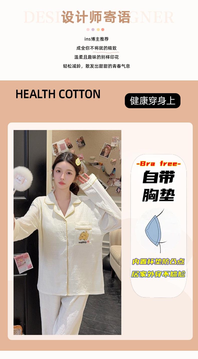 [Tienda] Traje de primavera para mujer, nuevo, de algodón con nubes y estampado de solapa con almohadilla para el pecho, bonito y dulce.