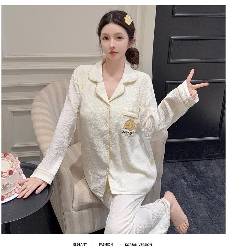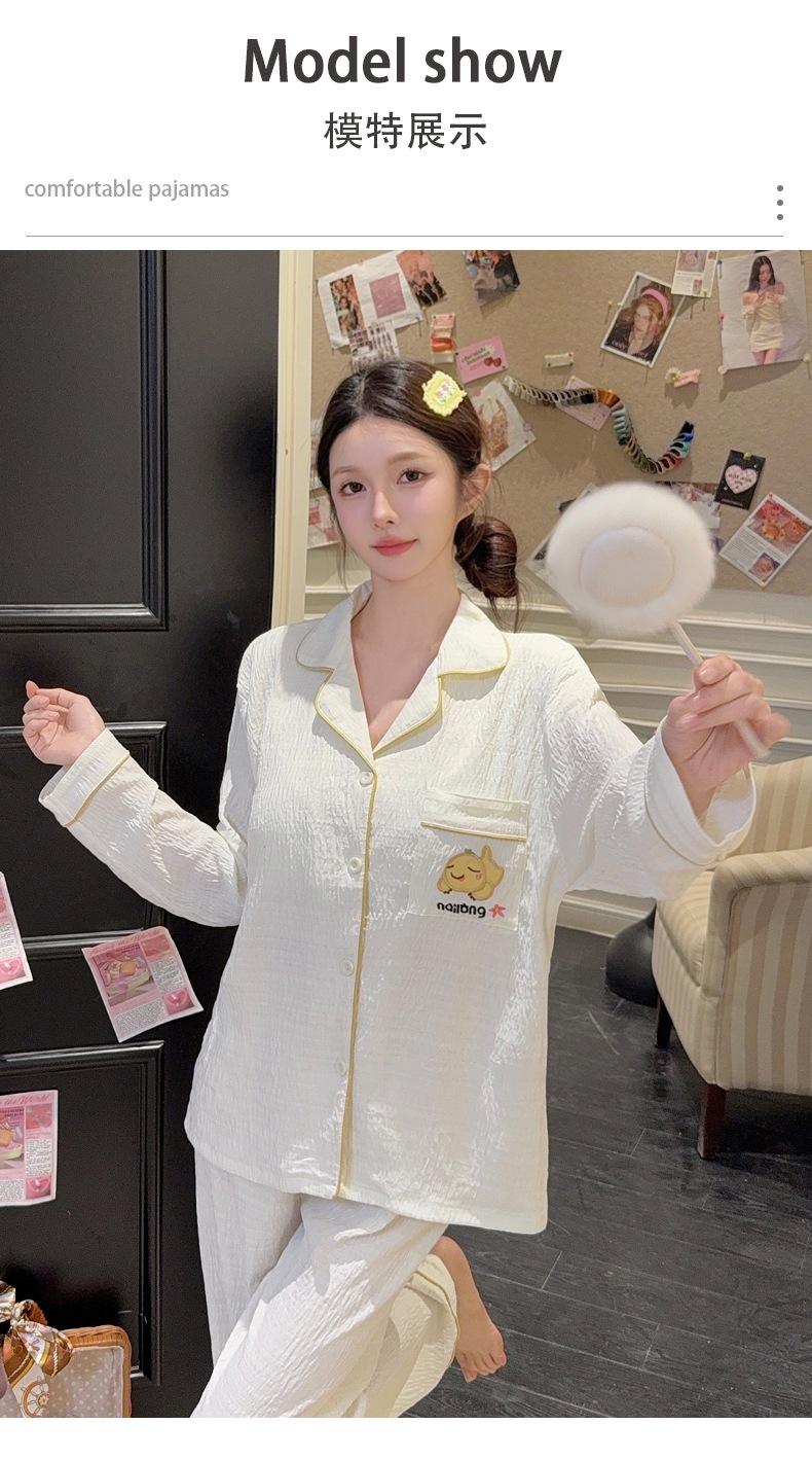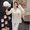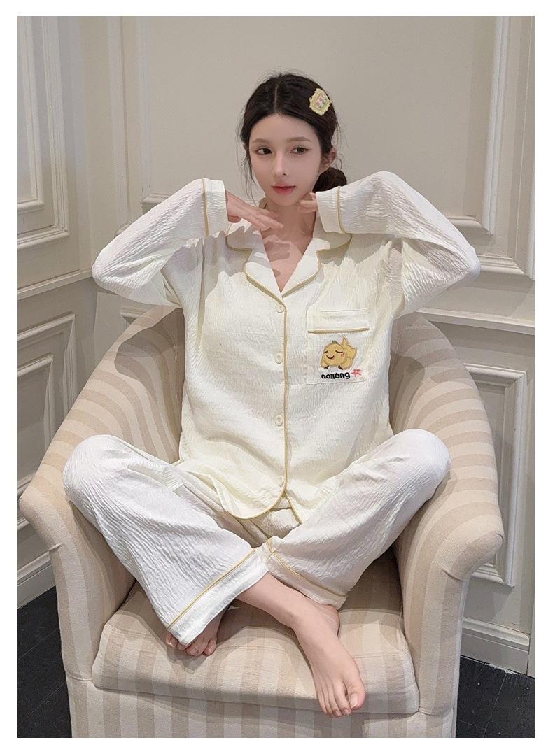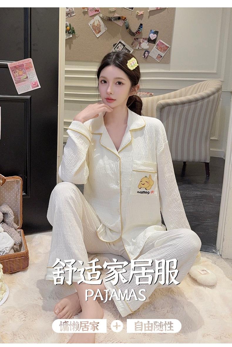 [Tienda] Traje de primavera para mujer, nuevo, de algodón con nubes y estampado de solapa con almohadilla para el pecho, bonito y dulce.