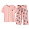 Pijamas con almohadilla para el pecho de algodón para mujer, pantalones capri de manga corta de verano, ropa de casa de verano para mujer, traje de algodón, ropa exterior