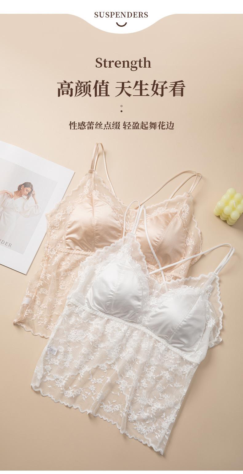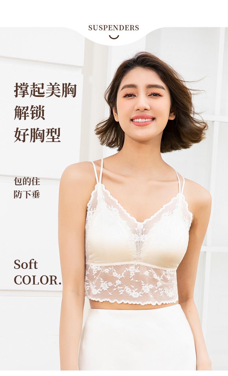 Compra Nueva ropa interior sexy de encaje con tirantes para mujer, sin aros de acero, cómoda, sujetador francés de una pieza, hermosa parte superior de tubo con espalda cruzada al por mayor en Joom.pro