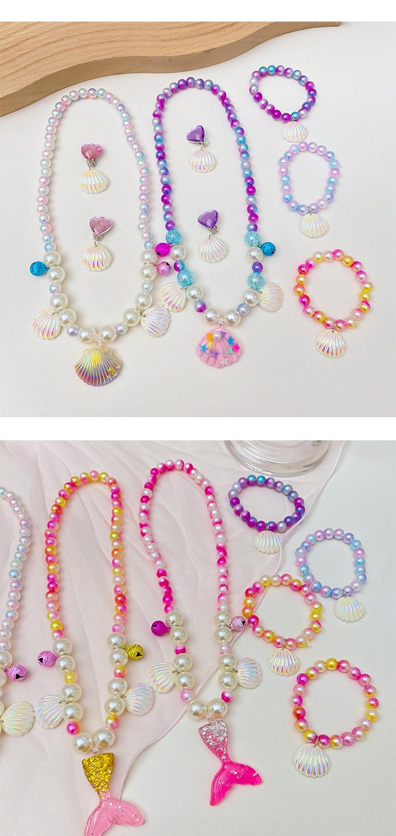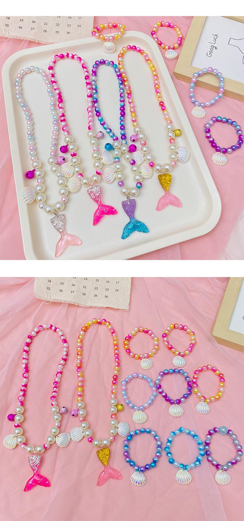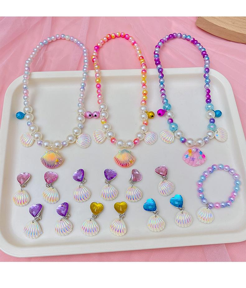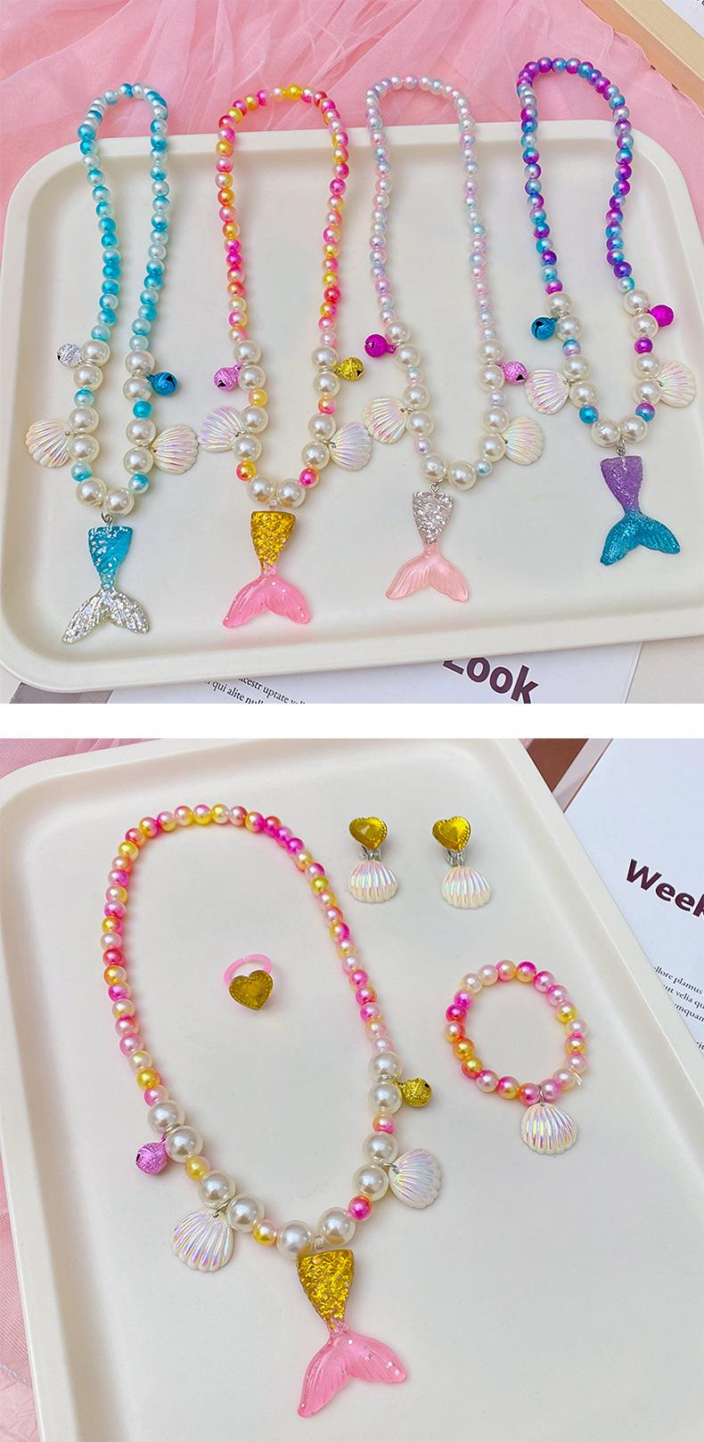 Collar de sirena para niña, joyería para bebé, princesa, pulsera de concha para niña, anillo, traje, joyería de perlas