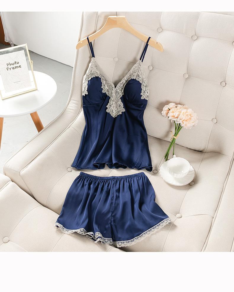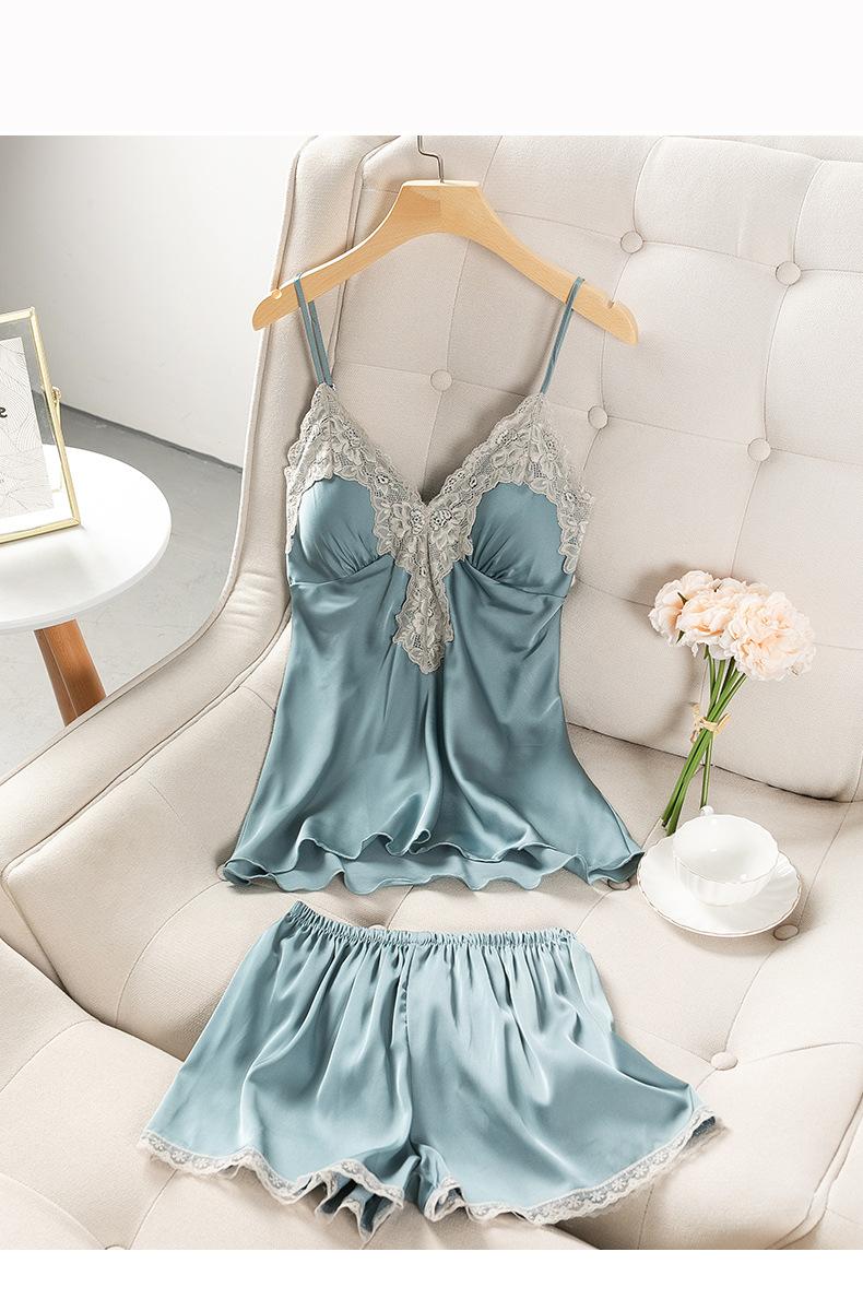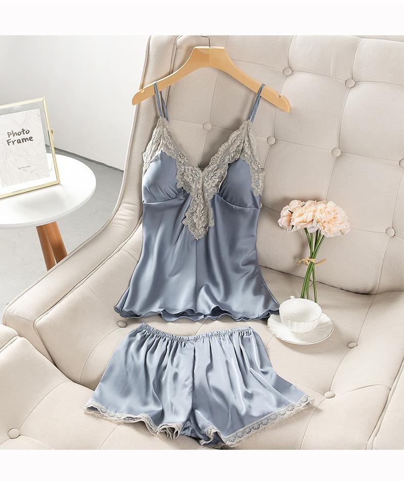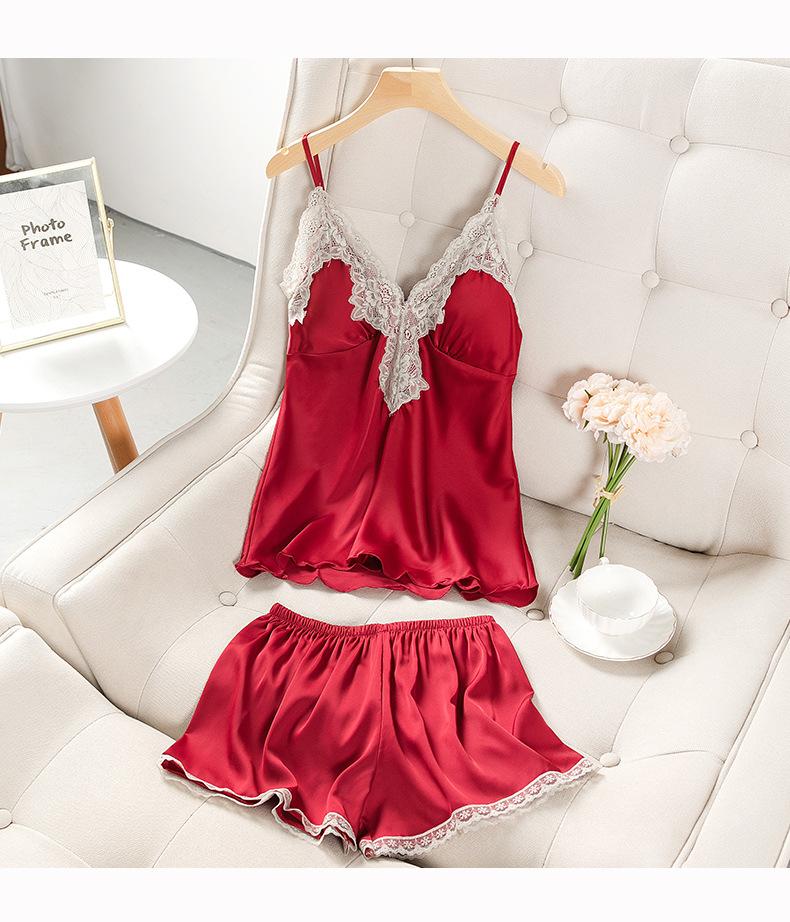 Compra Pijama de seda de hielo cómodo de verano para mujer, camisón de encaje sexy, camisola fina y sexy, pijama transpirable, ropa para el hogar al por mayor en Joom.pro