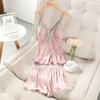 Pijama de seda de hielo cómodo de verano para mujer, camisón de encaje sexy, camisola fina y sexy, pijama transpirable, ropa para el hogar