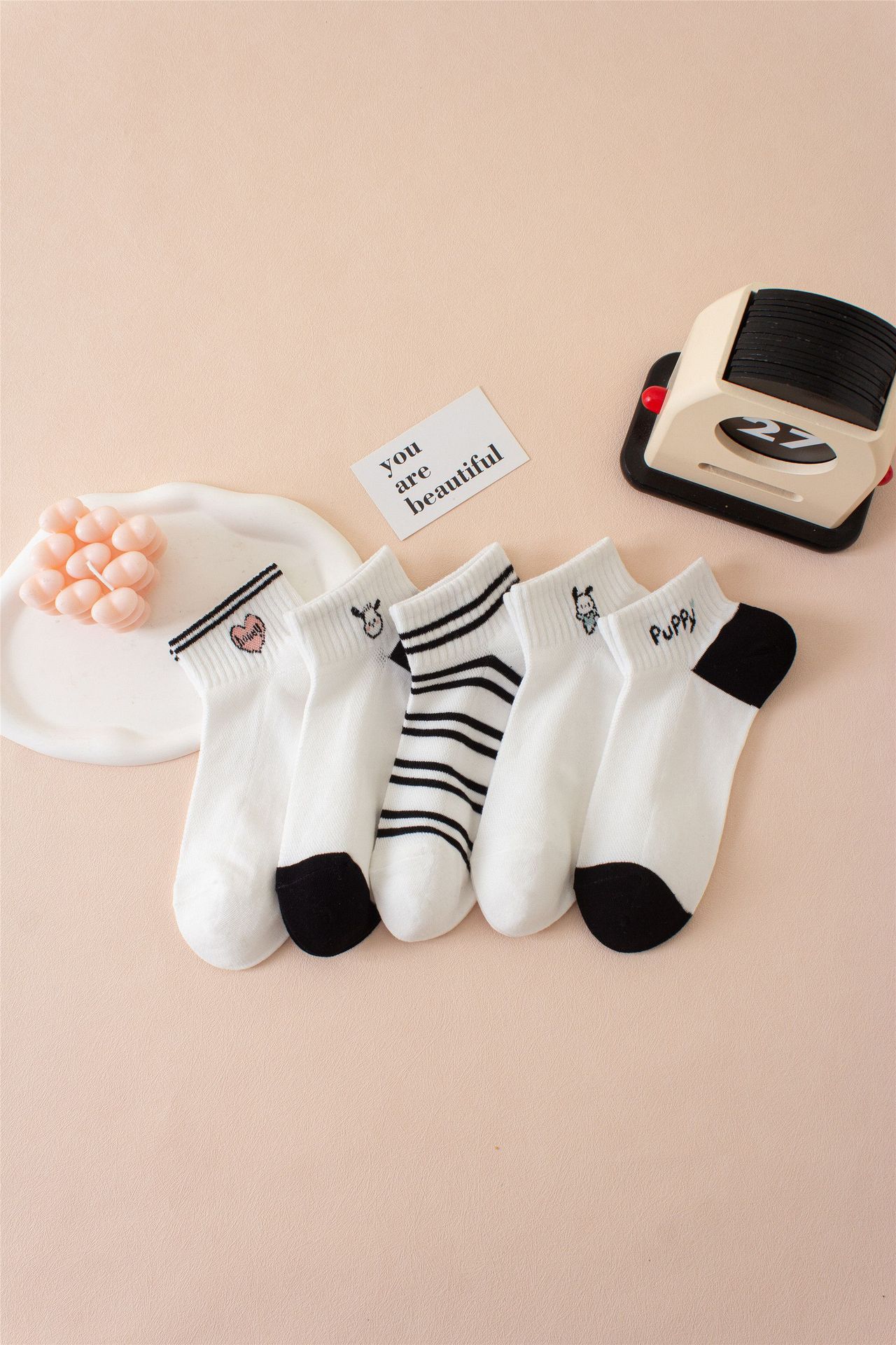Compra Calcetines blancos y negros para mujer, calcetines cortos de primavera y verano, finos, de boca baja, bonitos, japoneses, estilo universitario, modernos, para barco. al por mayor en Joom.pro