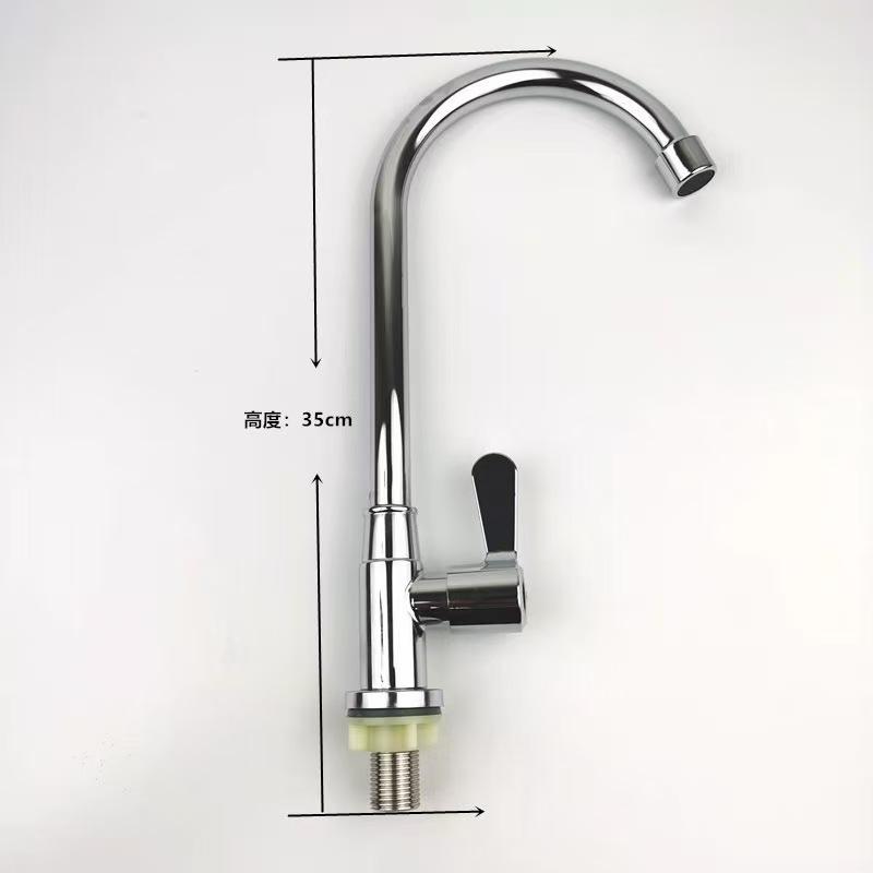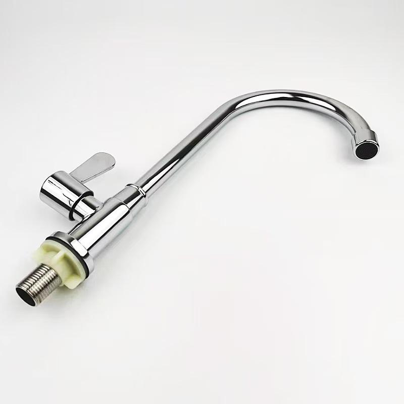 Grifo de cocina de un solo agua con bola de acero inoxidable galvanizado, grifo de lavabo de un solo agua con núcleo de cobre y gran curvatura de acero inoxidable