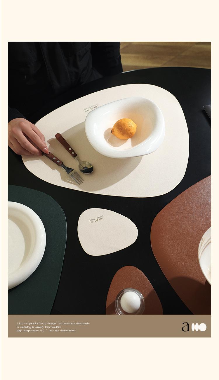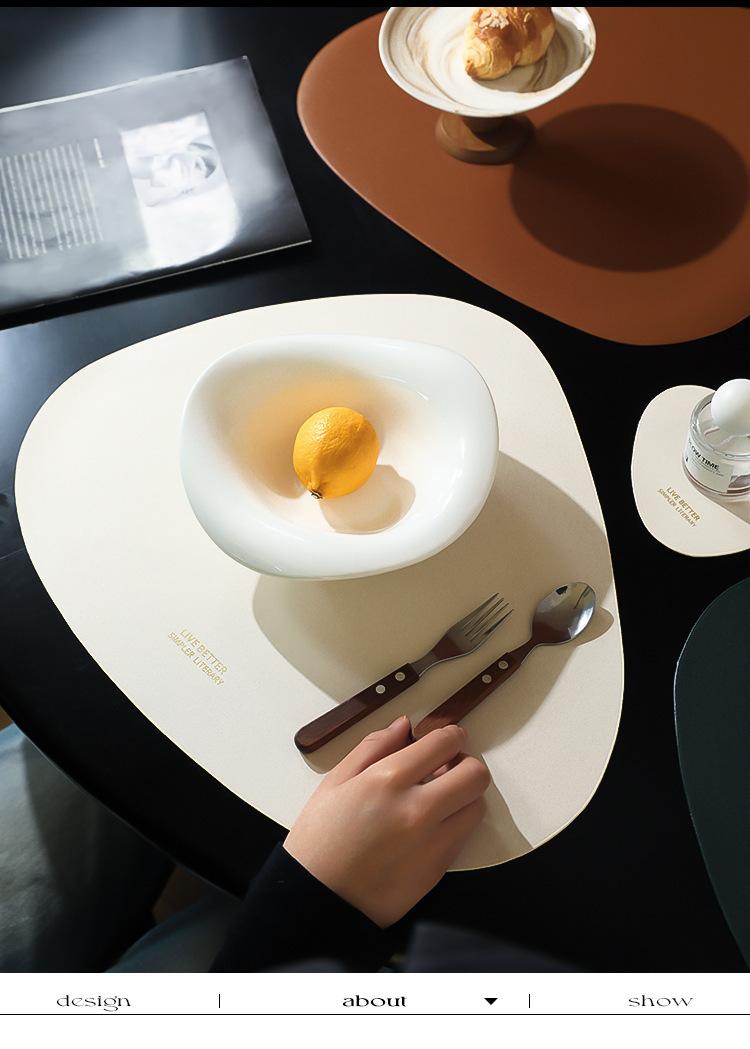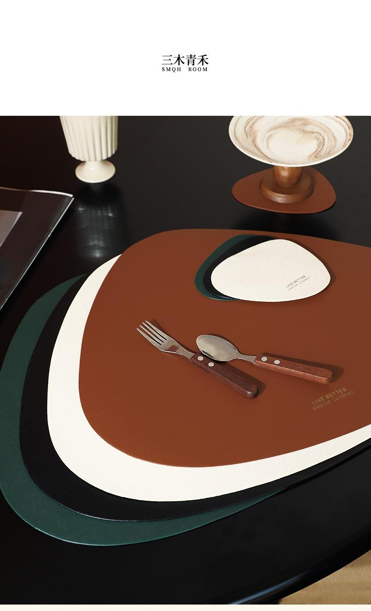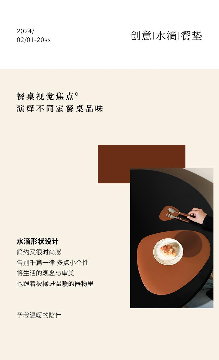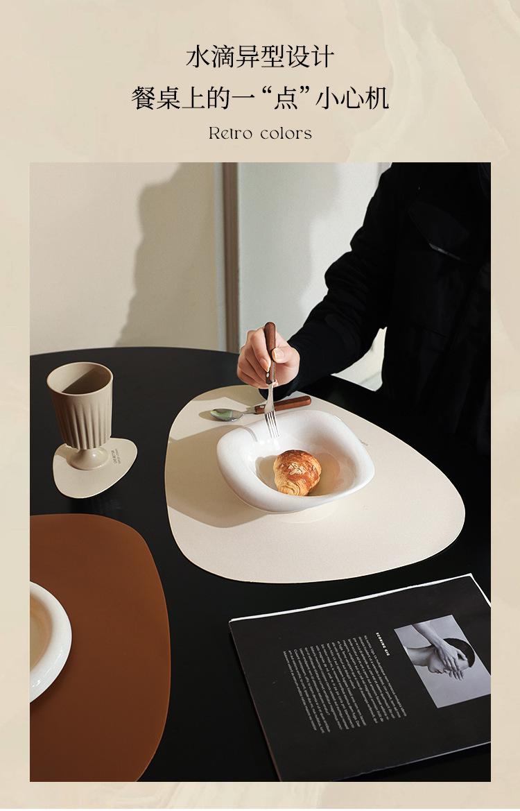Mantel individual de cuero de vaca de estilo nórdico con forma de gota, sencillo, de doble cara, antideslizante, de poliuretano termoaislante, para mesa de comedor de restaurante y hotel.