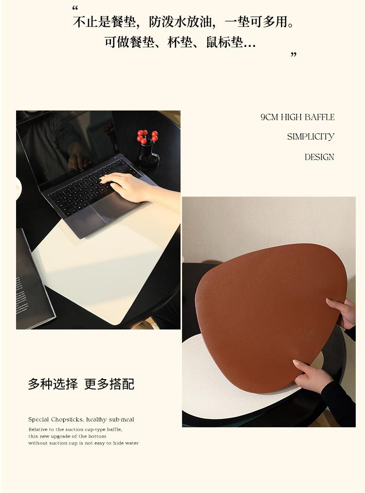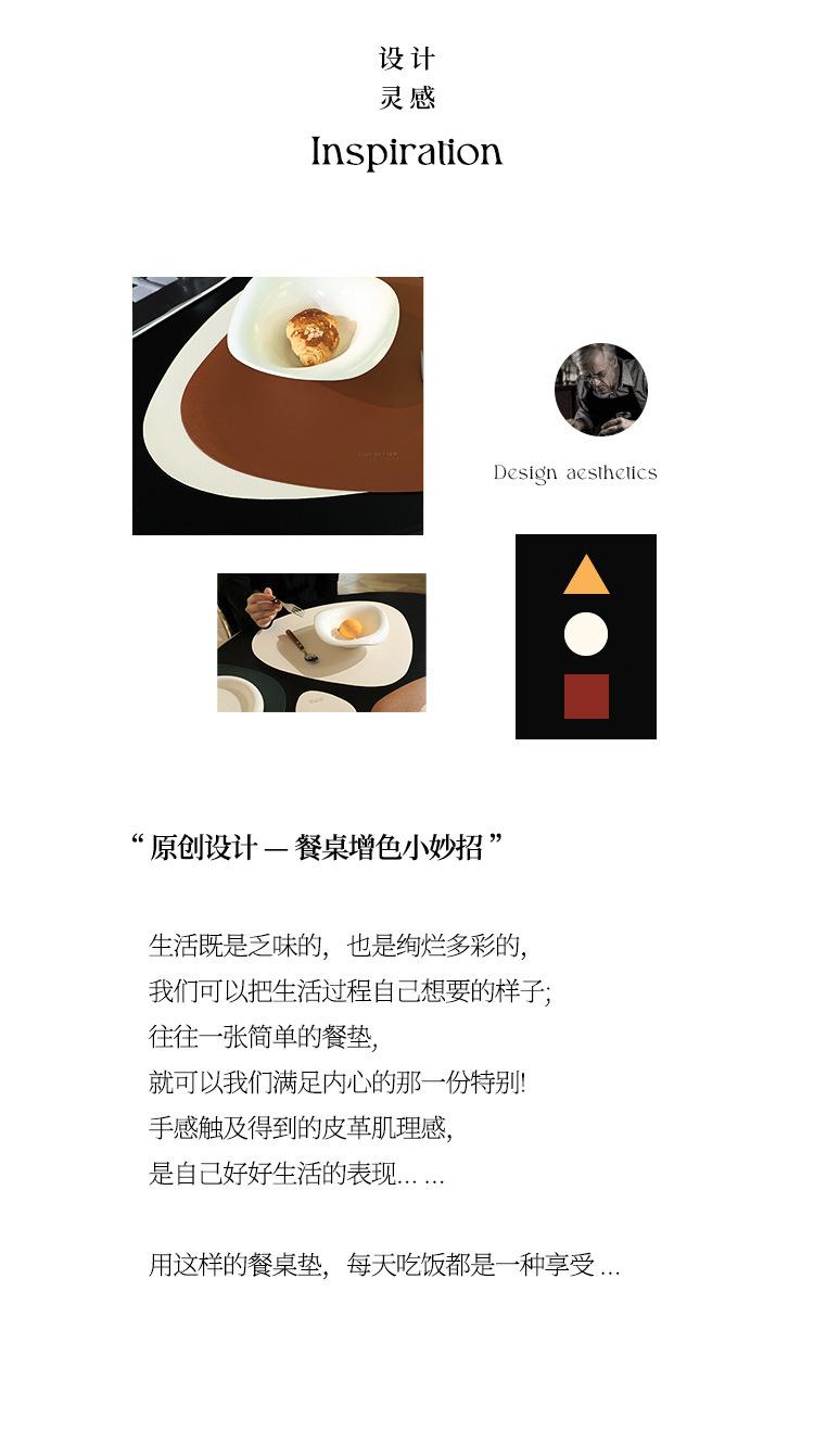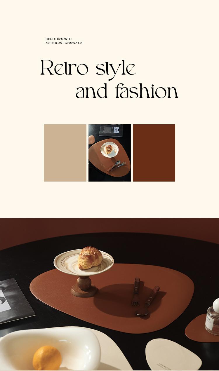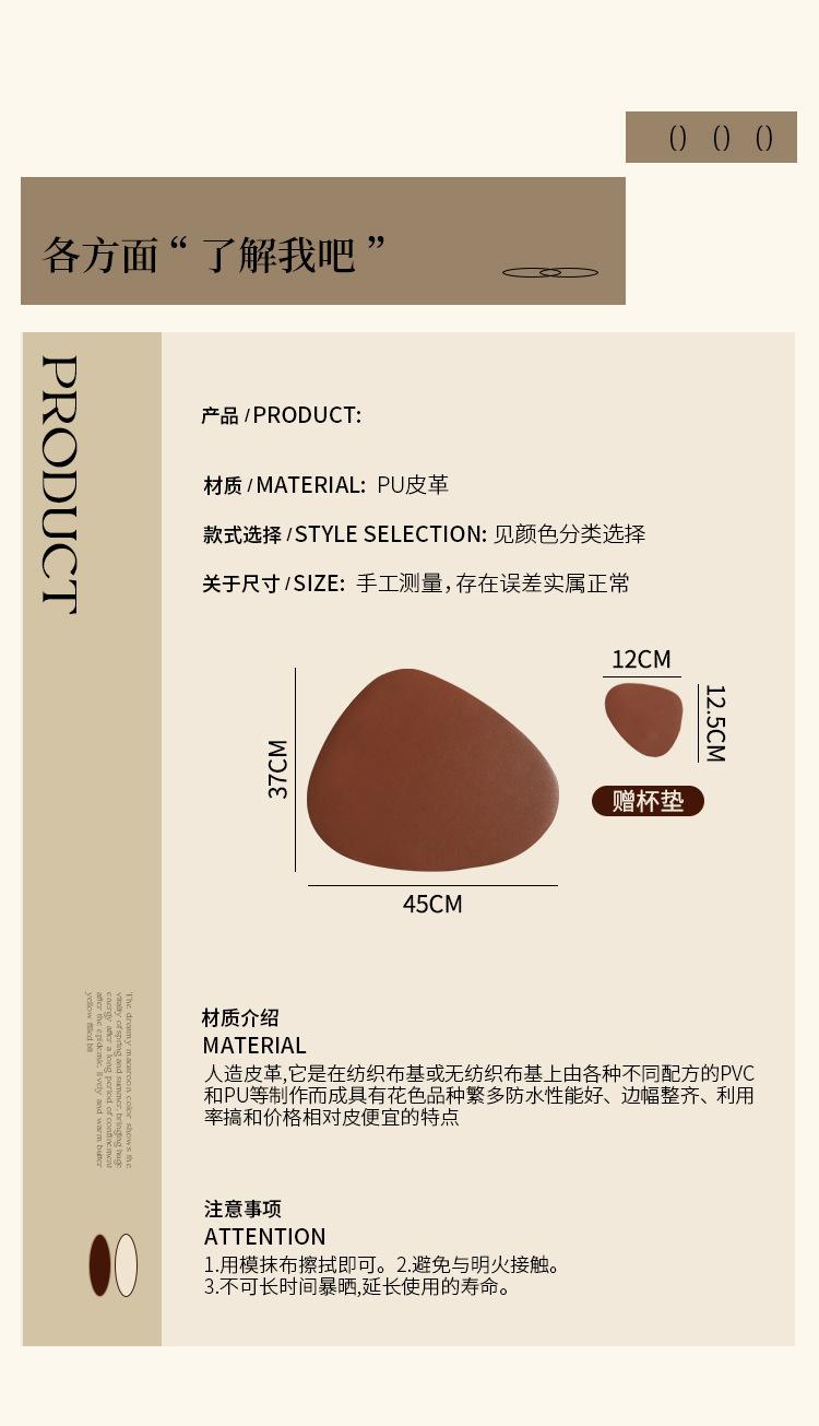 Mantel individual de cuero de vaca de estilo nórdico con forma de gota, sencillo, de doble cara, antideslizante, de poliuretano termoaislante, para mesa de comedor de restaurante y hotel.