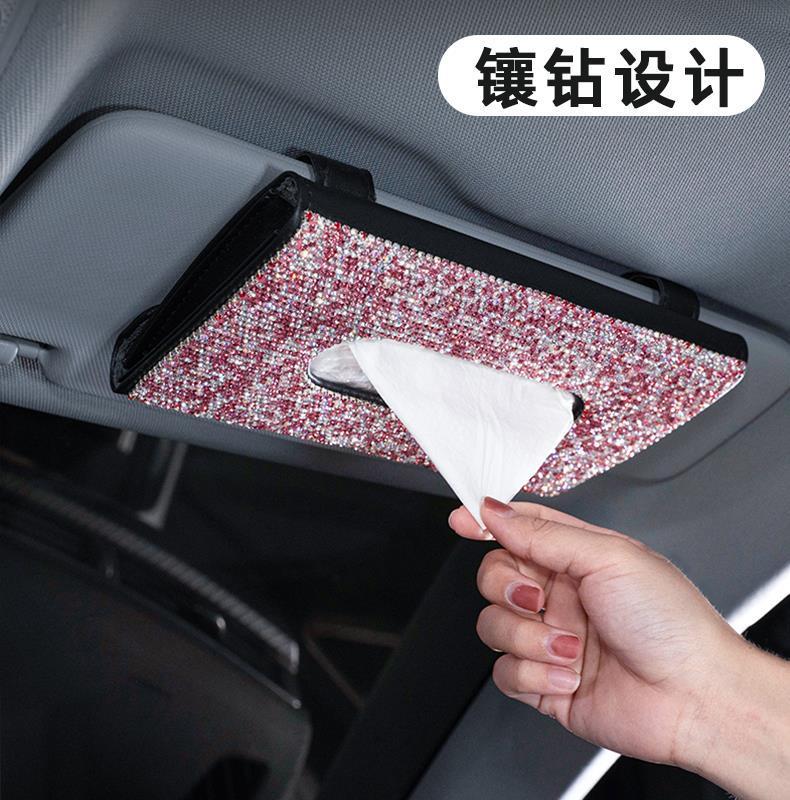 Full Diamond White Diamond Sun Retaining Board Tissue Box, Full diamond pink diamond sun shield tissue box, Fu...