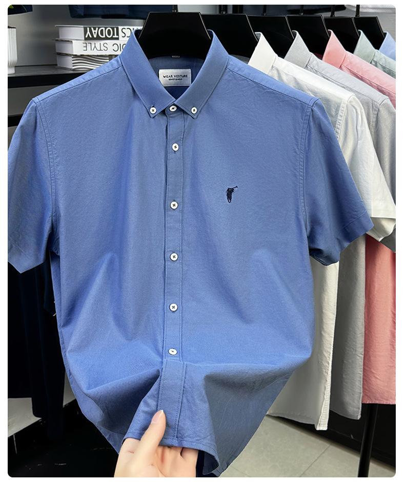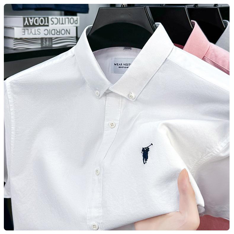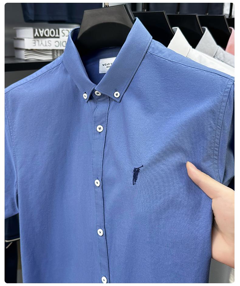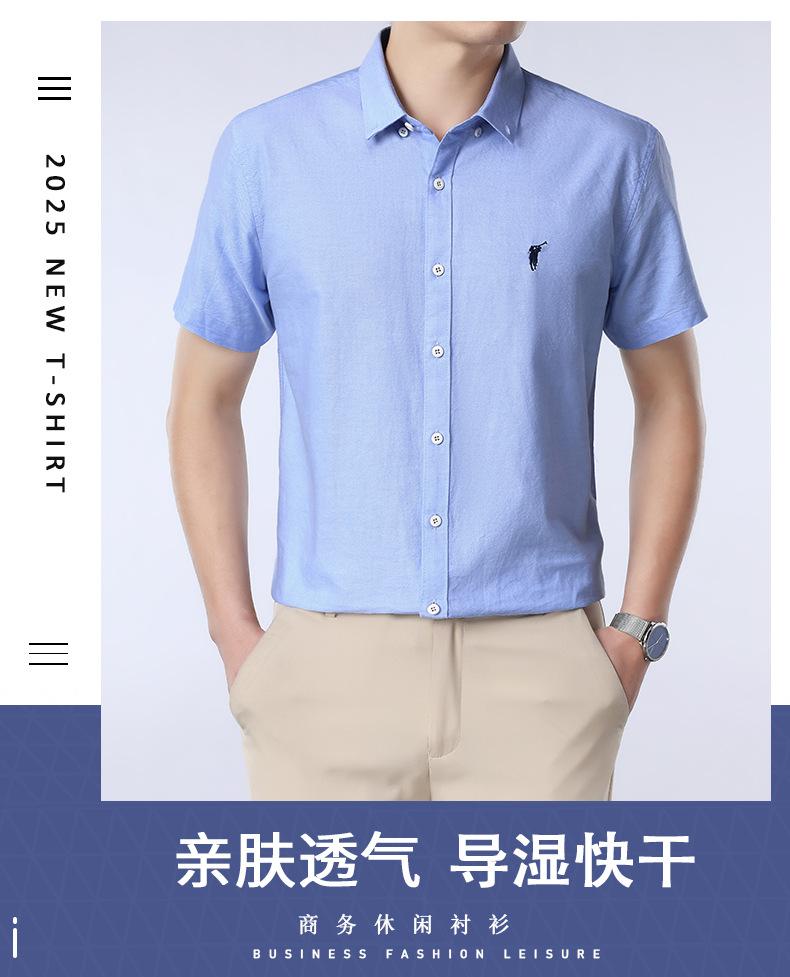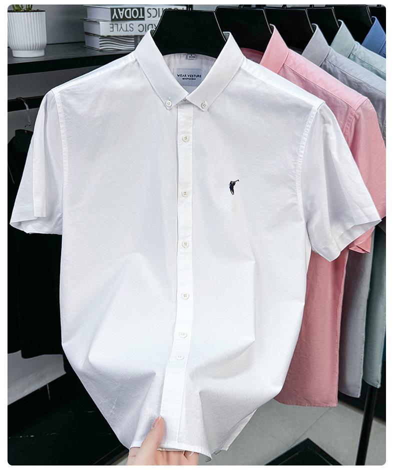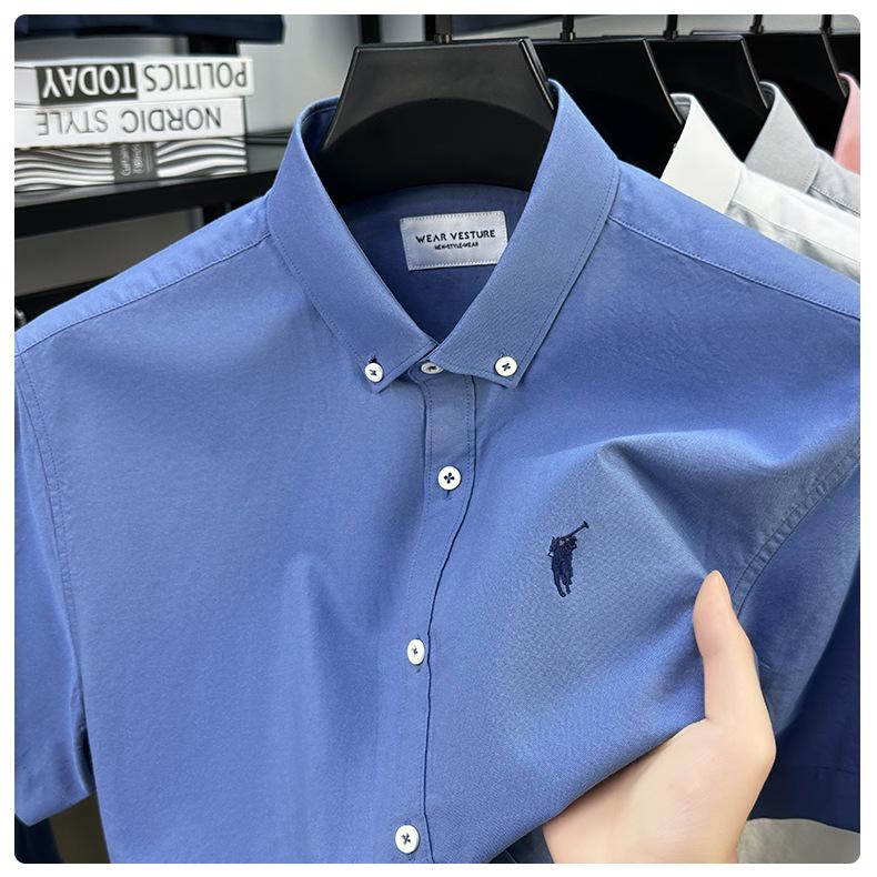Camisa de manga corta con bordado 100% algodón transfronterizo para hombre, novedad de verano 2025, camisa informal de negocios para hombre, combinable con todo.