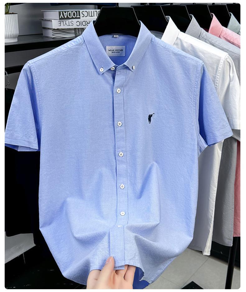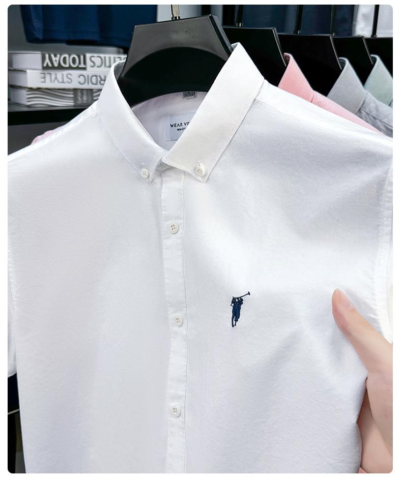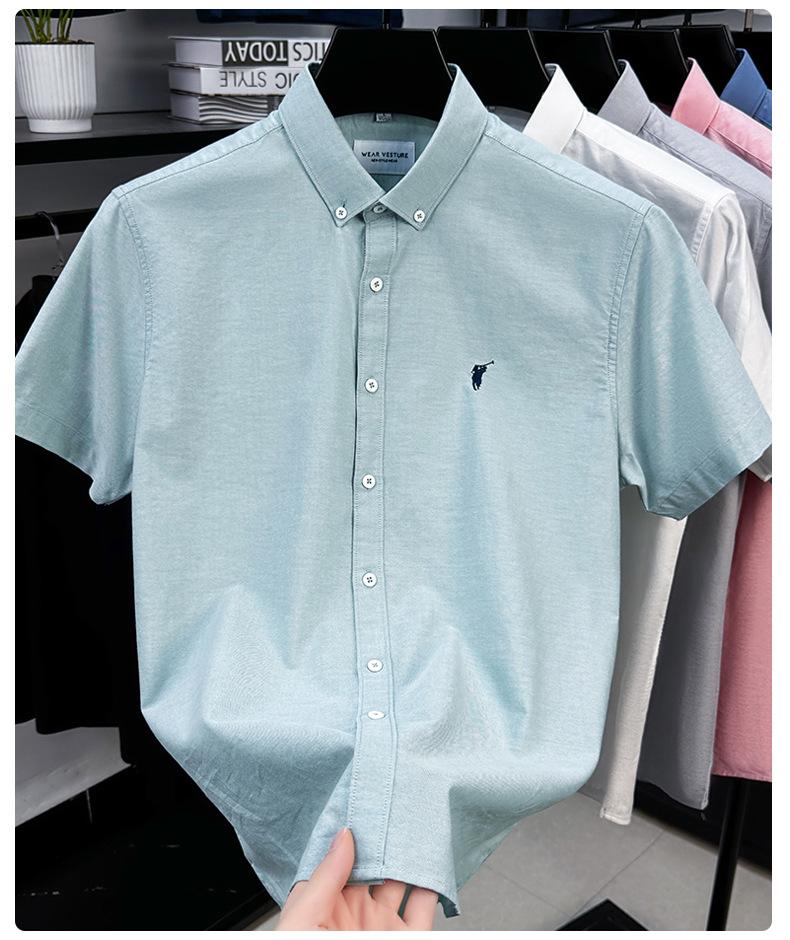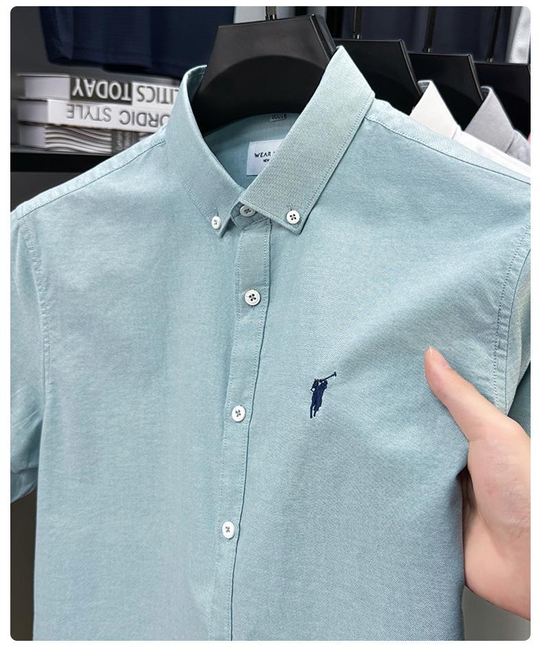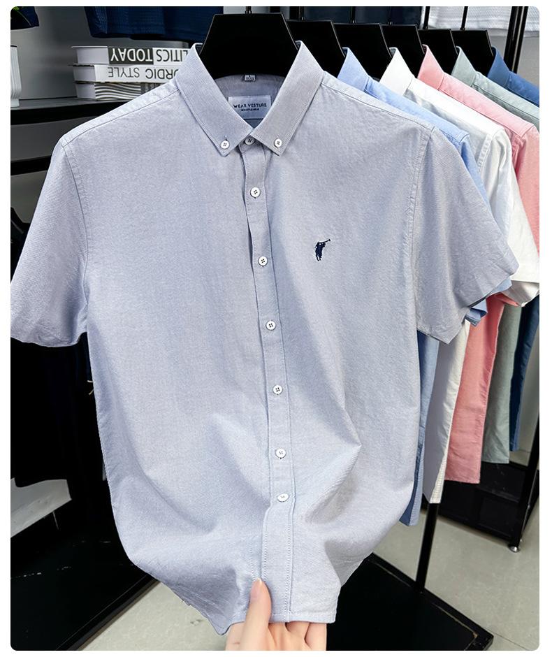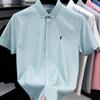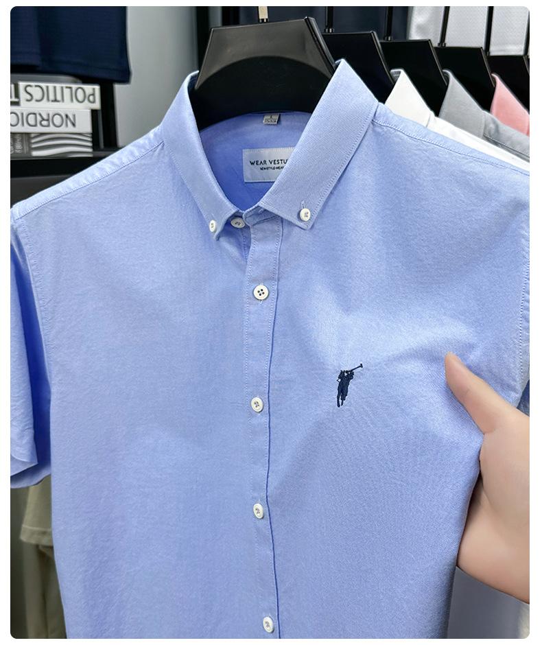 Camisa de manga corta con bordado 100% algodón transfronterizo para hombre, novedad de verano 2025, camisa informal de negocios para hombre, combinable con todo.