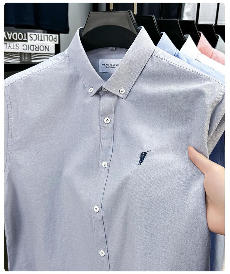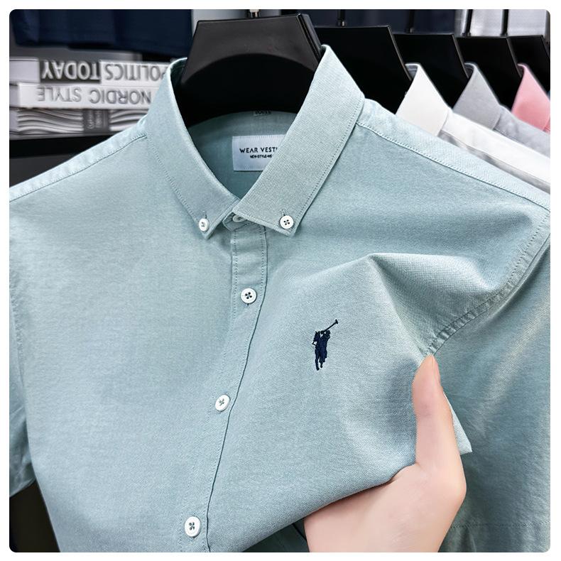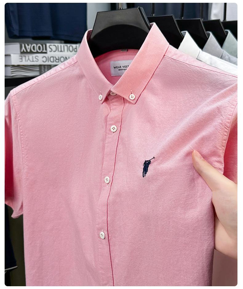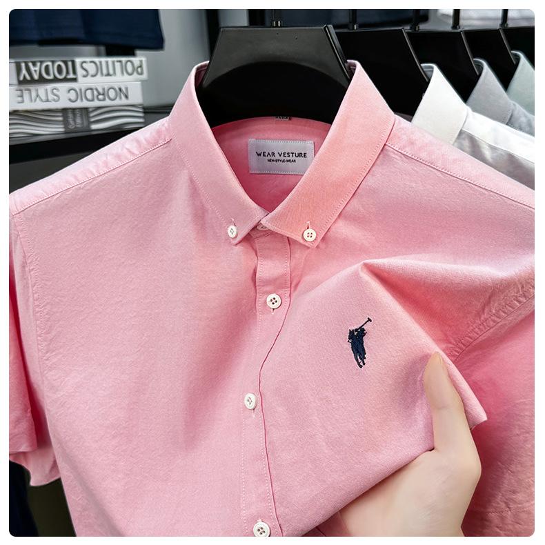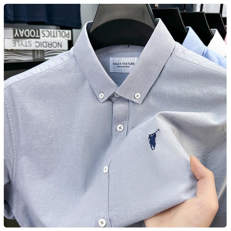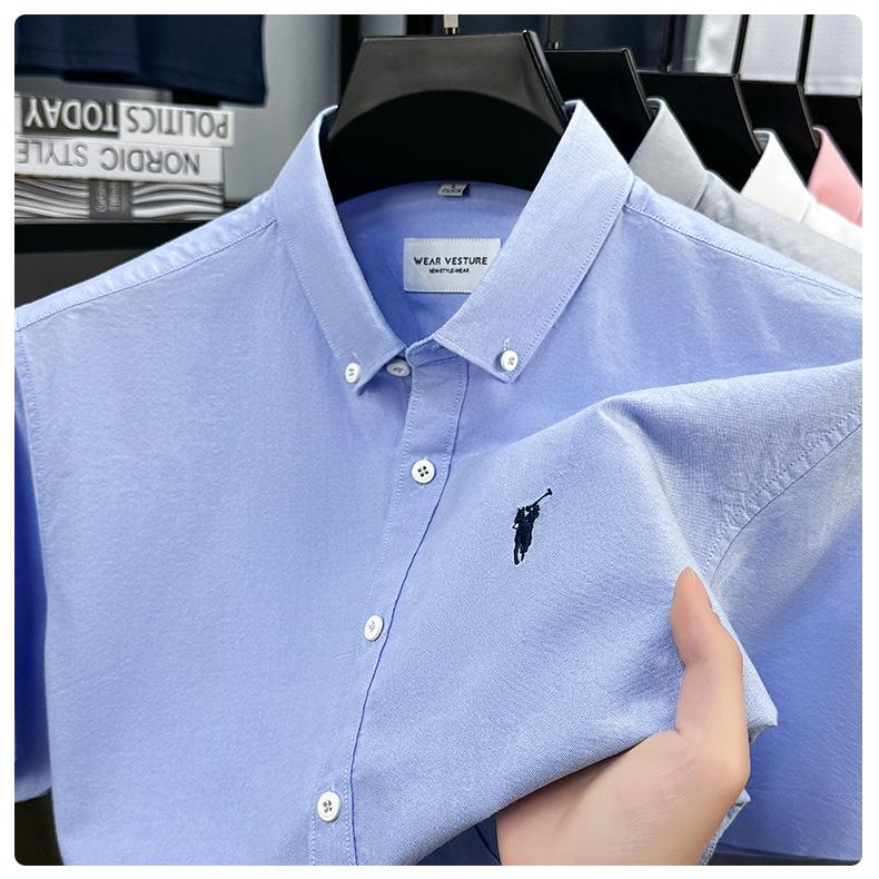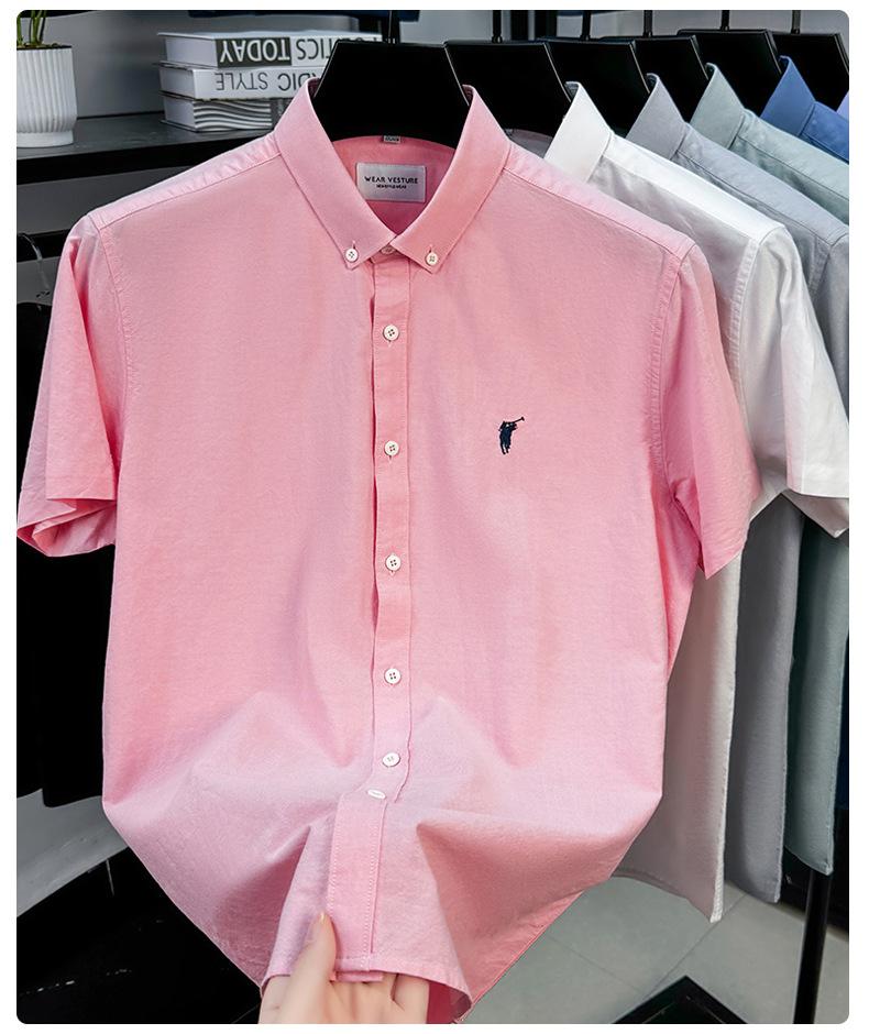 Camisa de manga corta con bordado 100% algodón transfronterizo para hombre, novedad de verano 2025, camisa informal de negocios para hombre, combinable con todo.