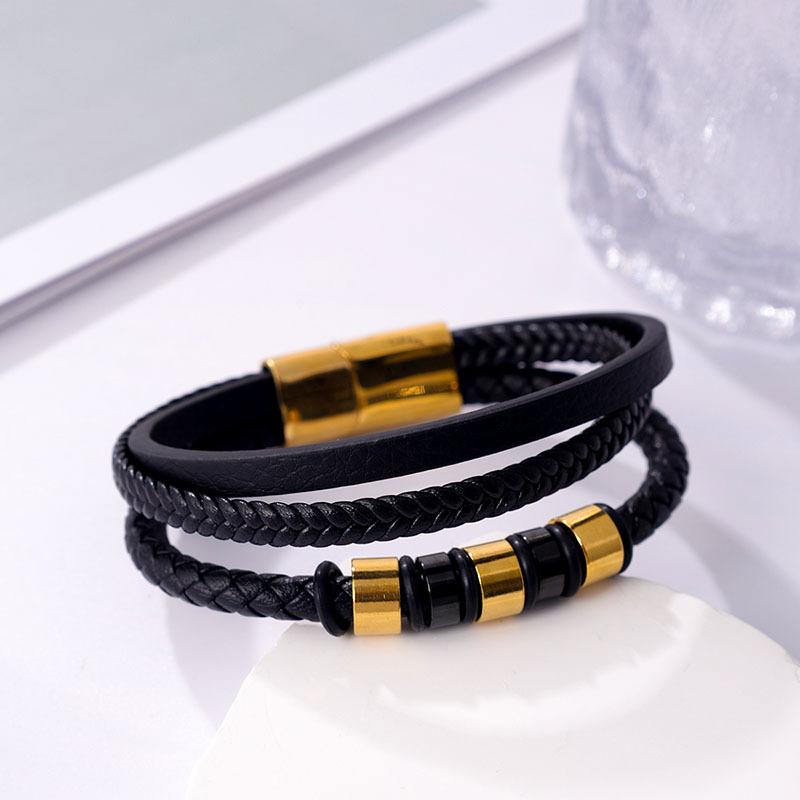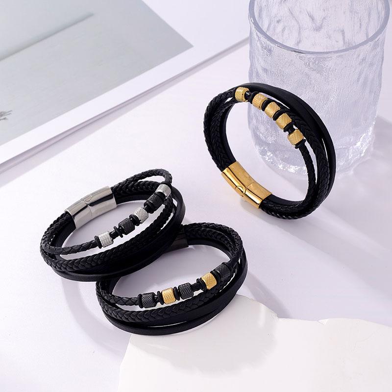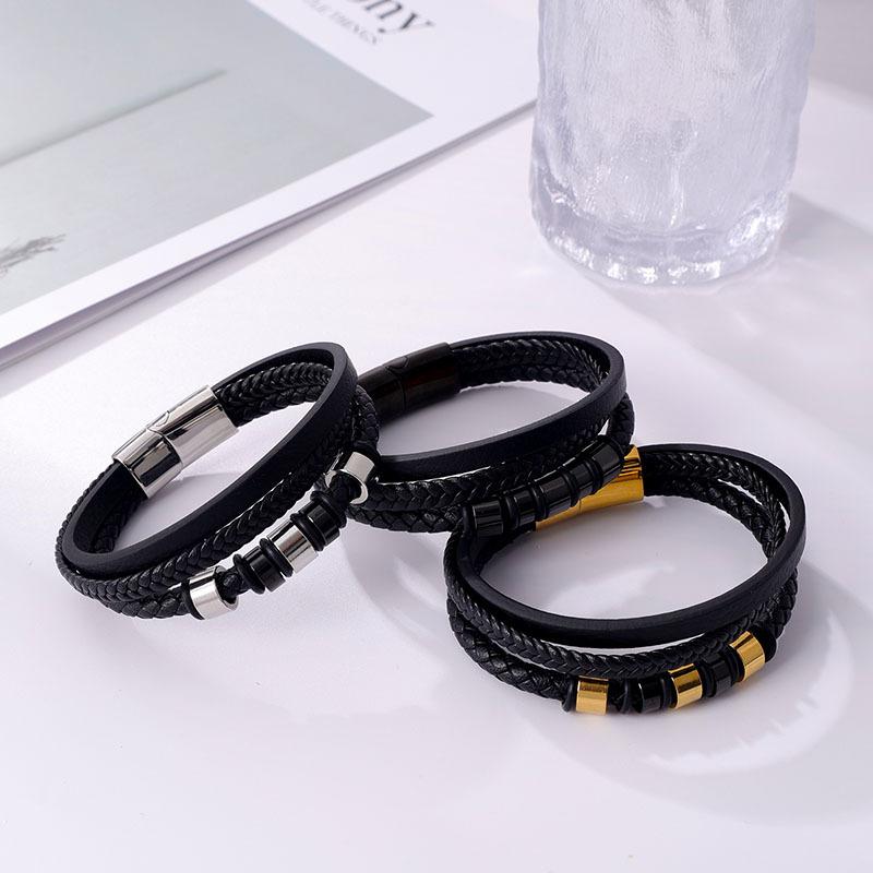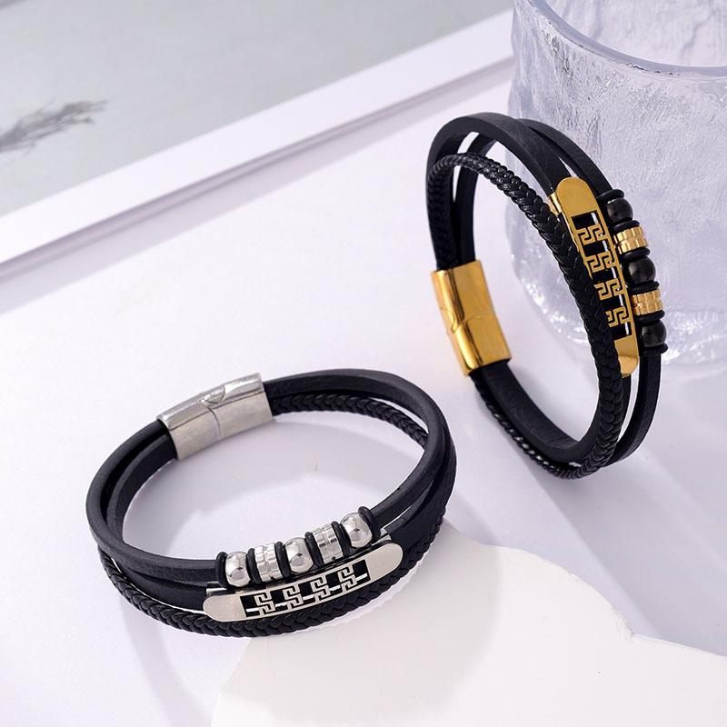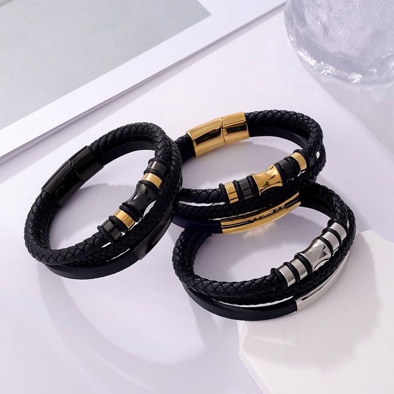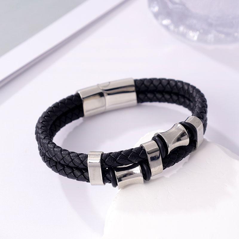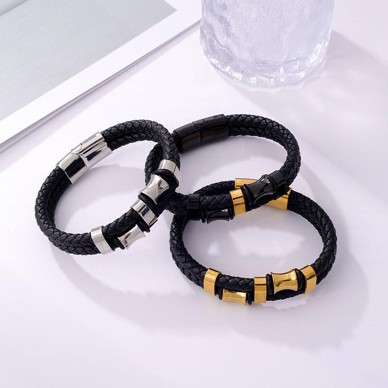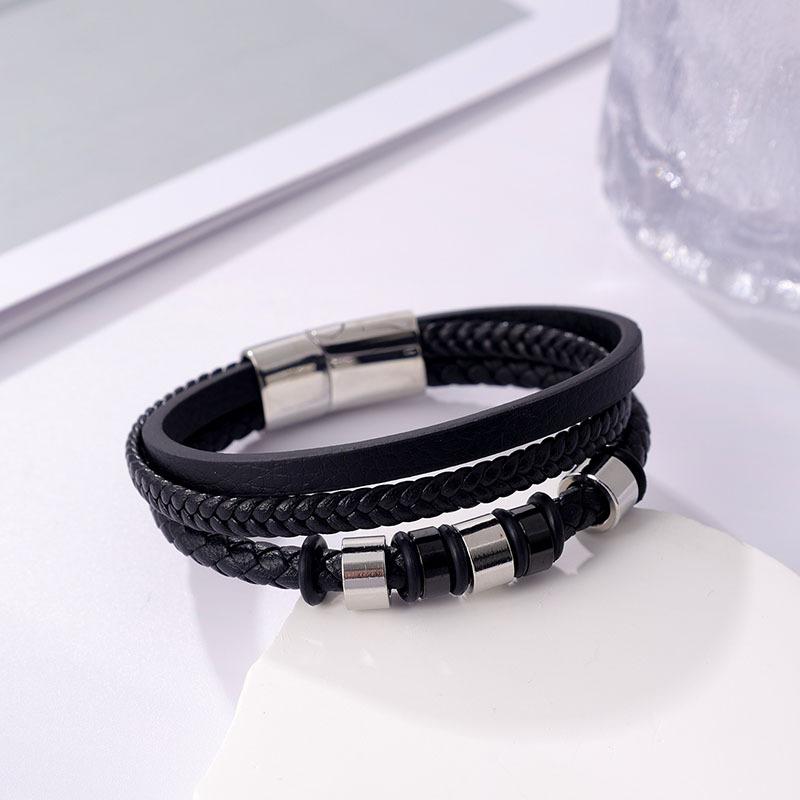 Pulsera de cuero de acero inoxidable nueva transfronteriza de Amazon tejida retro personalidad hebilla magnética joyería al por mayor