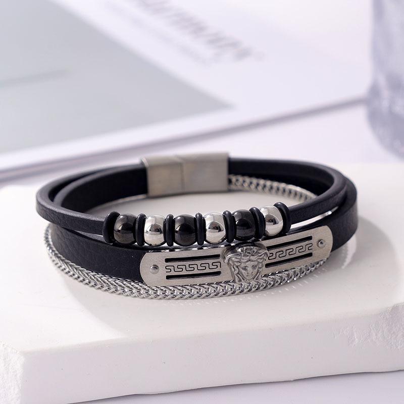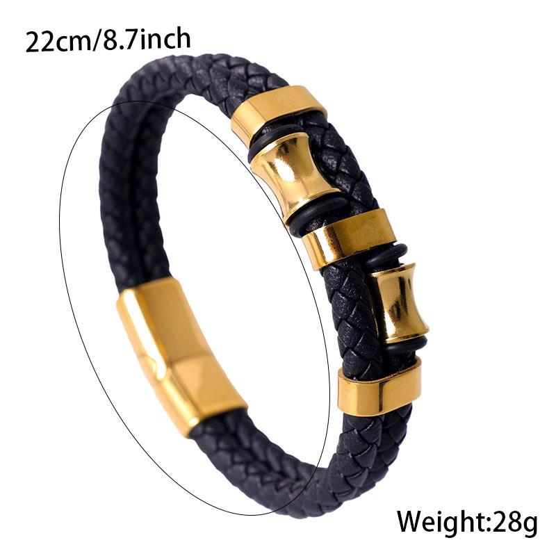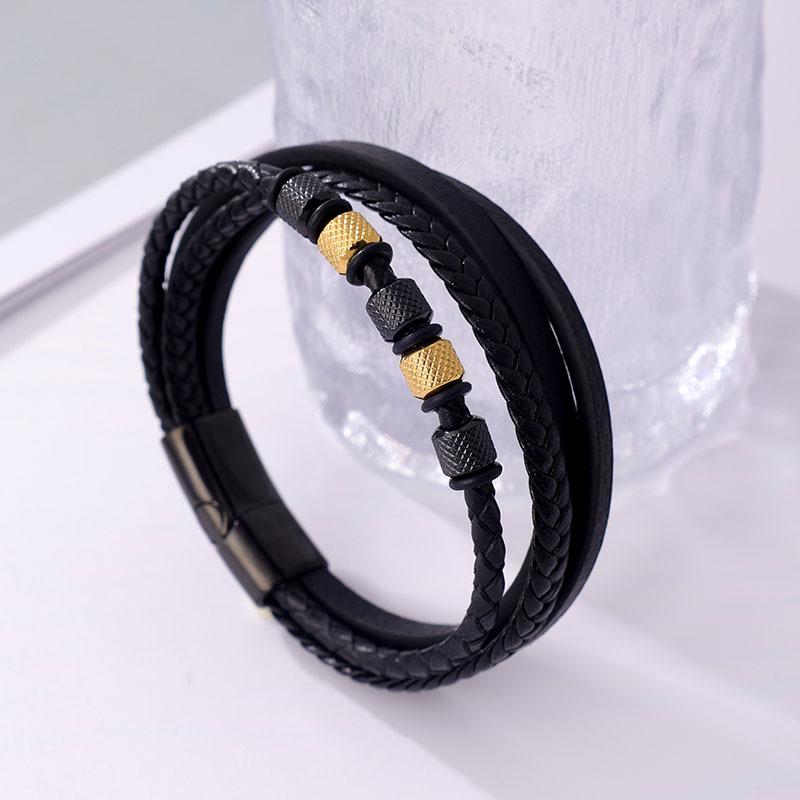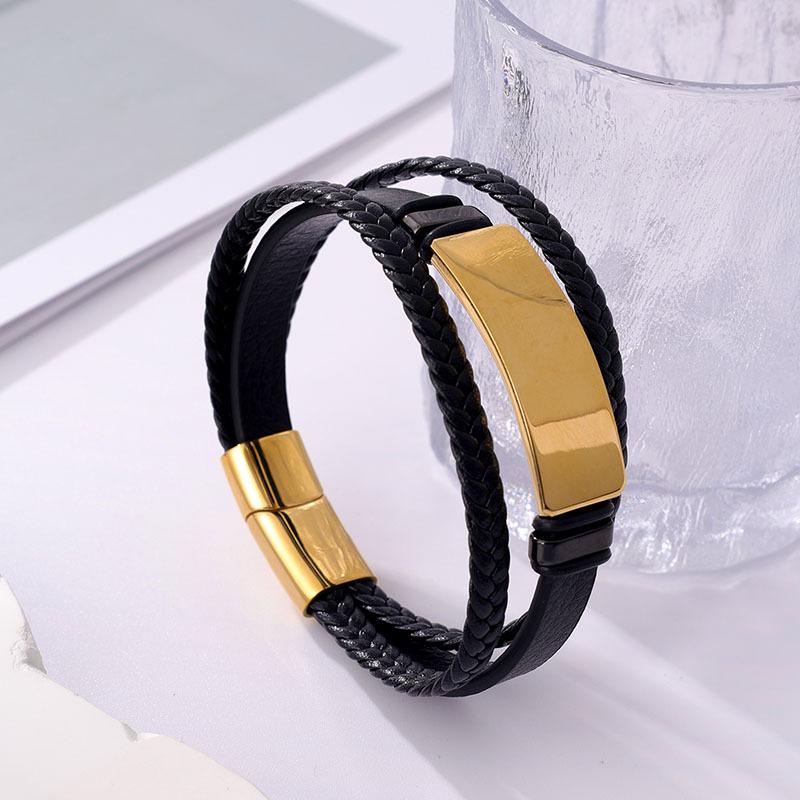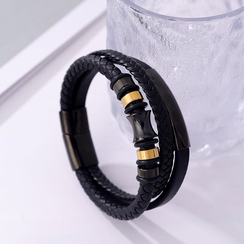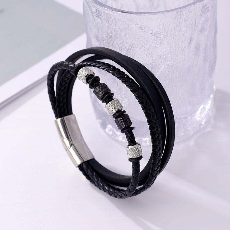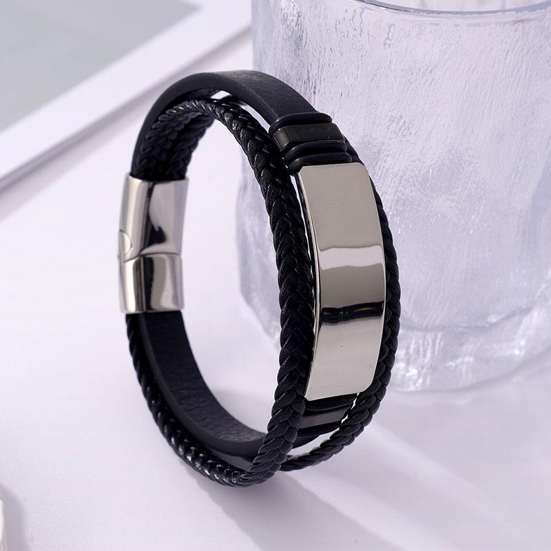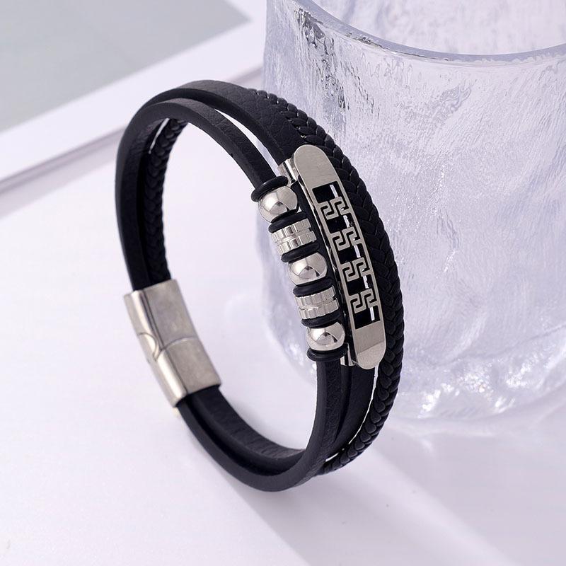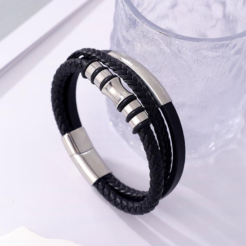 Pulsera de cuero de acero inoxidable nueva transfronteriza de Amazon tejida retro personalidad hebilla magnética joyería al por mayor