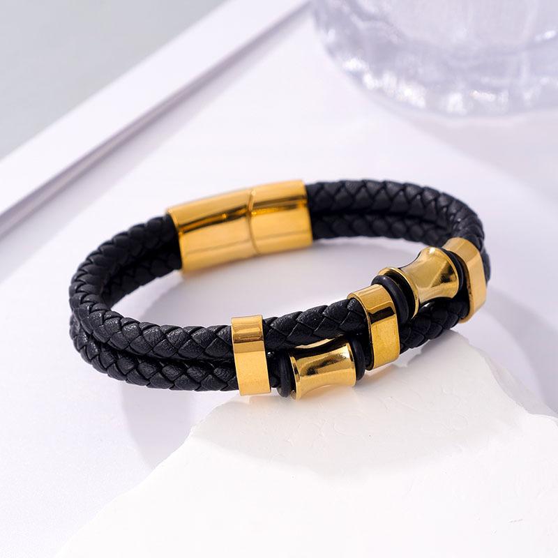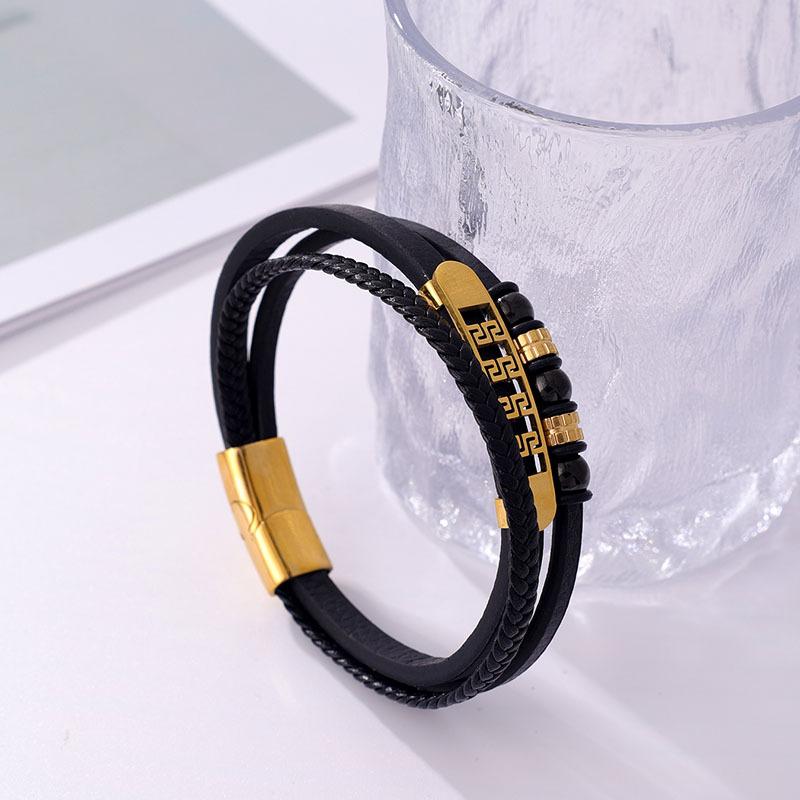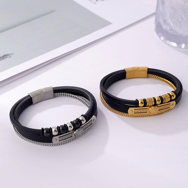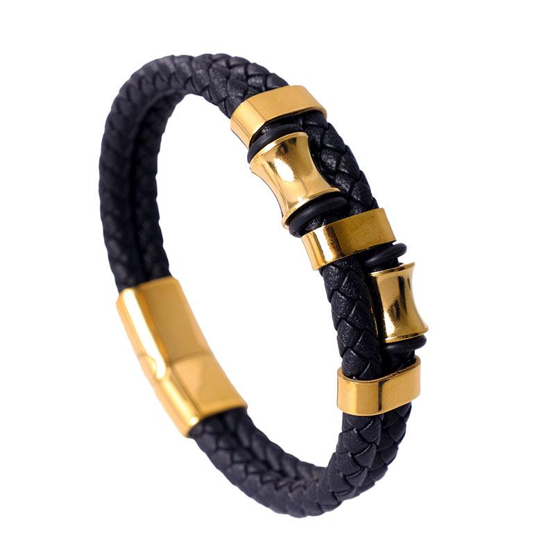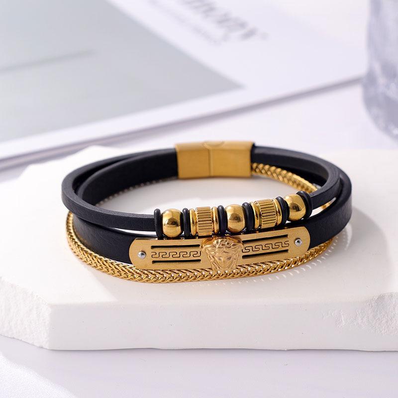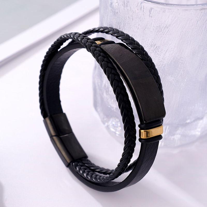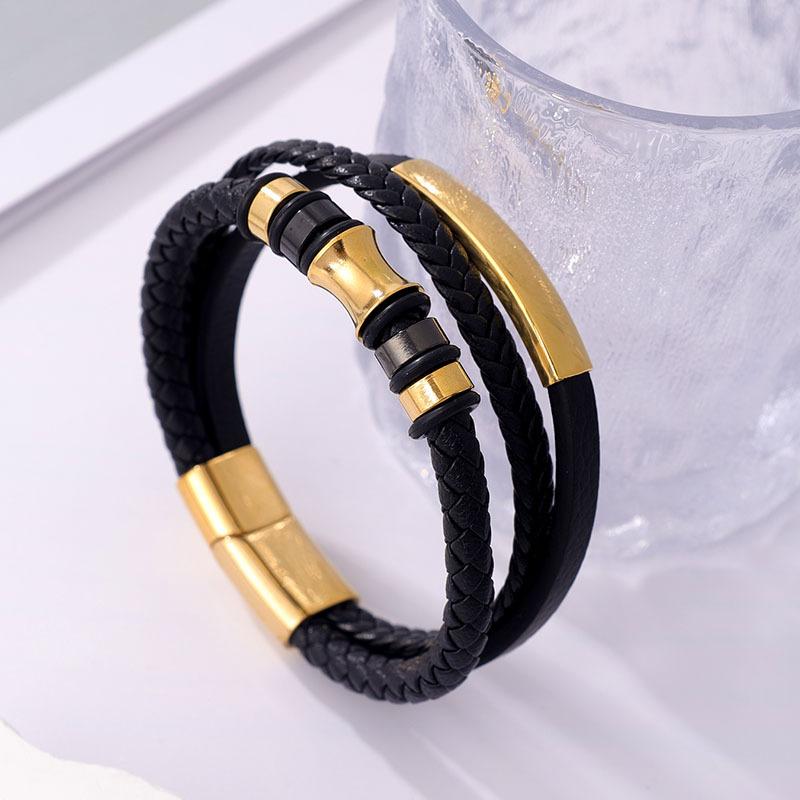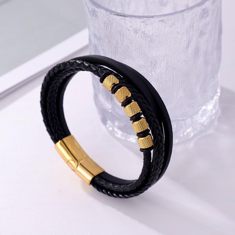 Pulsera de cuero de acero inoxidable nueva transfronteriza de Amazon tejida retro personalidad hebilla magnética joyería al por mayor