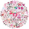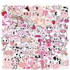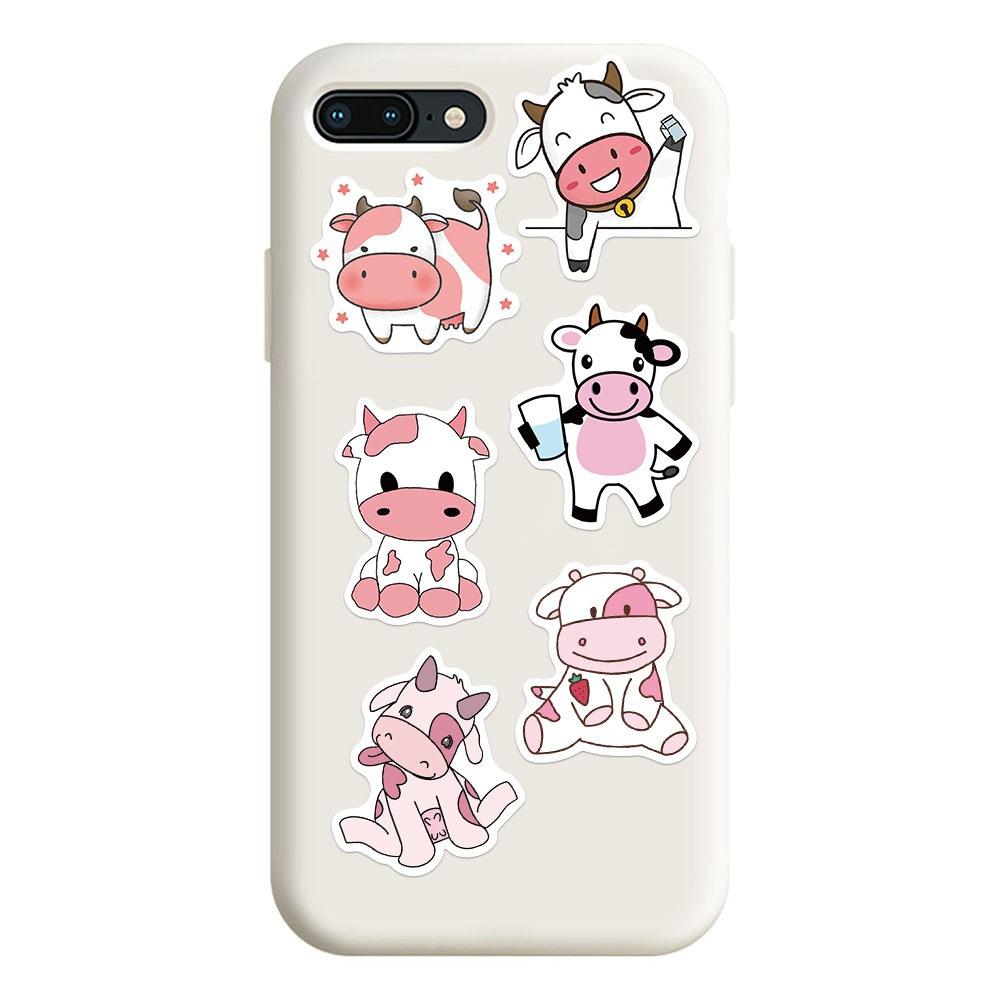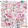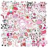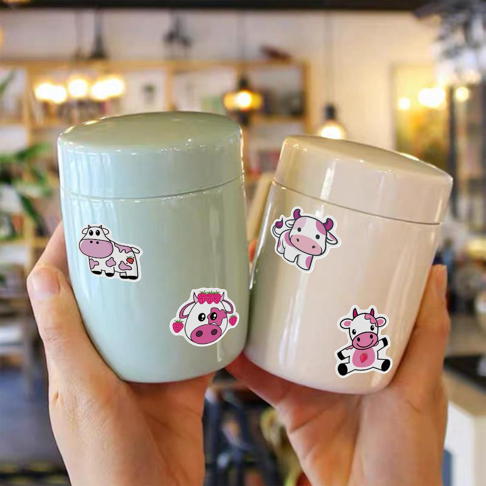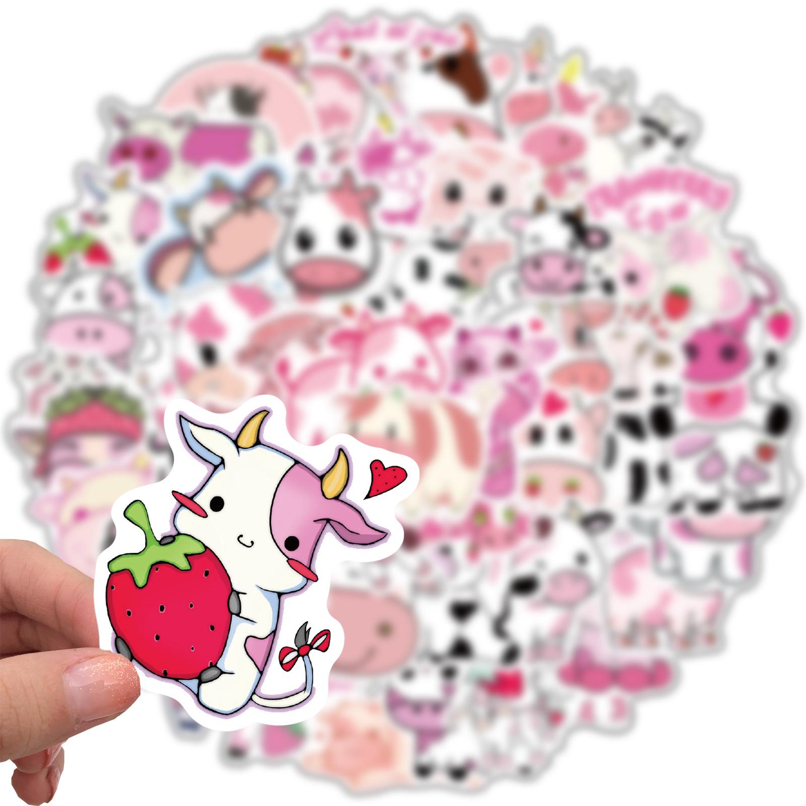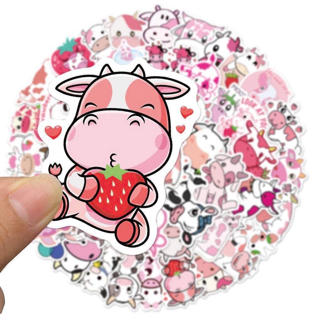 50 pegatinas de grafiti de vaca de dibujos animados de color rosa intenso con borde cruzado, para funda de teléfono, cuaderno, decorativas, impermeables y extraíbles.