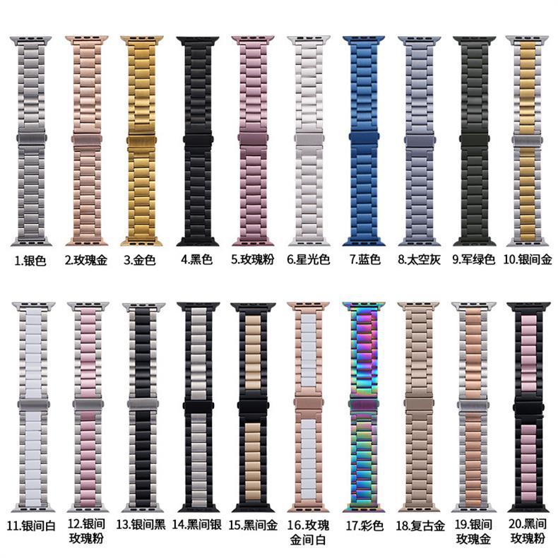 Adecuado para Apple Applewatch Hebilla Plegable de Tres Cuentas Hoja de Acero con Correa para Reloj Inteligente iWatch Huawei